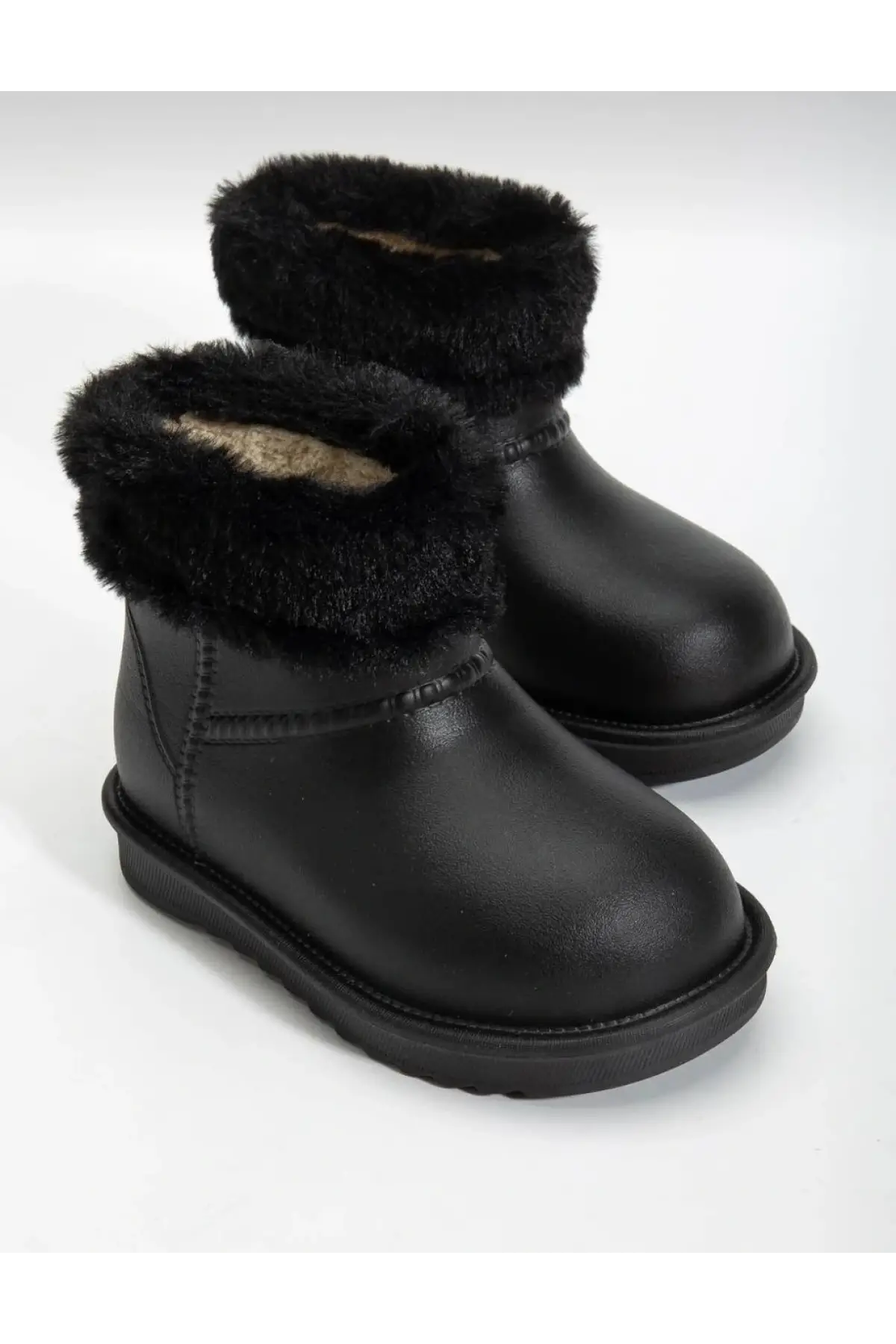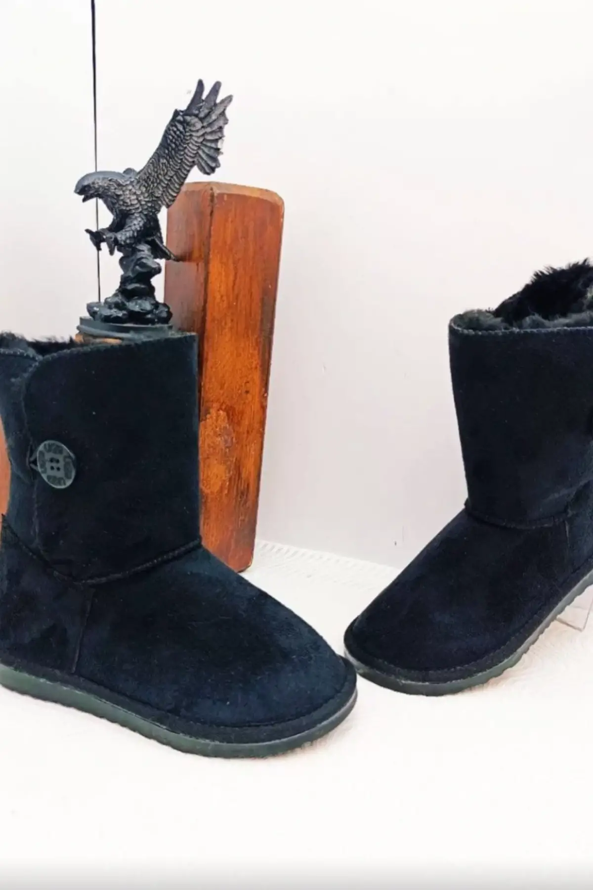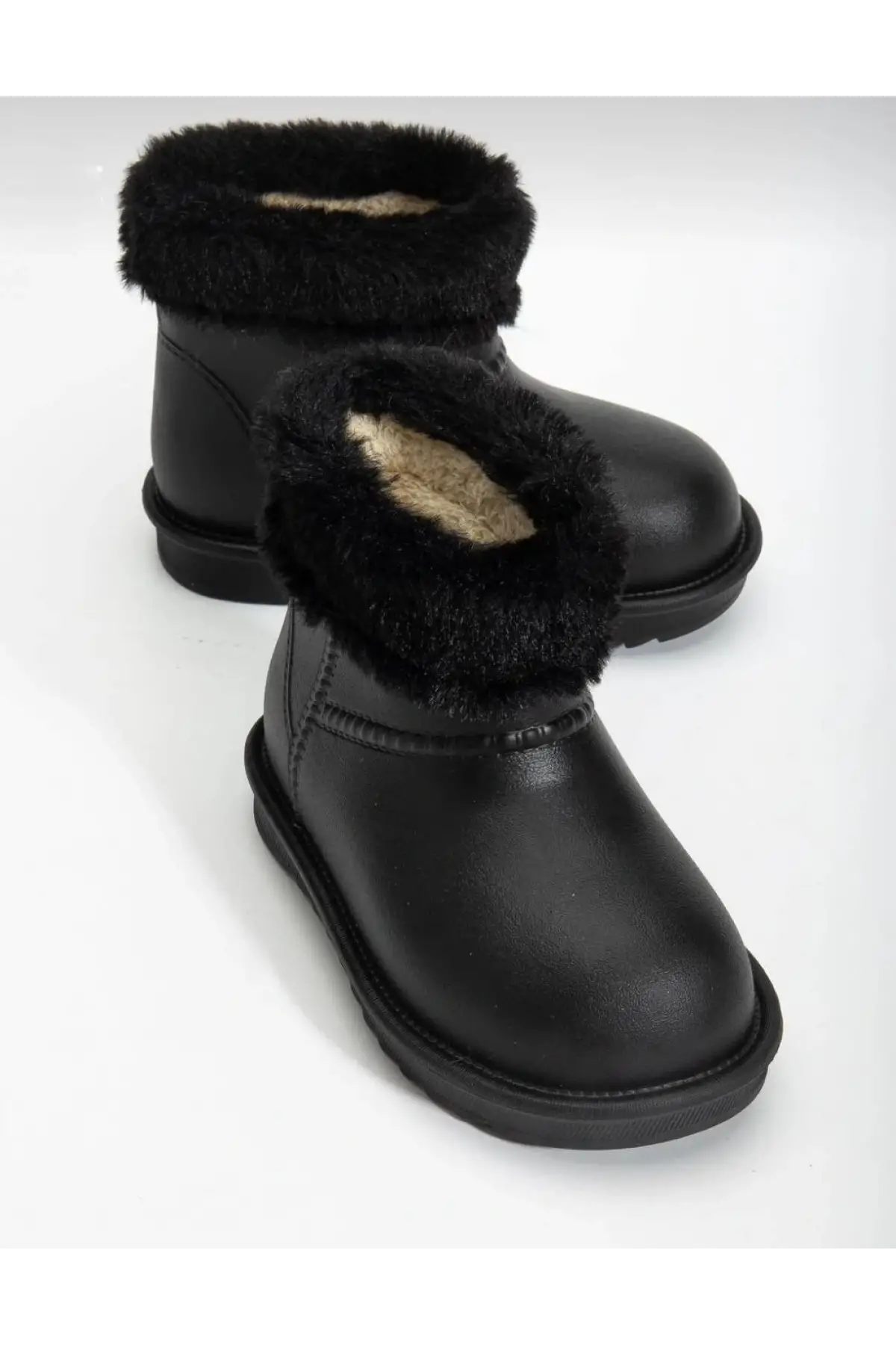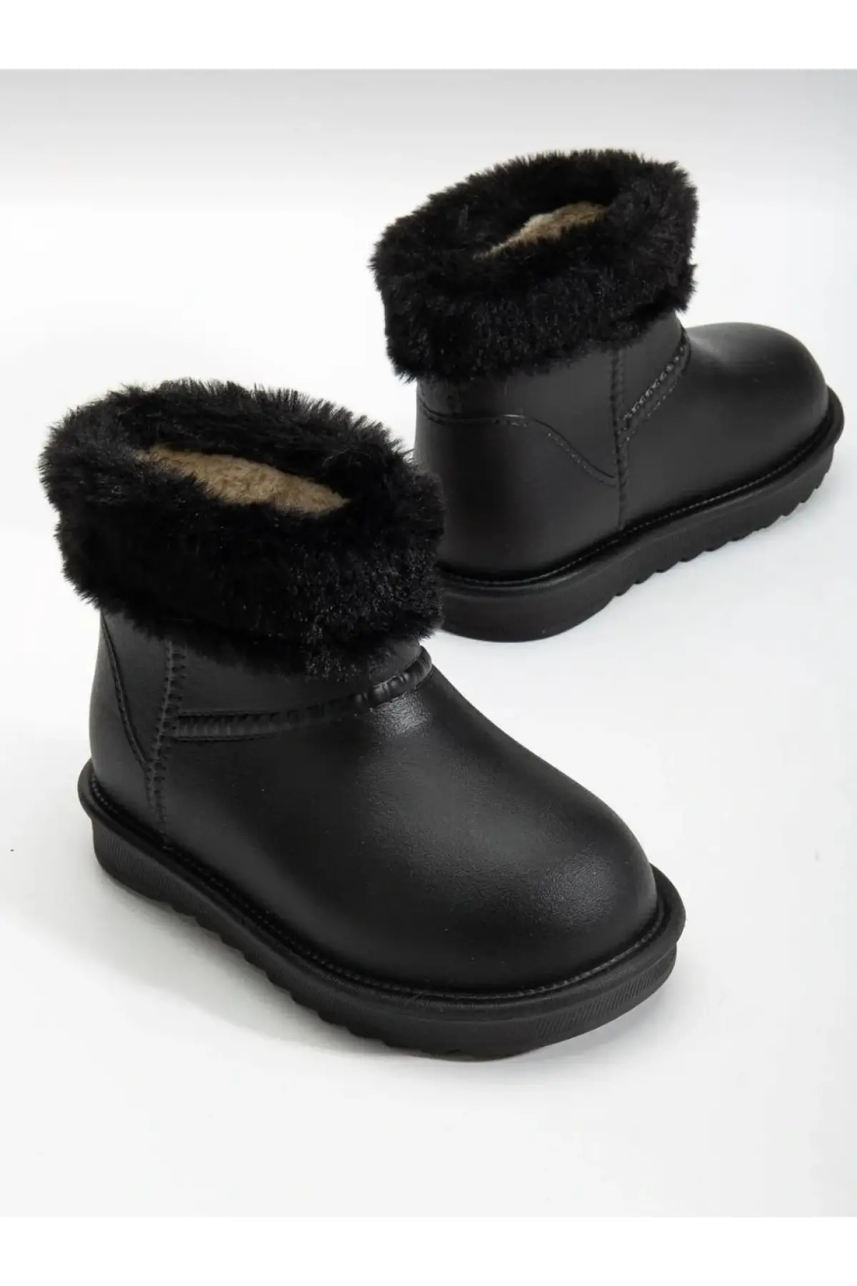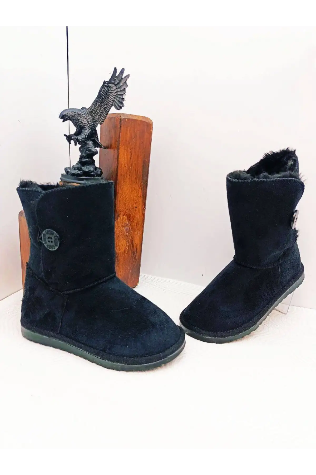 Kız Çocuk Düğme Detaylı Siyah İçi Tüylü Bot