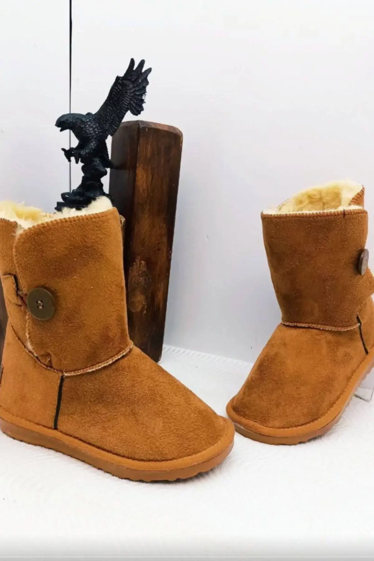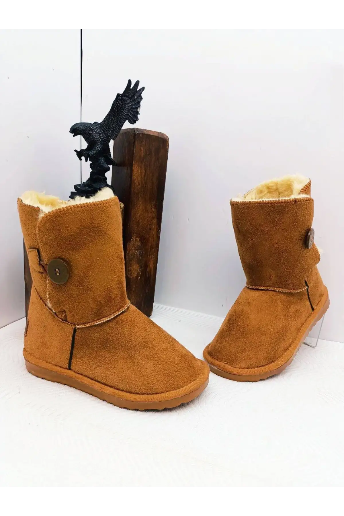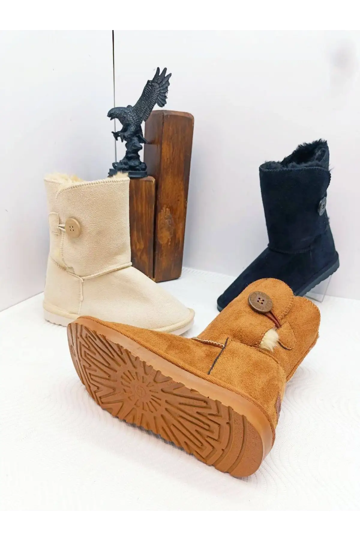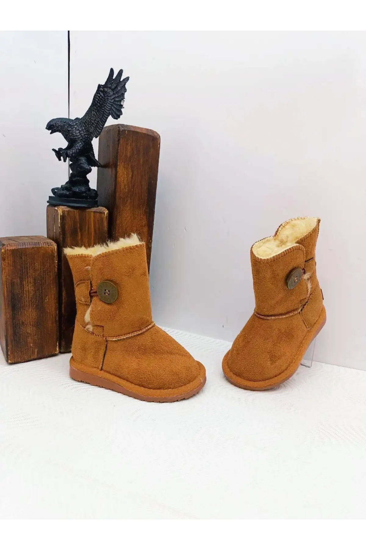 Kız Çocuk Düğme Detaylı Taba İçi Tüylü Bot