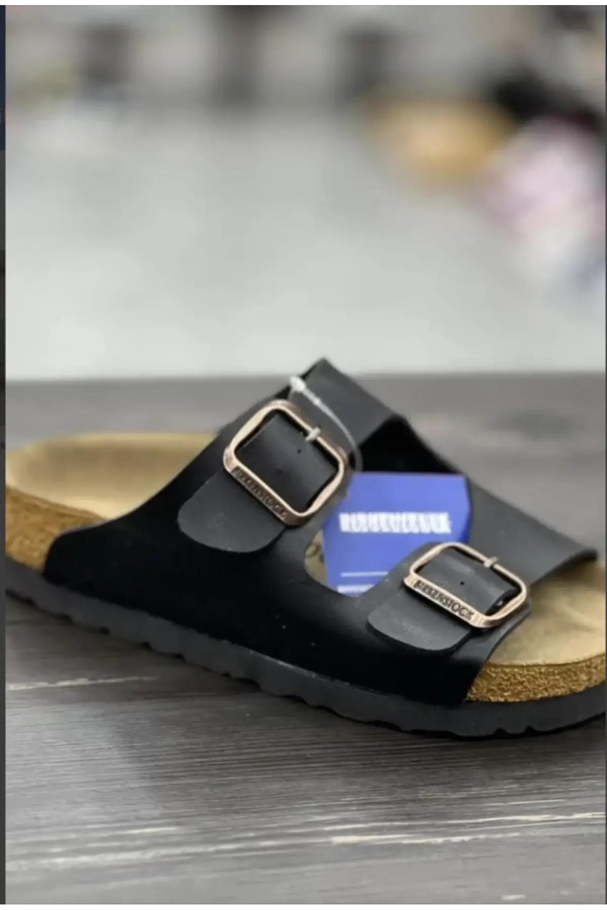 Çocuk Unisex Mantar Taban Deri Siyah Terlik