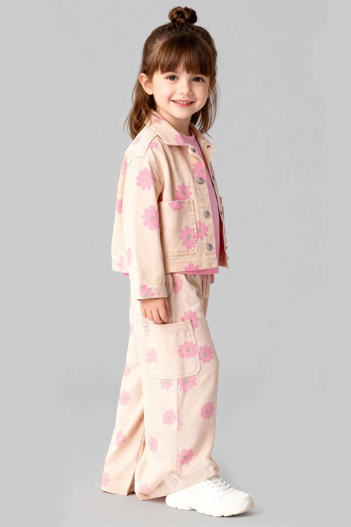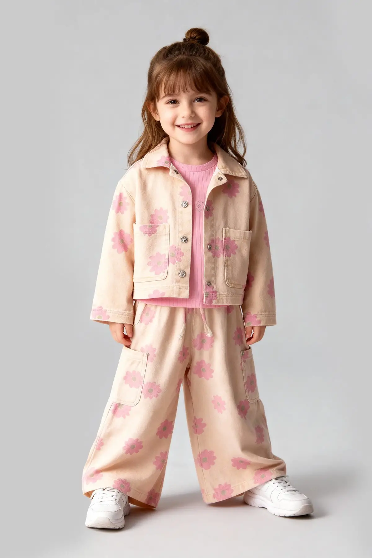 Çiçek Desenli Kız Çocuk Üçlü Takım