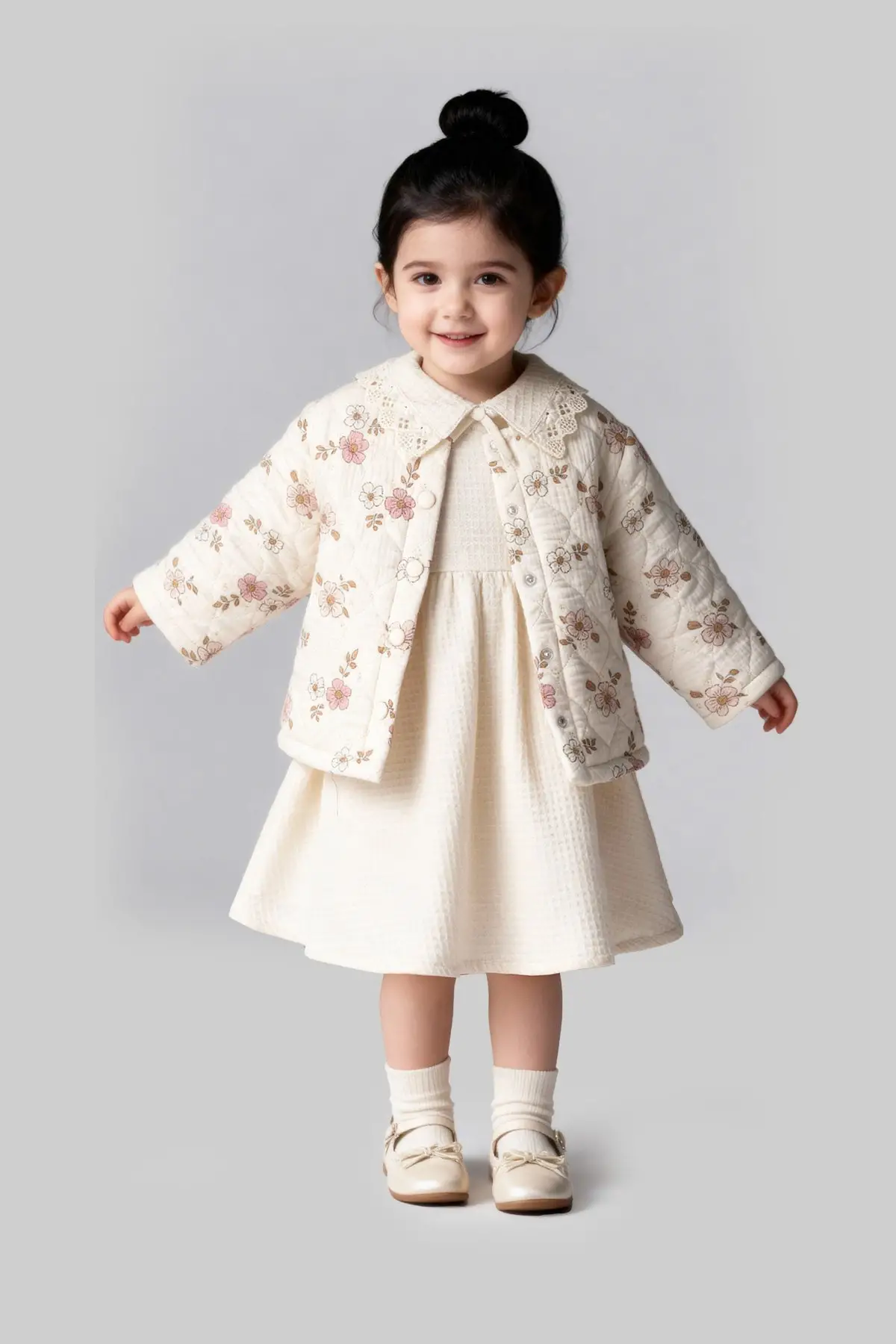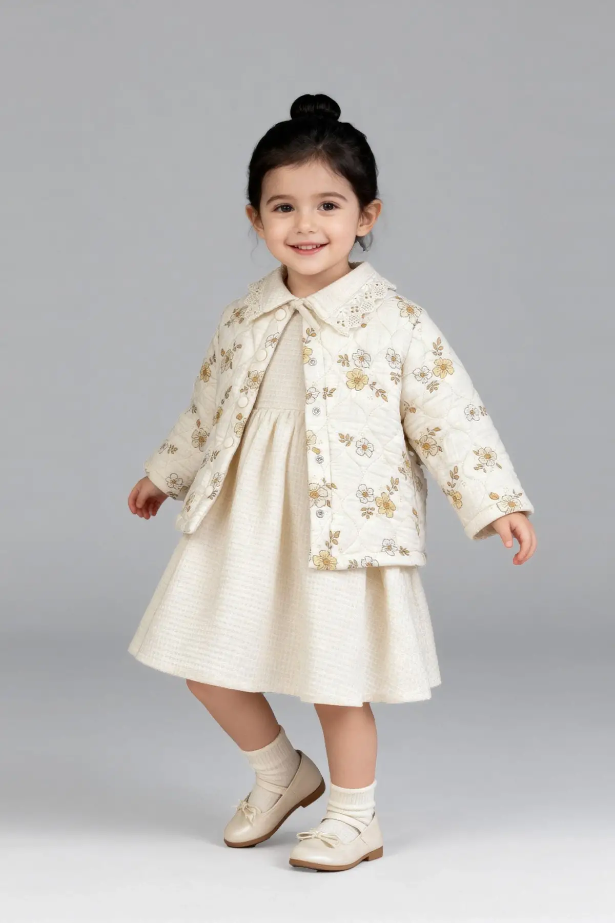 Çiçek Detaylı Kız Bebek Hırkalı Elbise