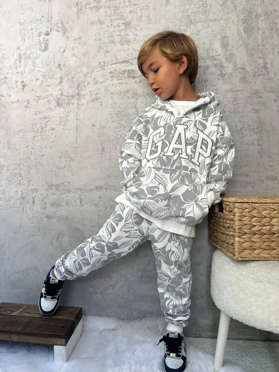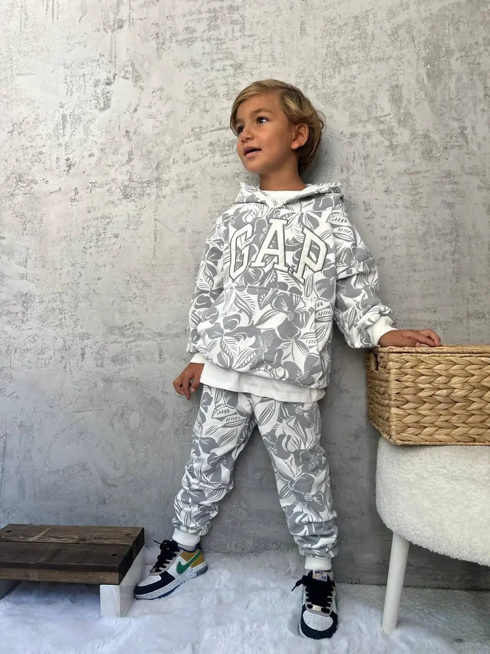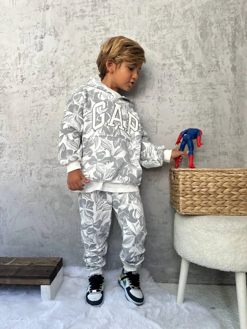 Çocuk Unisex Çiçek Desenli Kapüşonlu Alt-Üst Takım