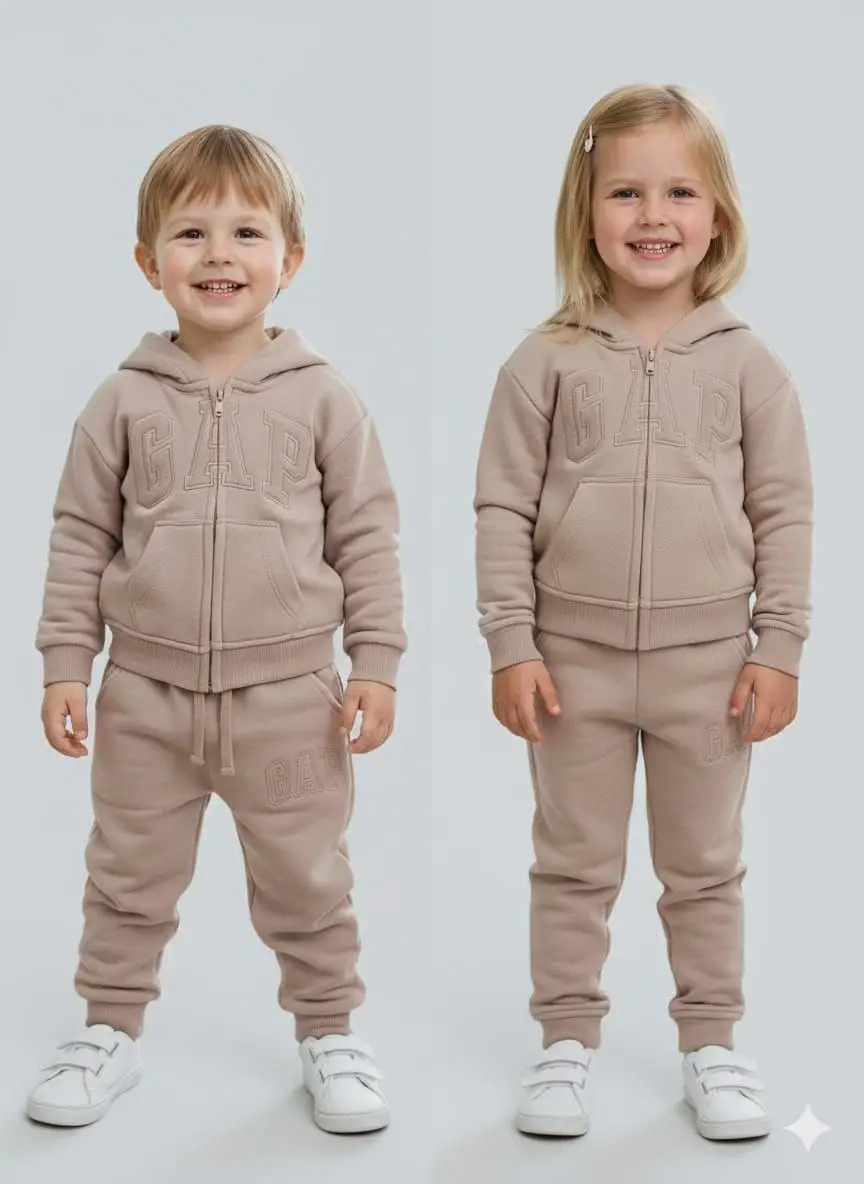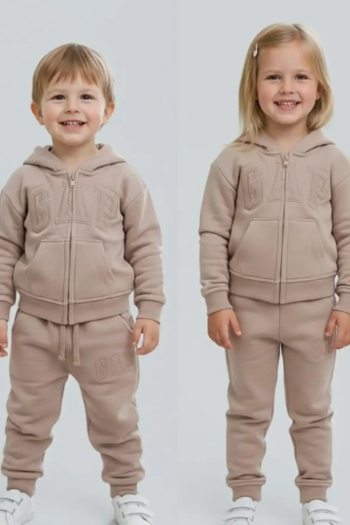 Çocuk Unisex Kapüşonlu Vizon %100 Pamuk Alt-Üst Takım