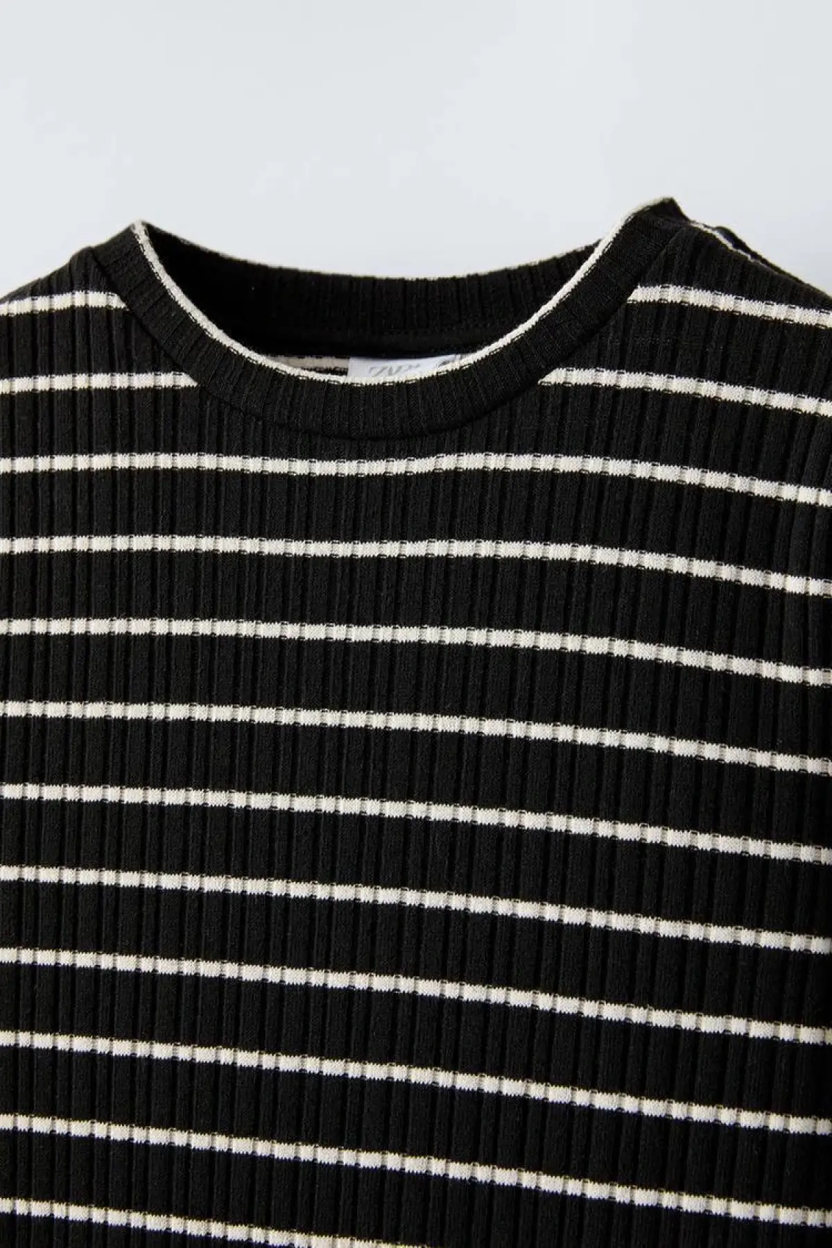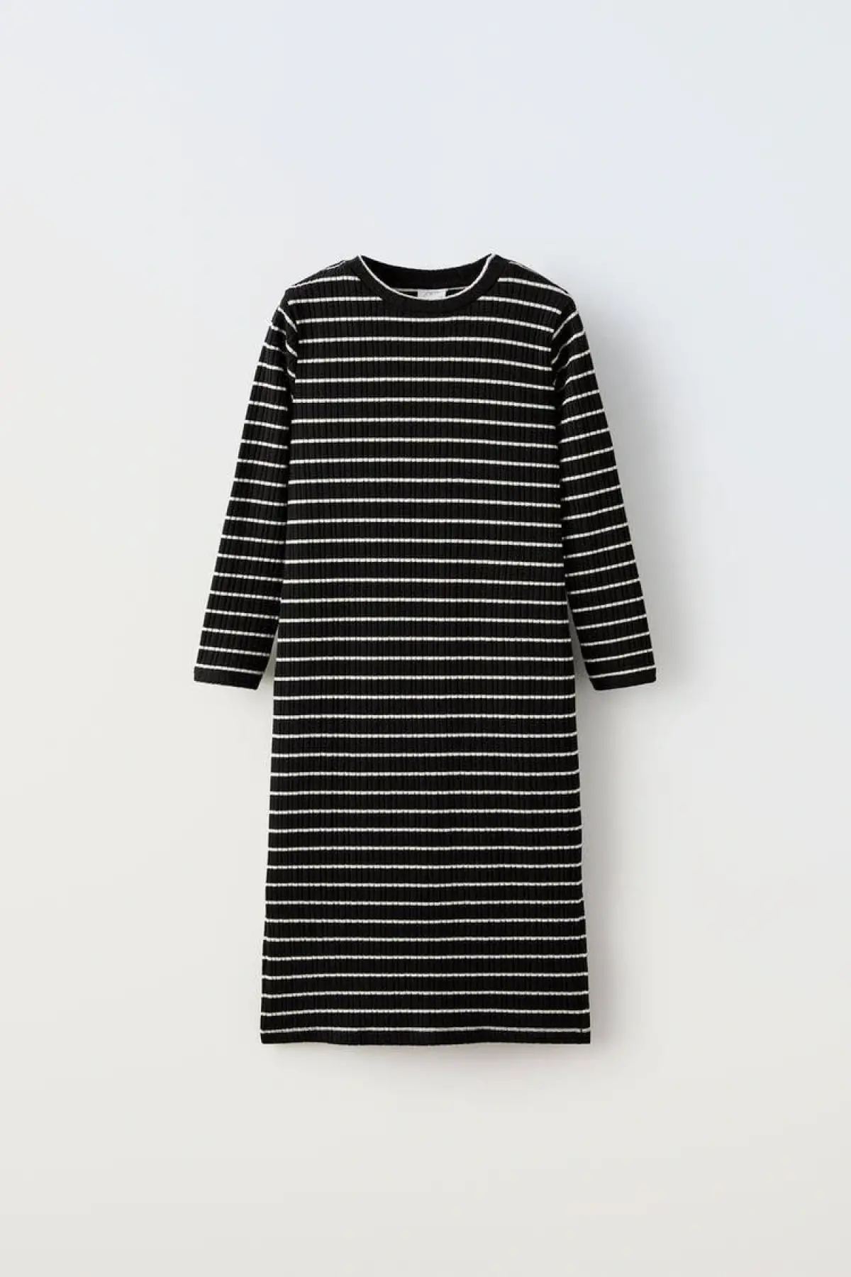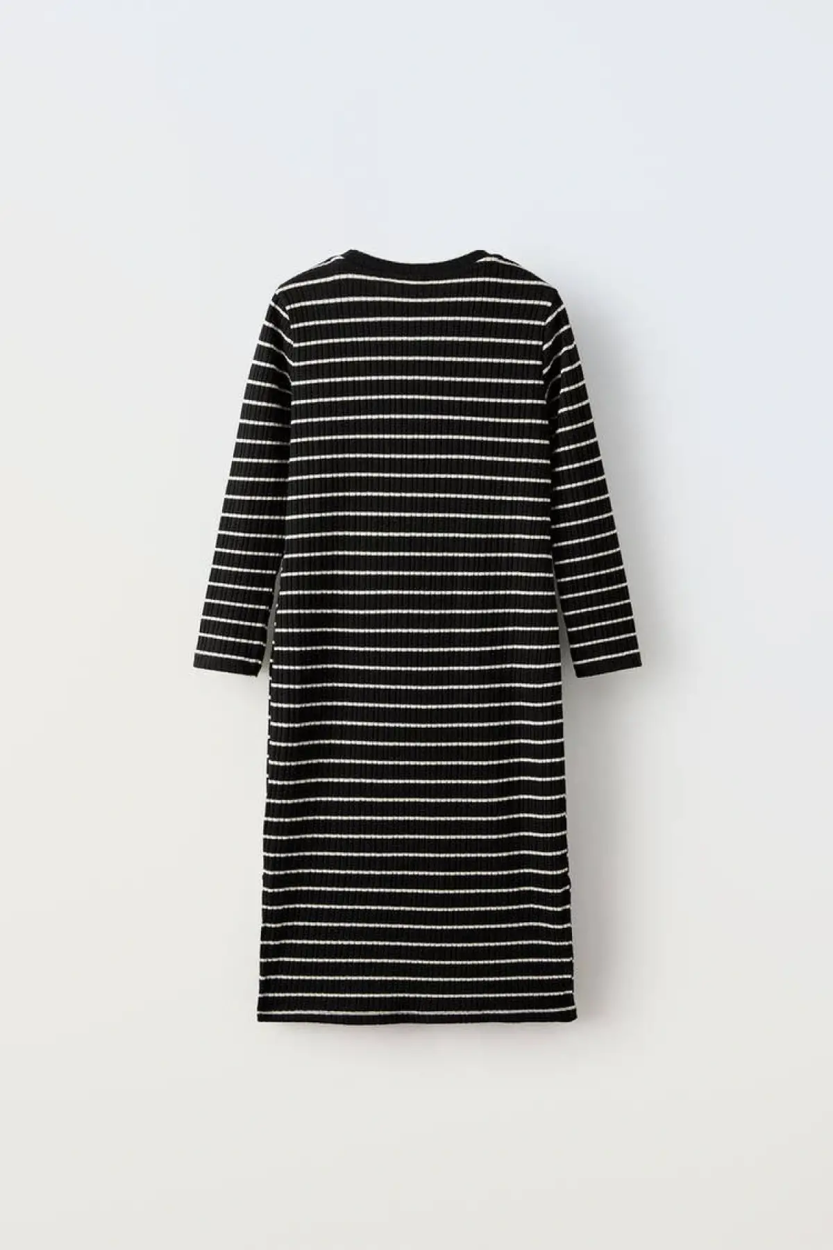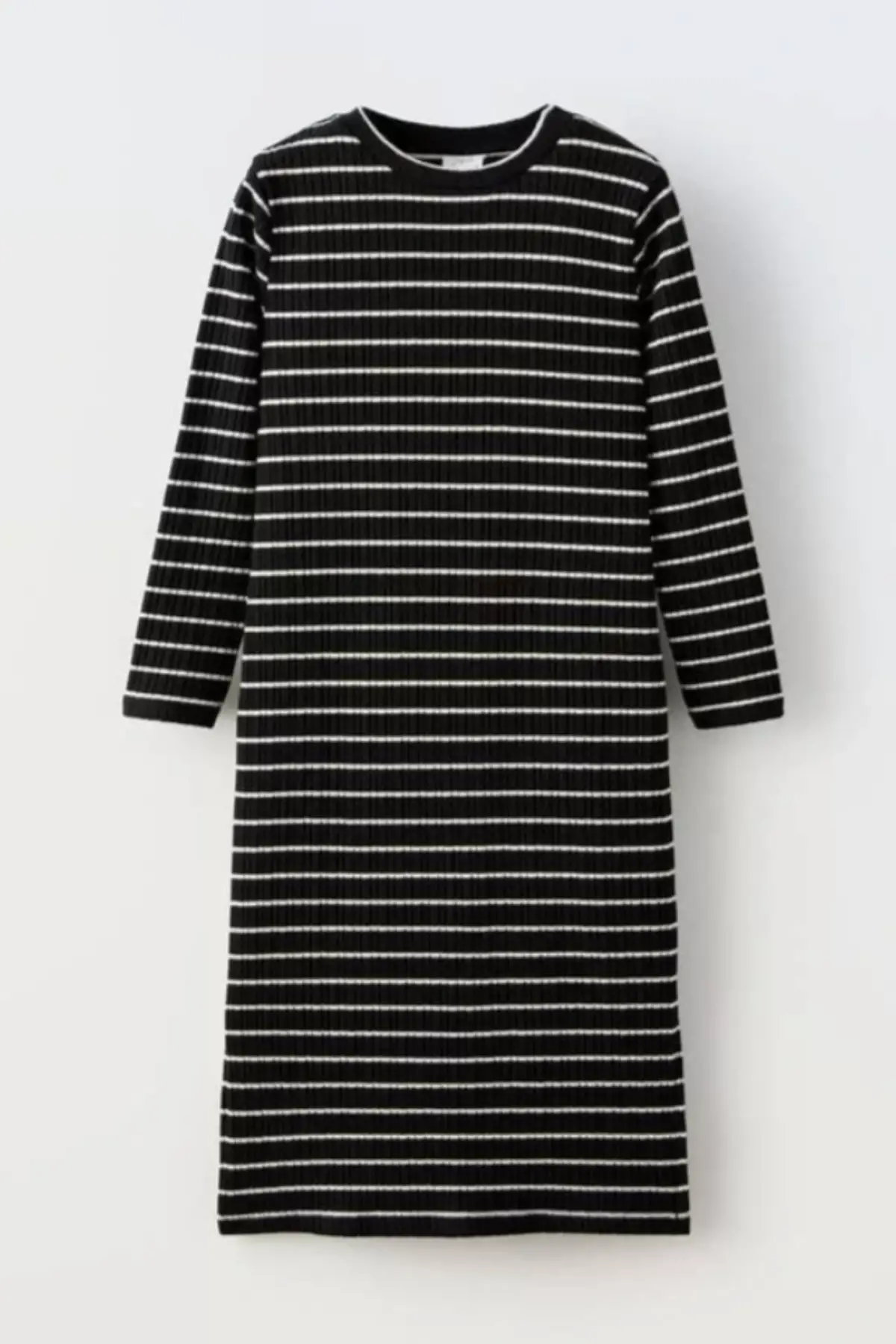 Kız Çocuk Çizgili Siyah Triko Elbise