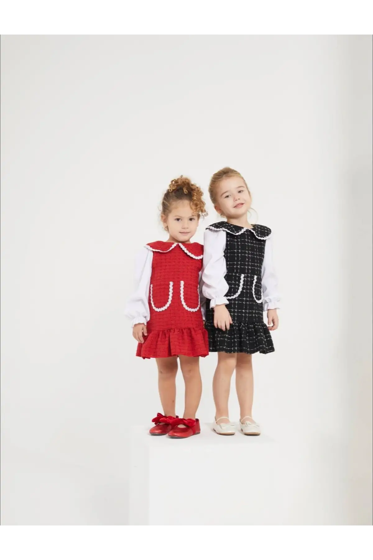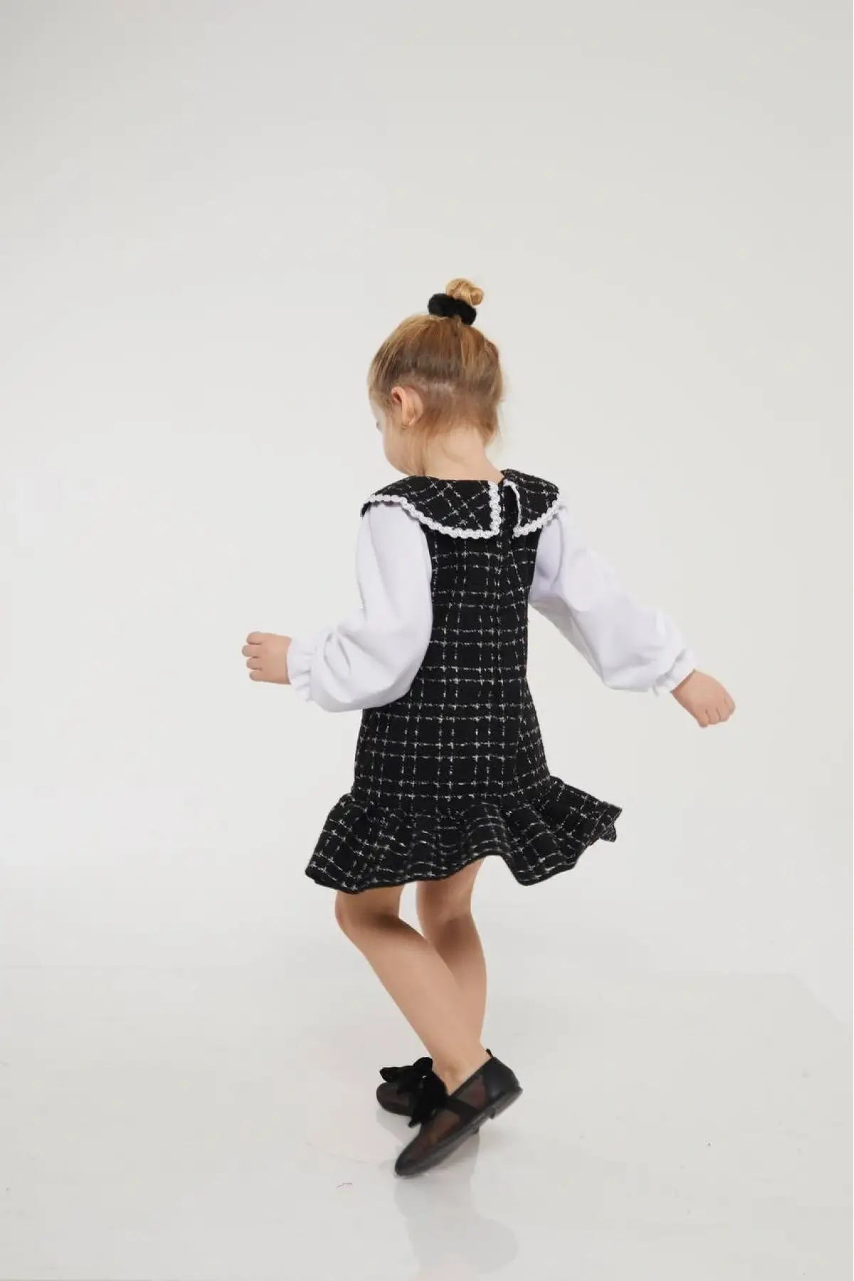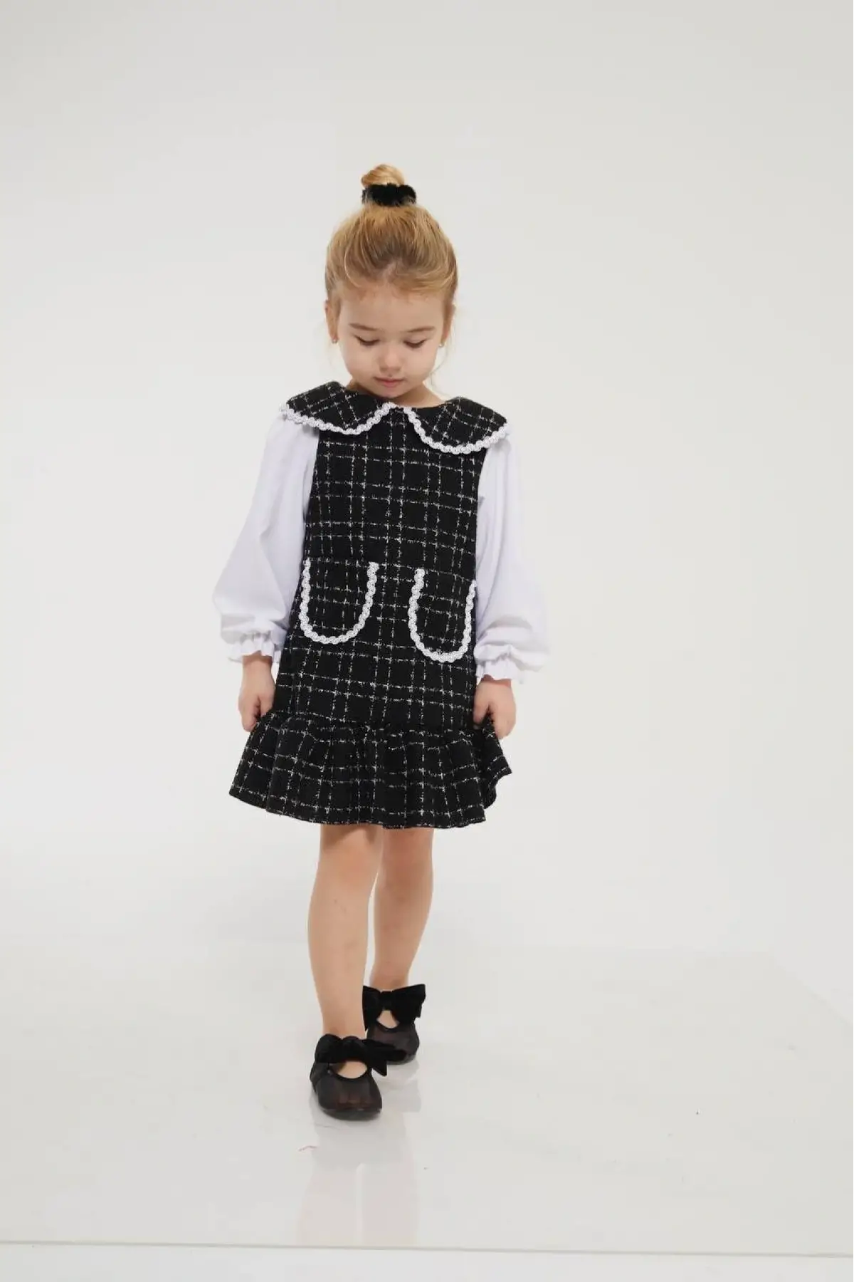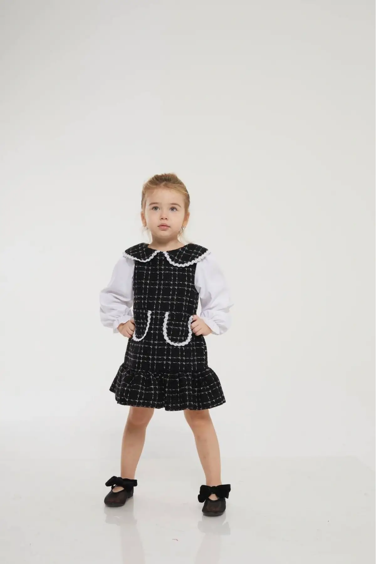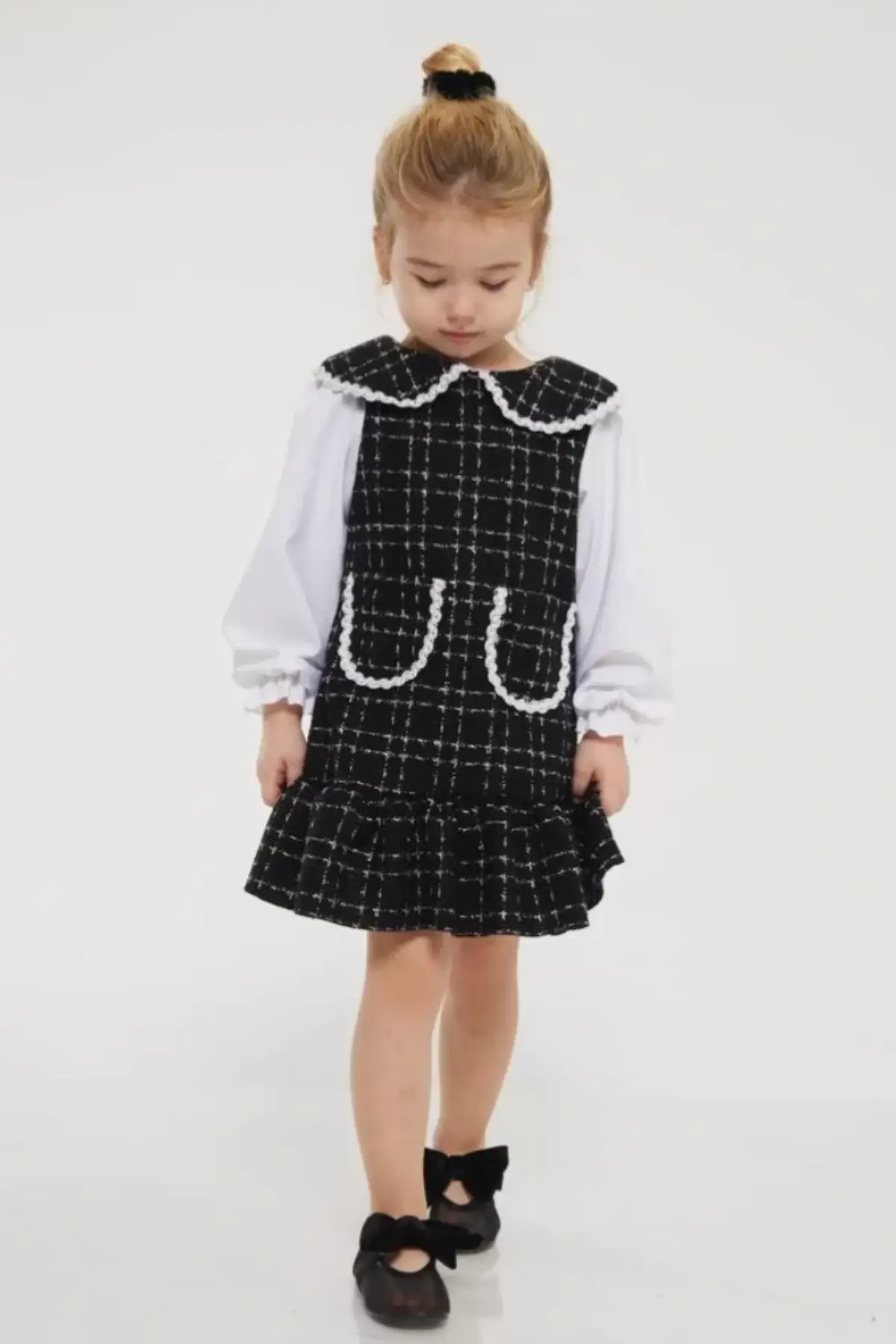 Kız Çocuk Yaka Detaylı Cepli Siyah Elbise