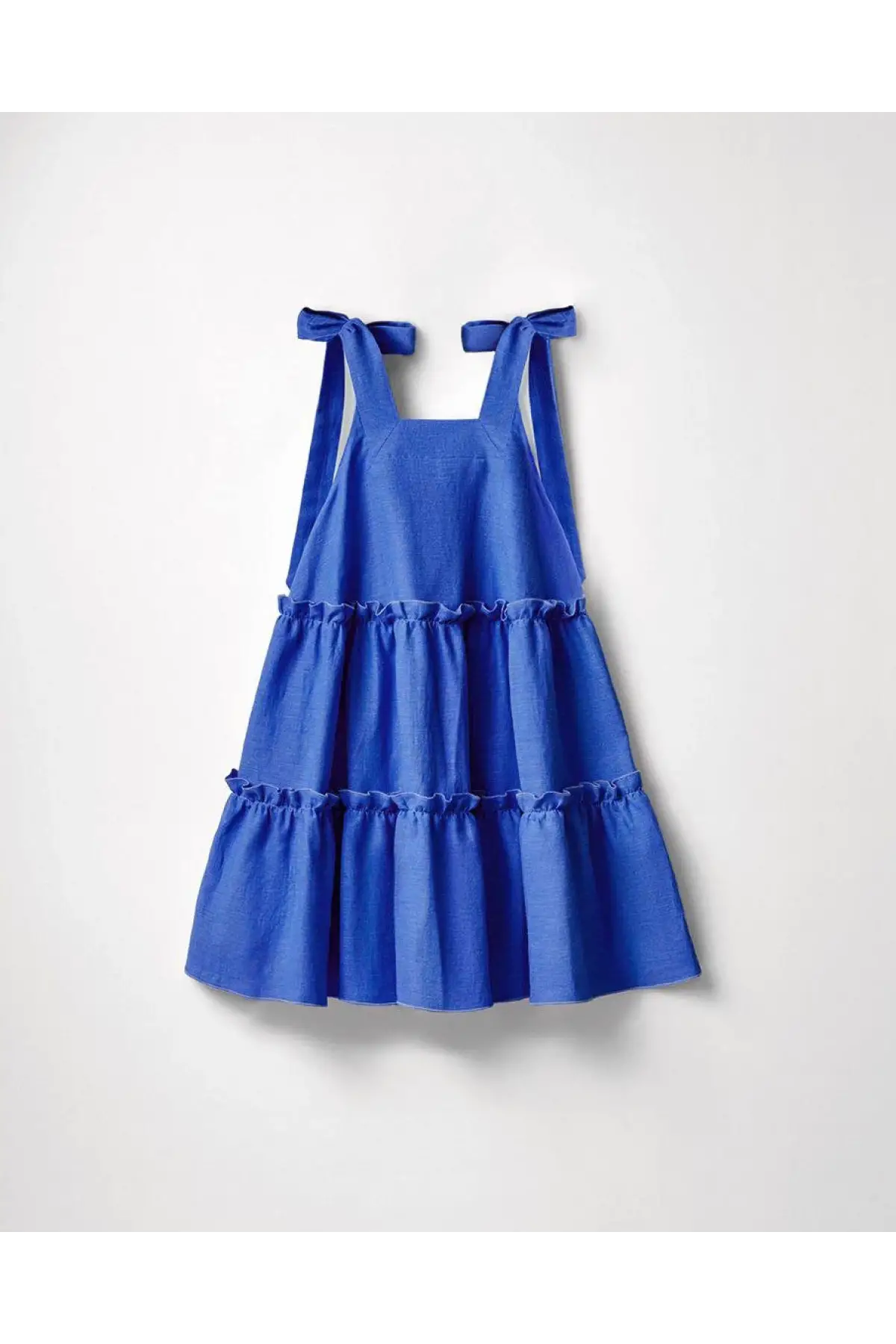 Laciel Saks Mavisi Kurdeleli Dokuma Yazlık Elbise