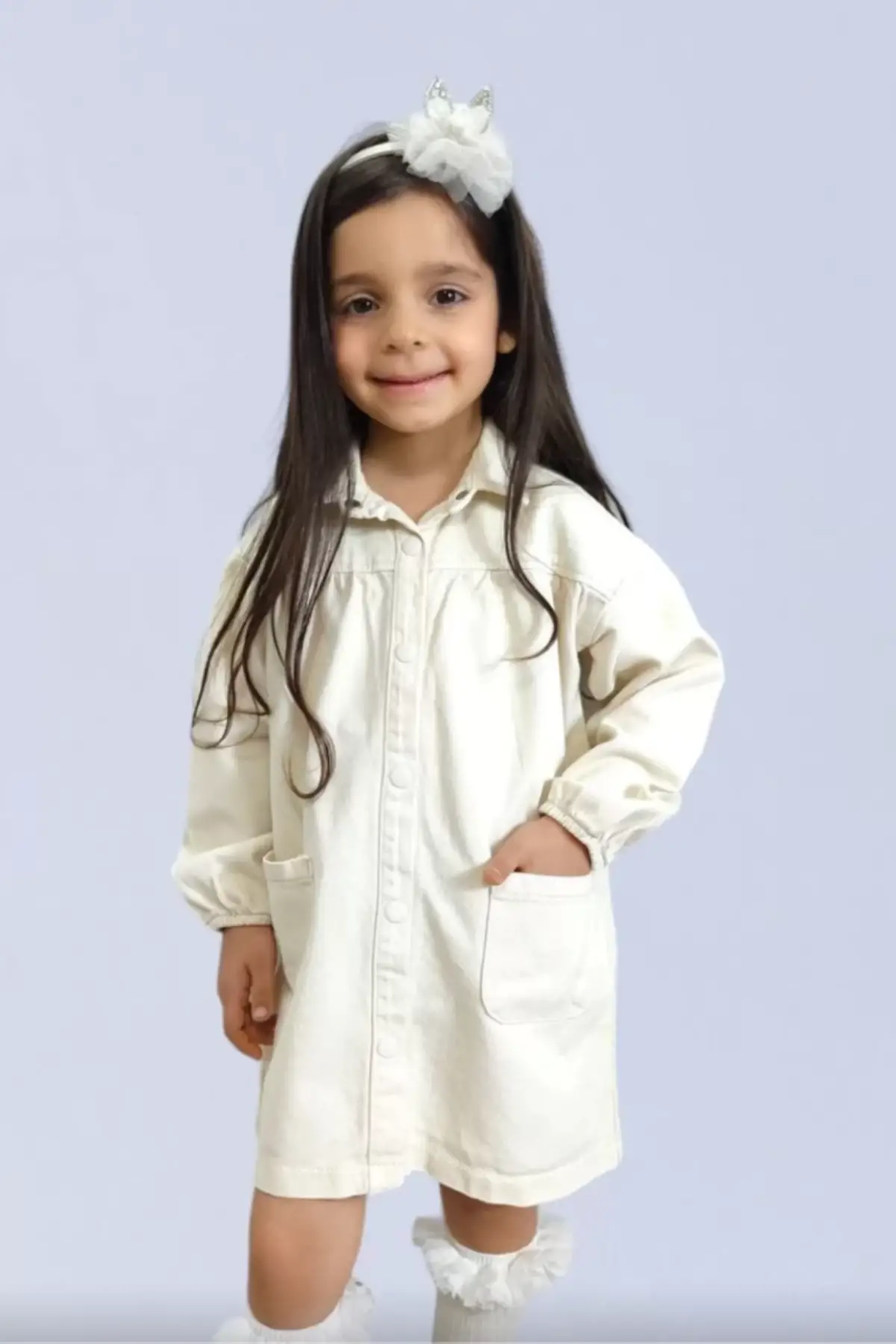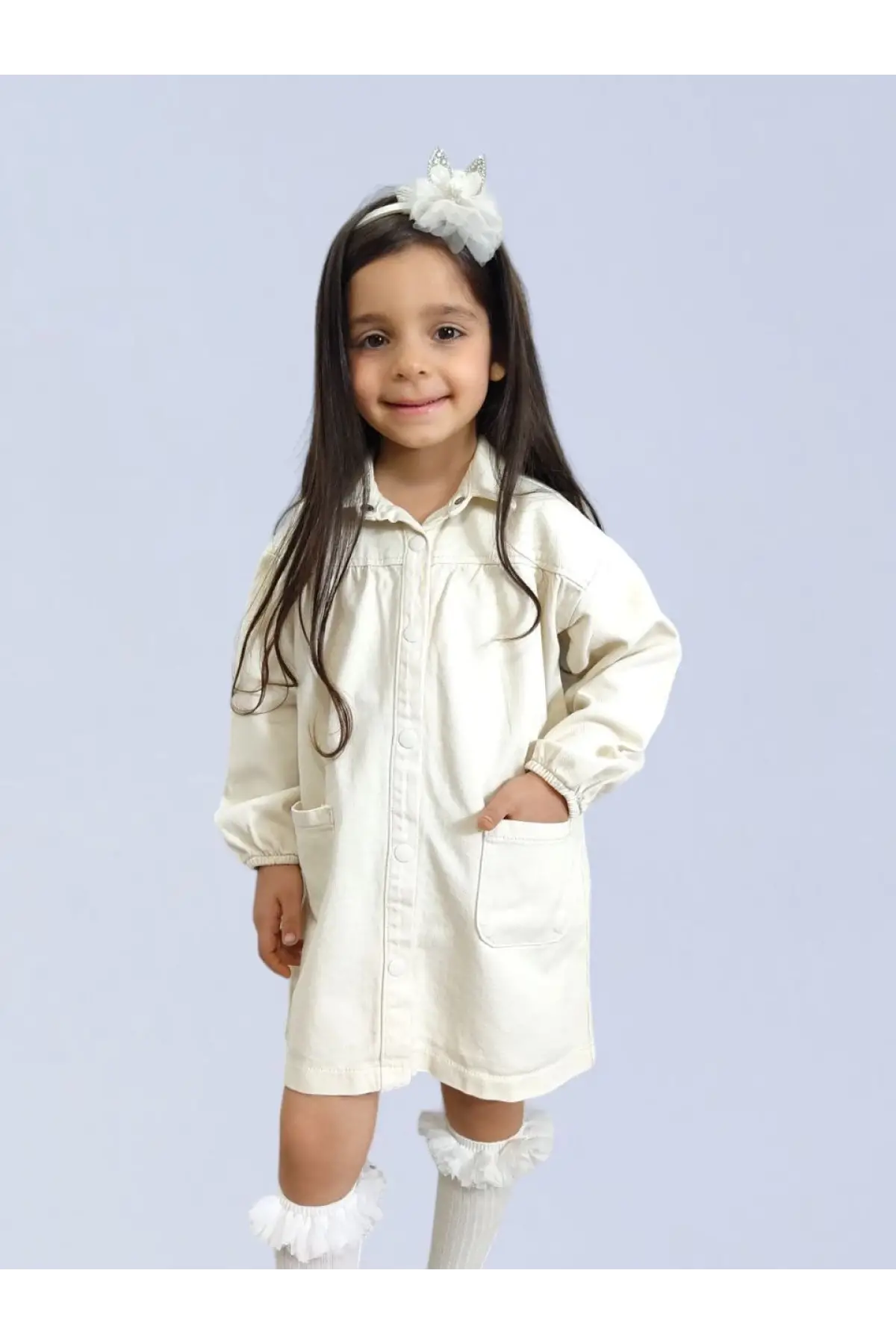Kız Çocuk Cep Detaylı Bej Kot Elbise