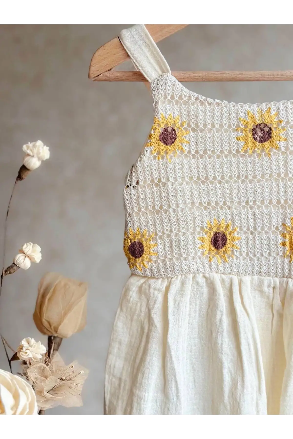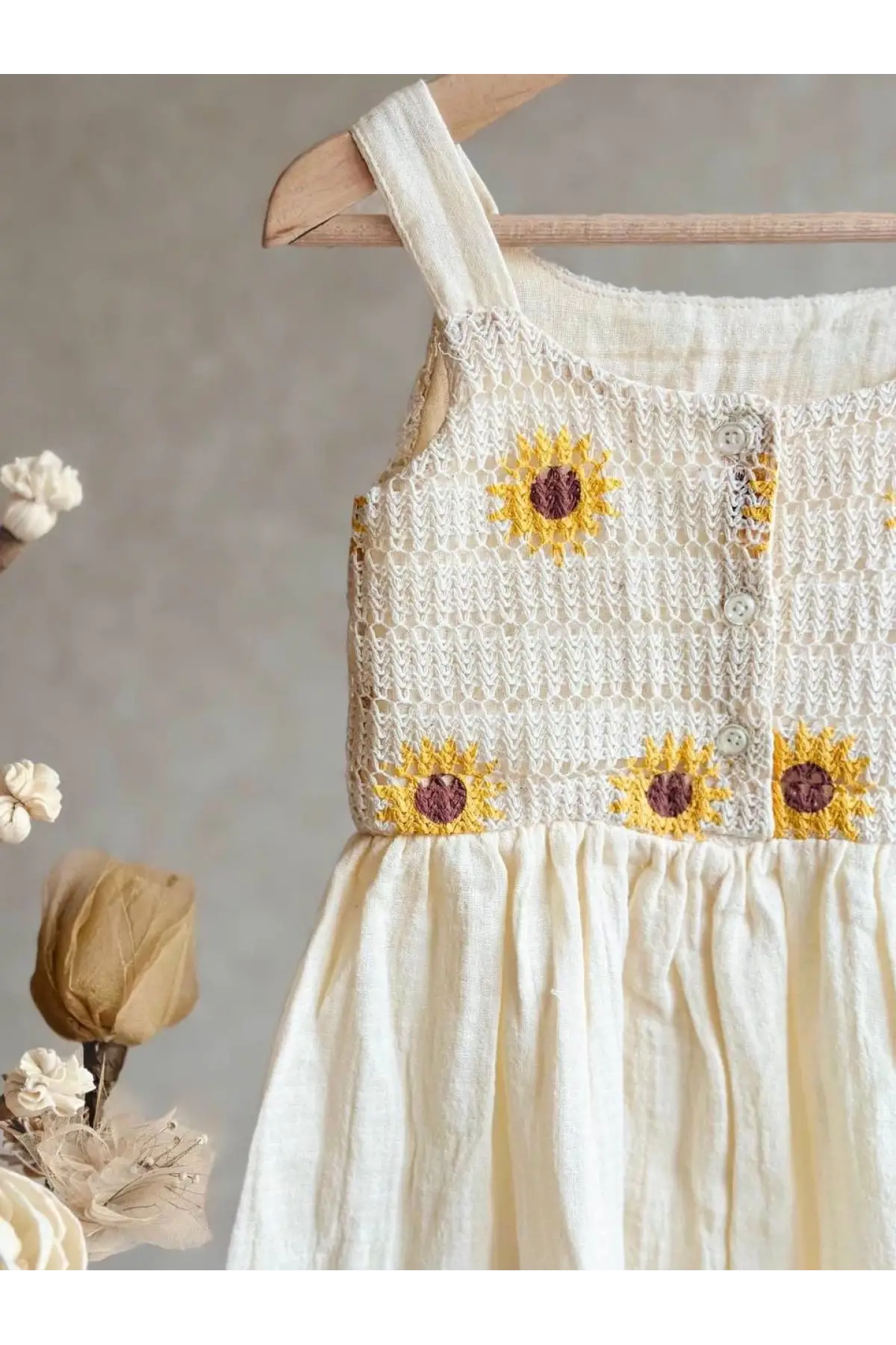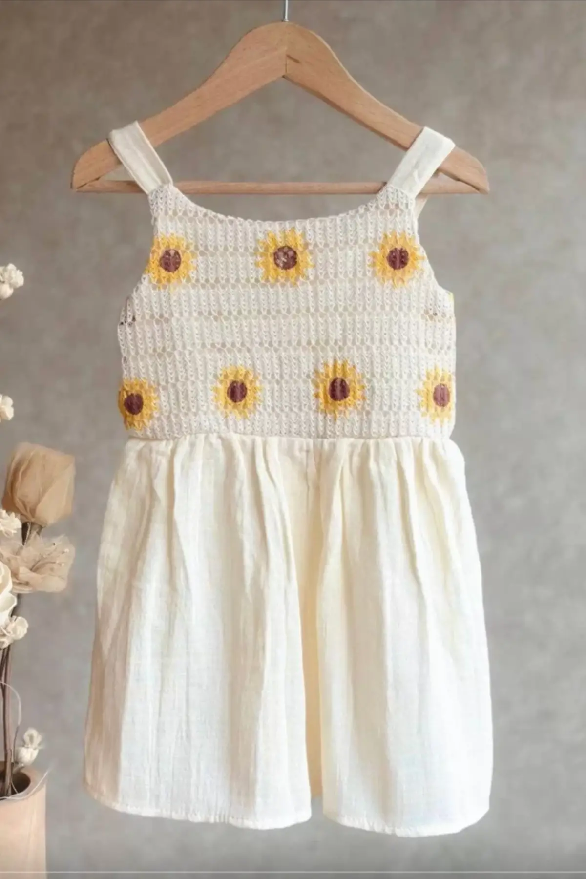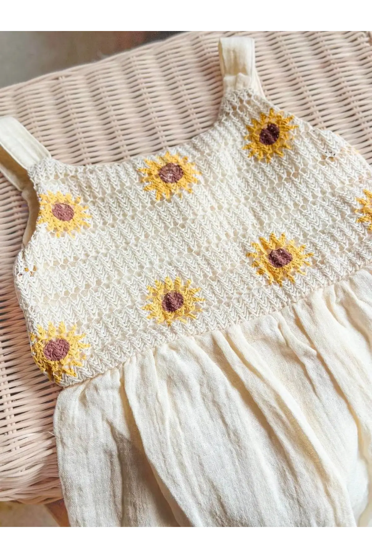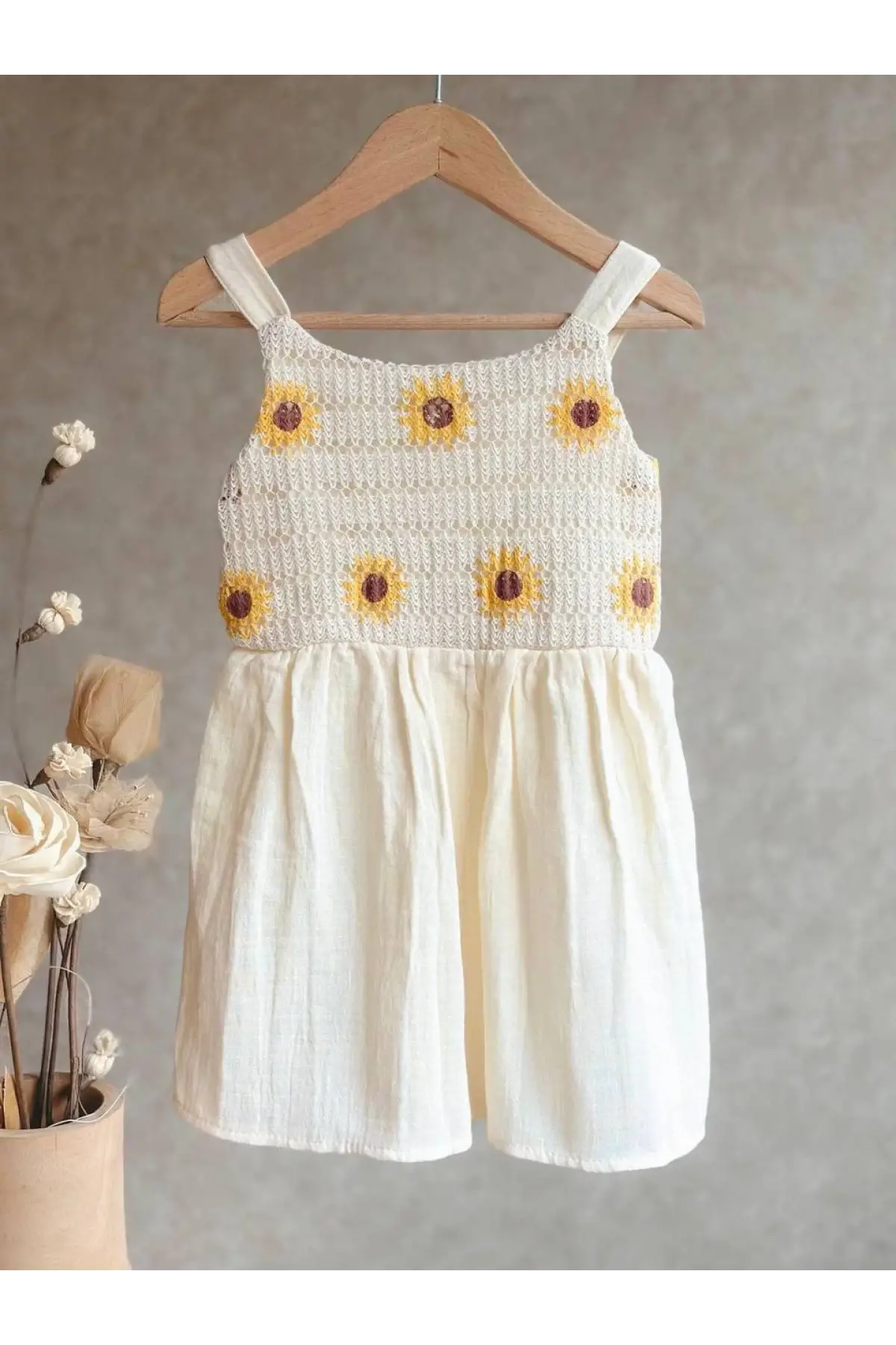 Kız Çocuk Papatya Desenli Yazlık Elbise