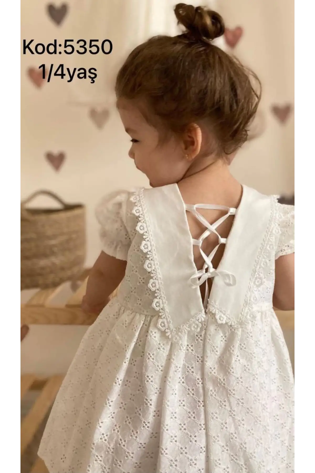 Kız Çocuk Sırt Detaylı Güpür Elbise
