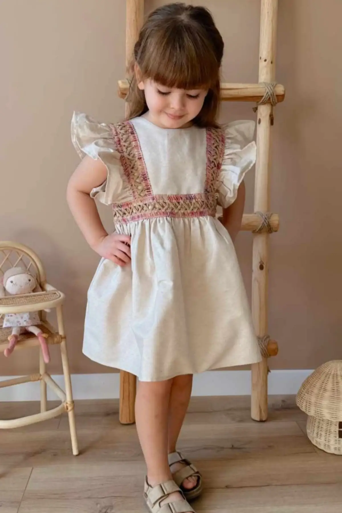 Kız Çocuk Keten Bala Elbise