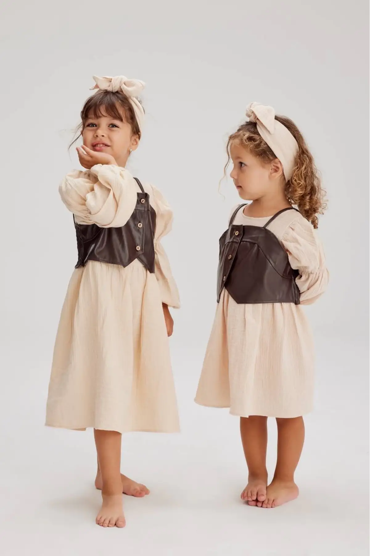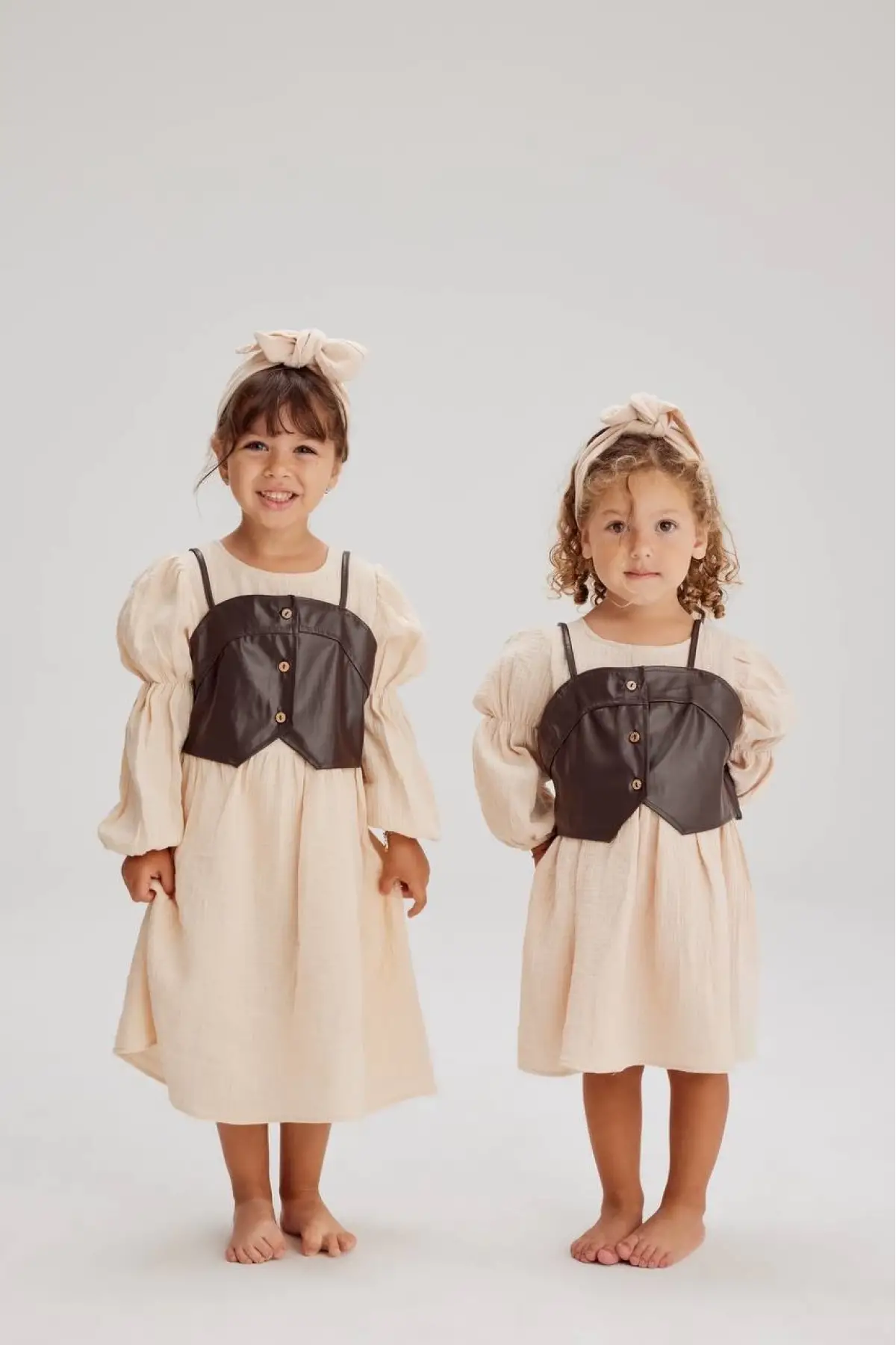 Kız Çocuk Müslin Kumaş Deri Detaylı Elbise