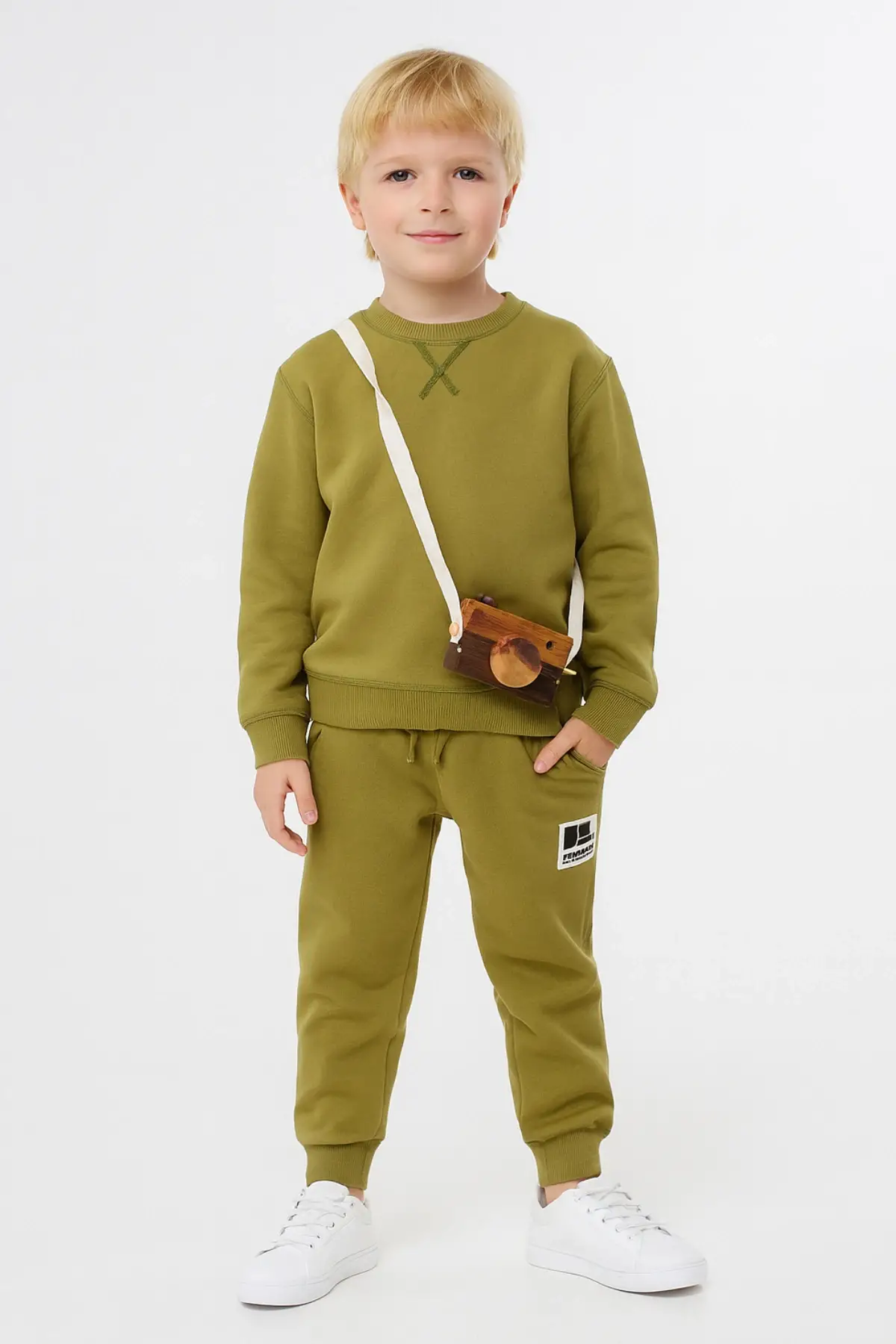 Erkek Çocuk Bisiklet Yaka %100 Pamuk Yeşil Alt-Üst Takım