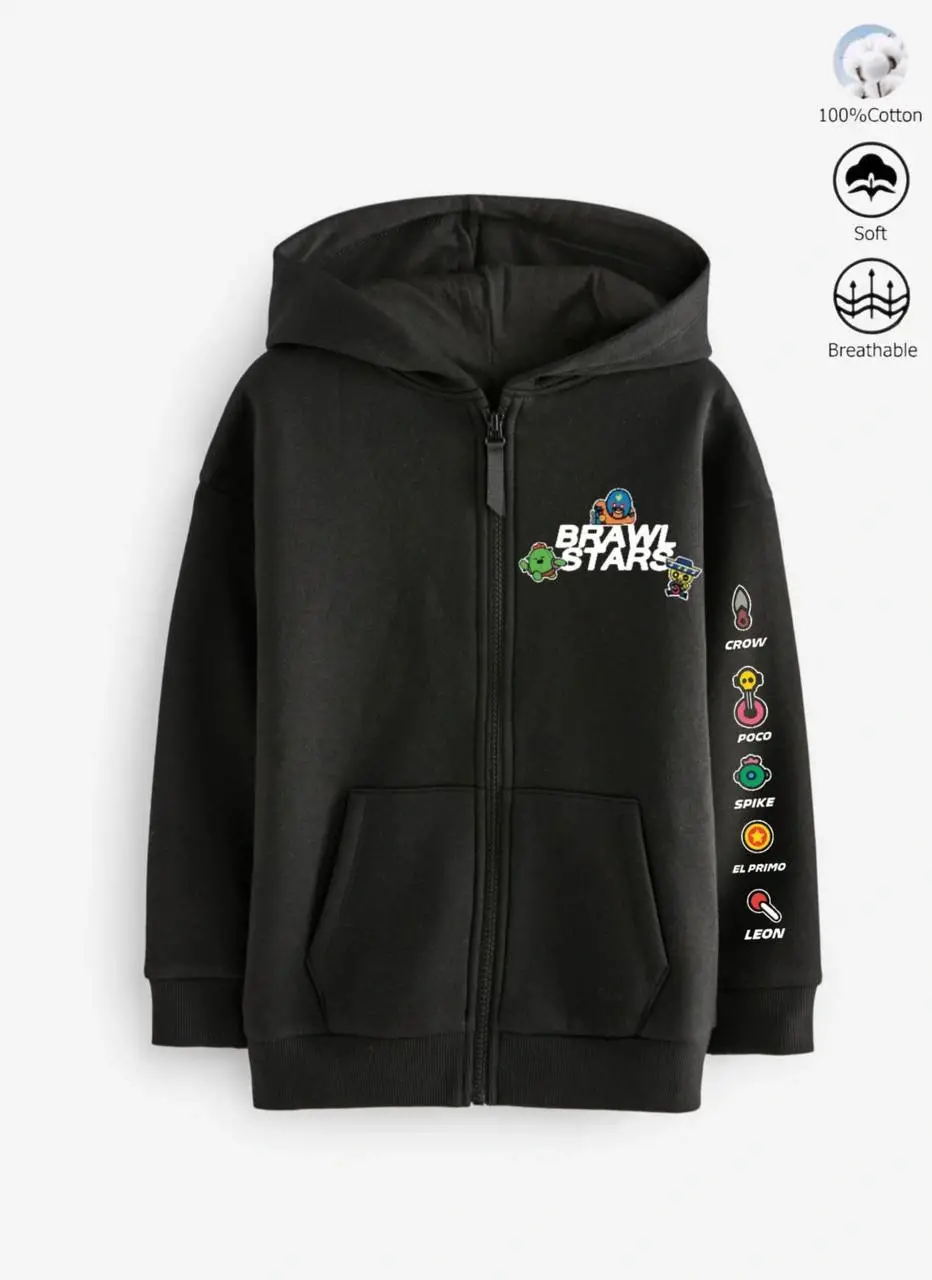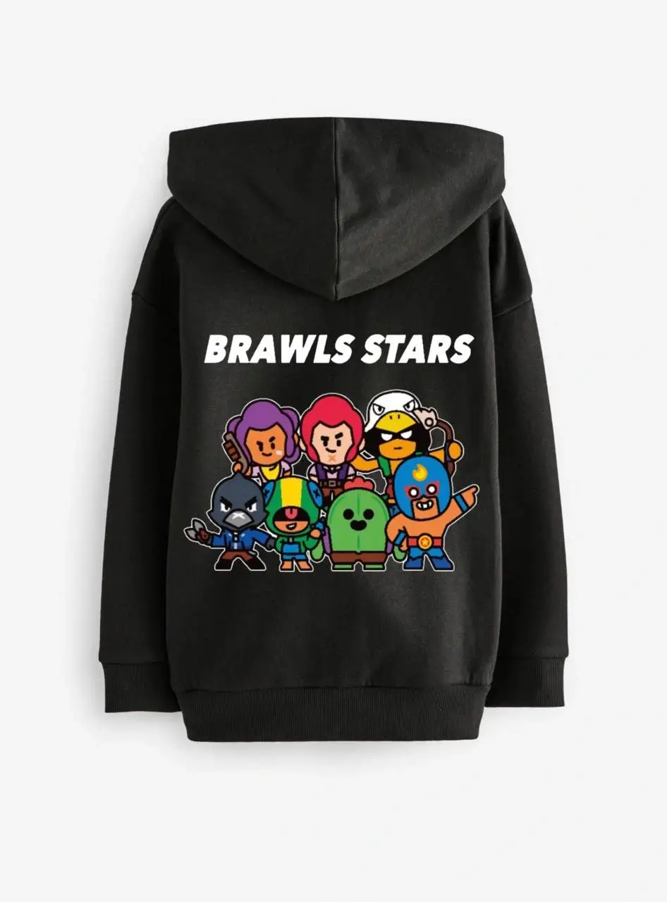 Erkek Çocuk Brawl Stars Baskılı Fermuarlı Kapüşonlu Sweatshirt