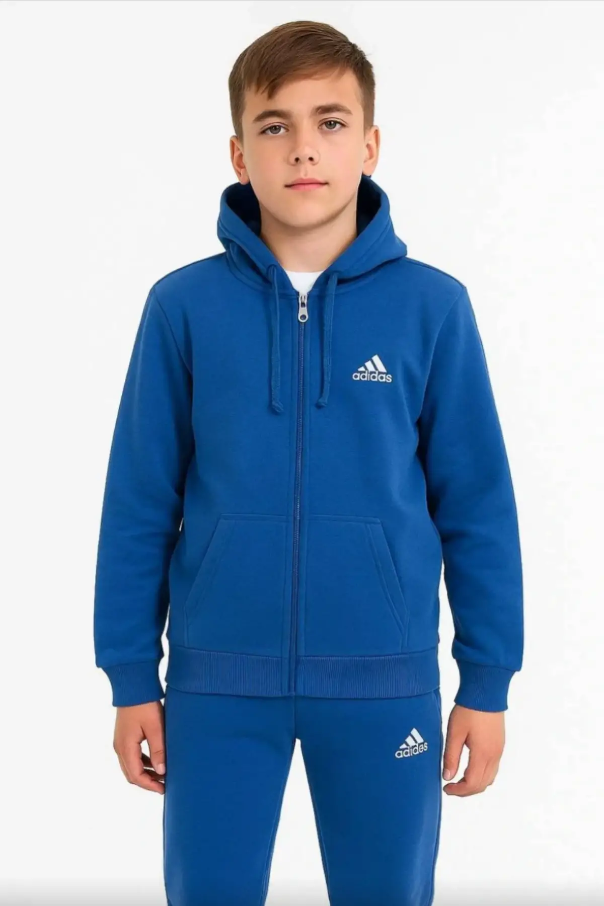 Erkek Çocuk Çizgili Fermuarlı %100 Pamuk Mavi Takım