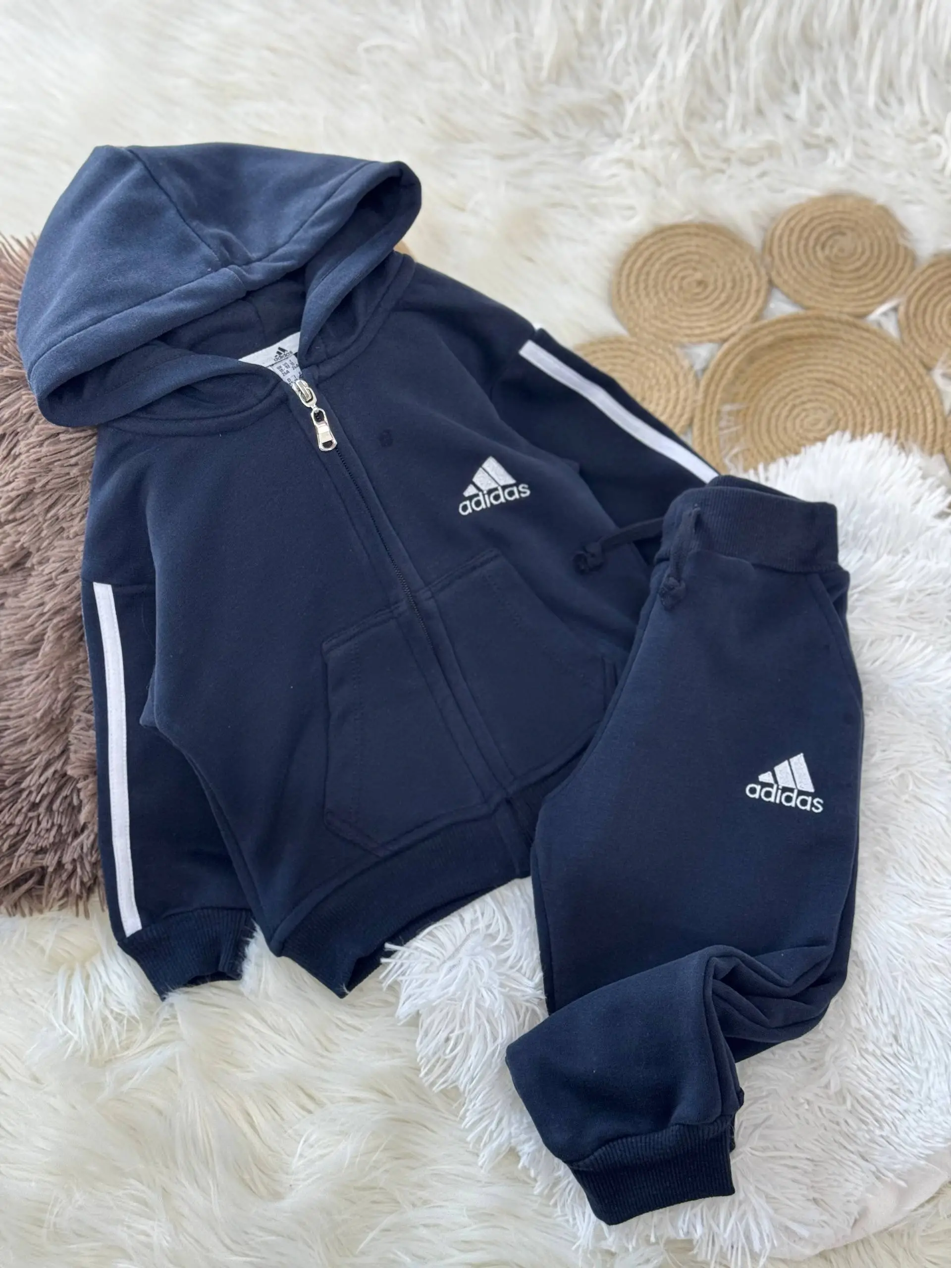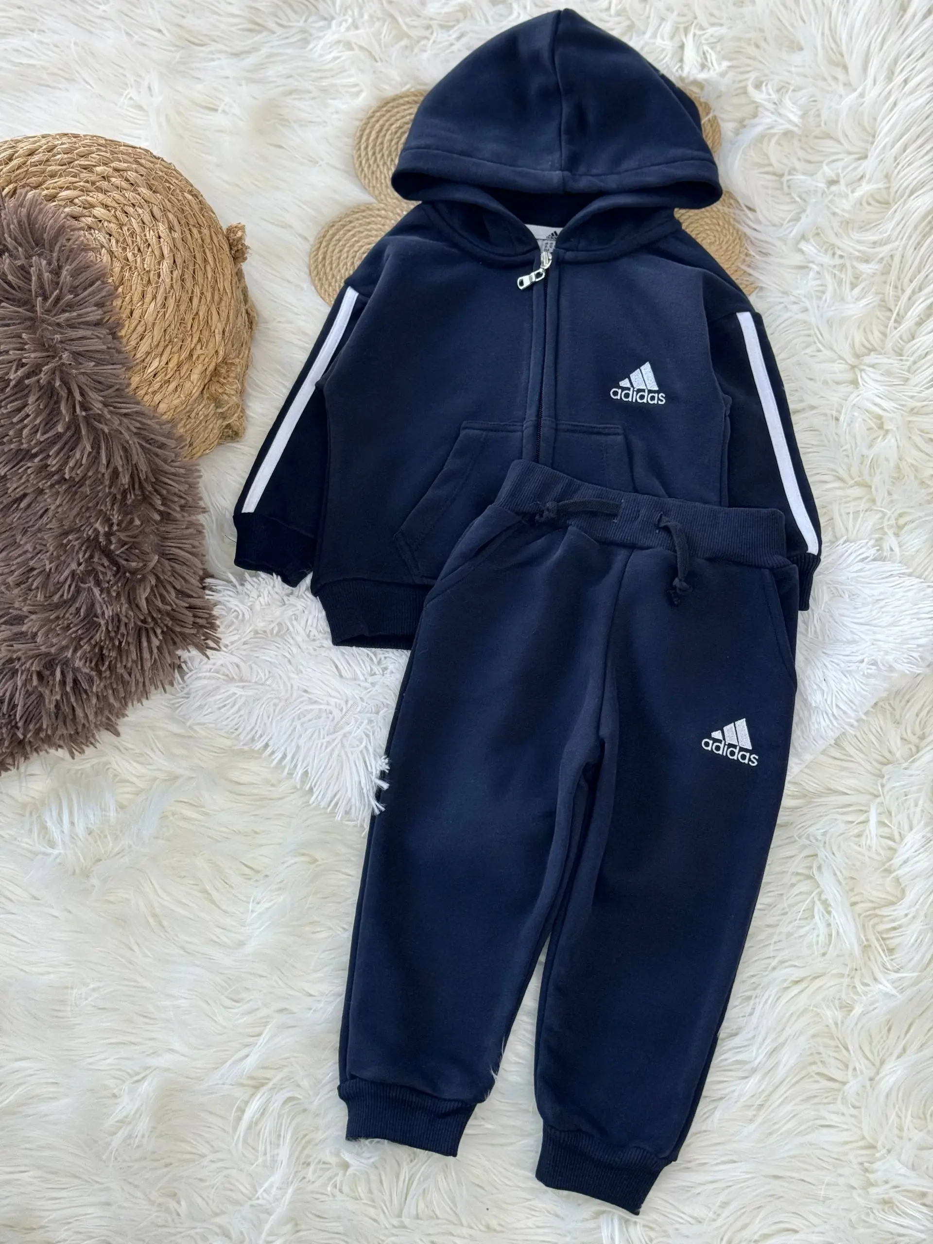 Erkek Çocuk Çizgili Fermuarlı Lacivert Takım