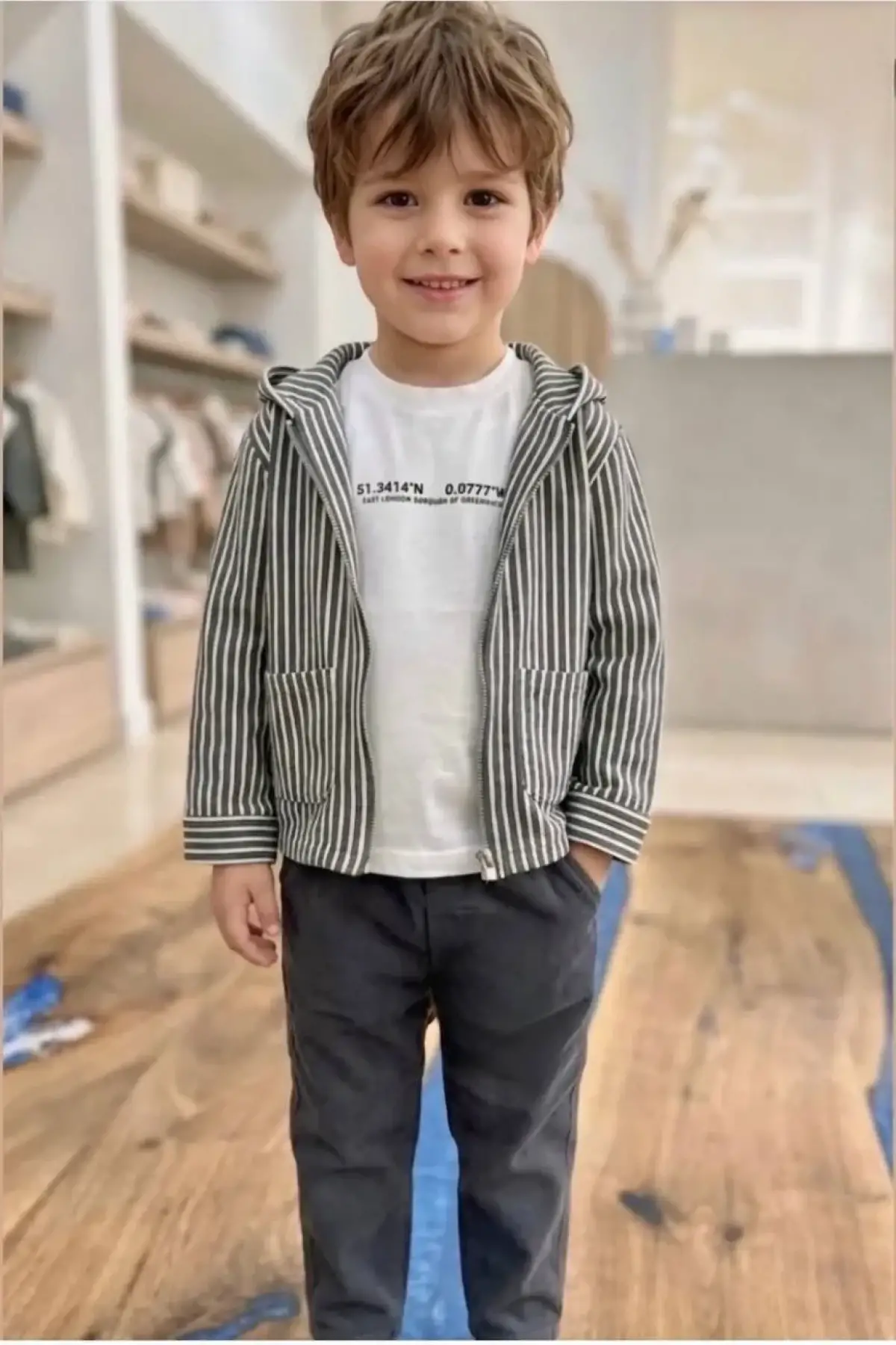 Erkek Çocuk Gri Çizgili Kapüşonlu 3'lü Takım