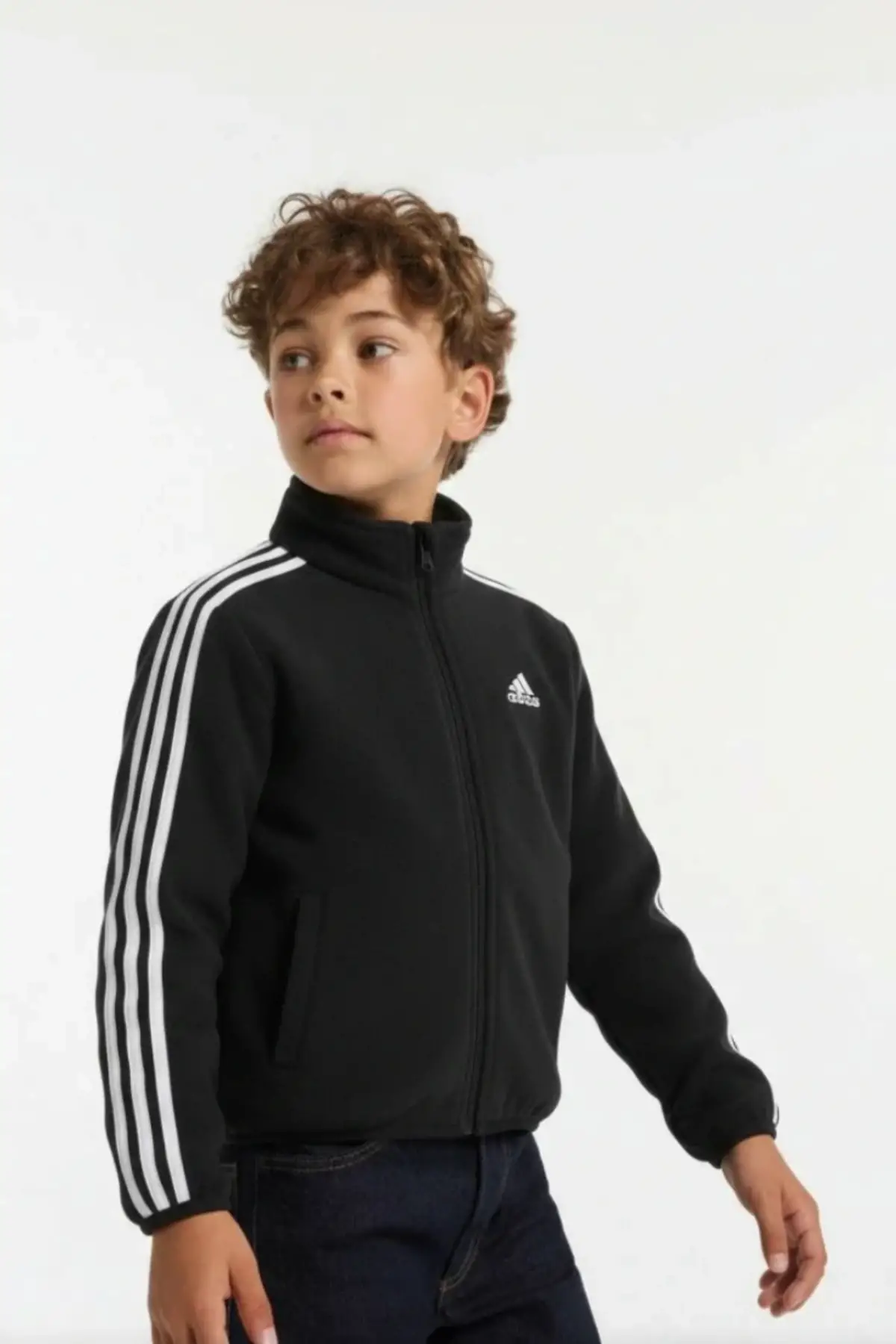 Erkek Çocuk Çizgili Siyah Polar Hırka