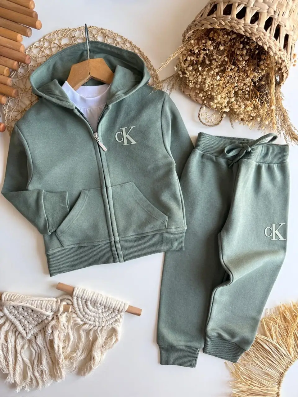 Erkek Çocuk CK Fermuarlı Yeşil %100 Pamuk Takım
