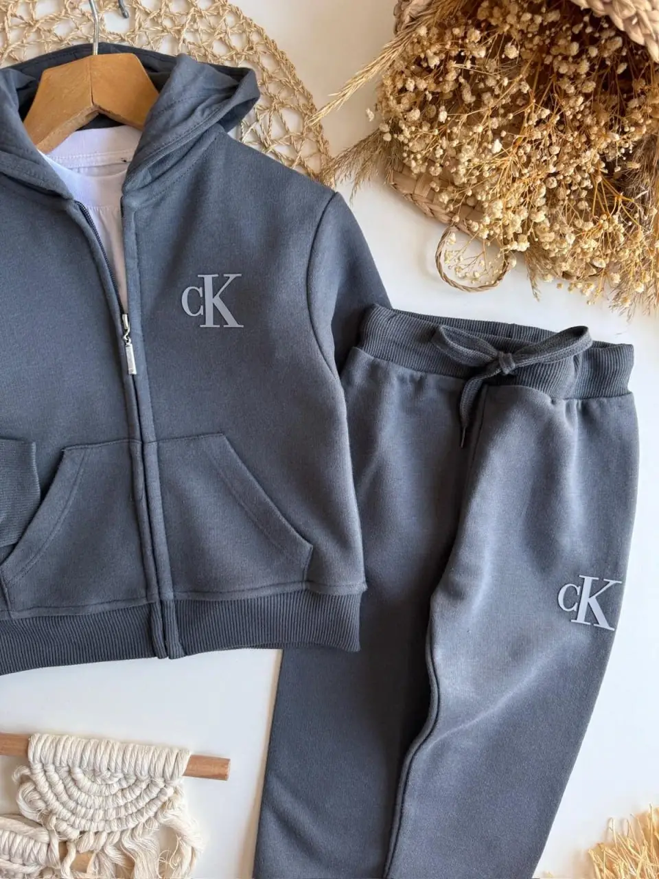 Erkek Çocuk CK Fermuarlı Gri %100 Pamuk Takım