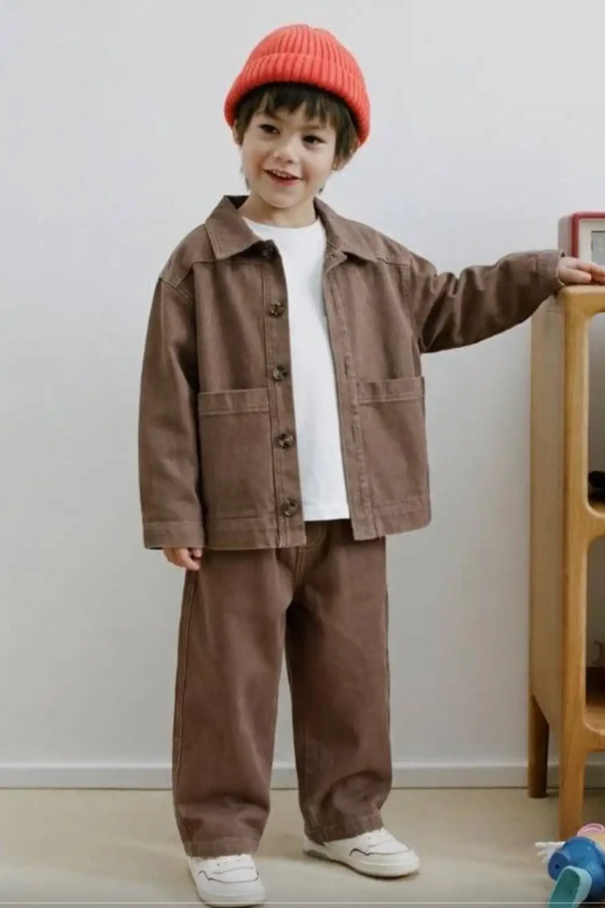 Erkek Çocuk Gabardin Kumaş 3'lü Kahve Takım