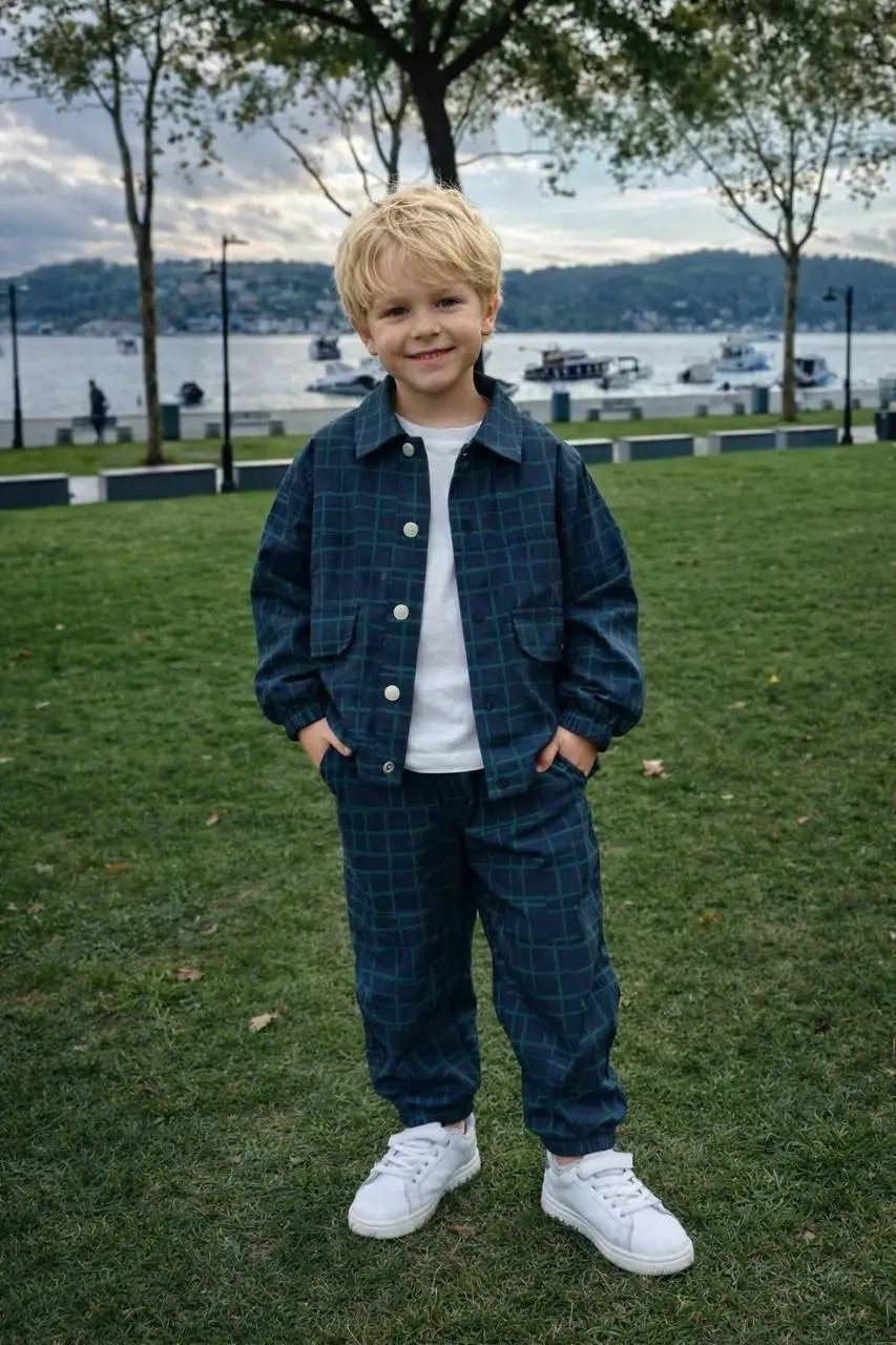 Erkek Çocuk Gömlekli 3'lü Lacivert Takım