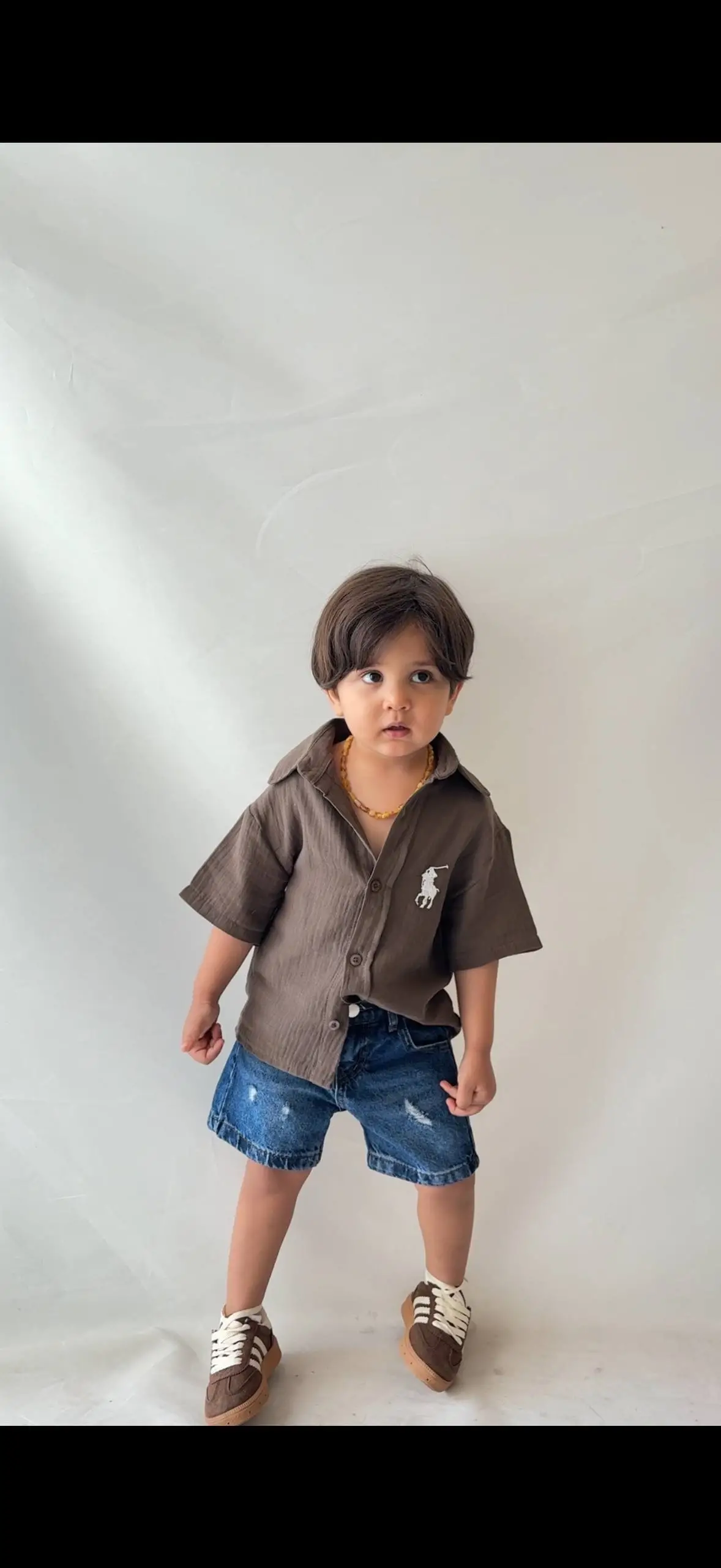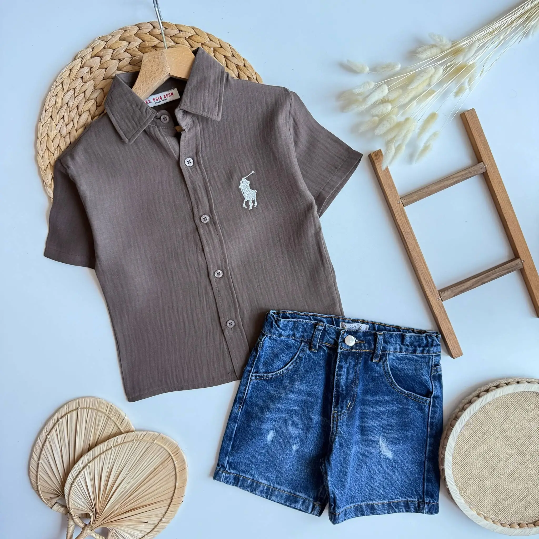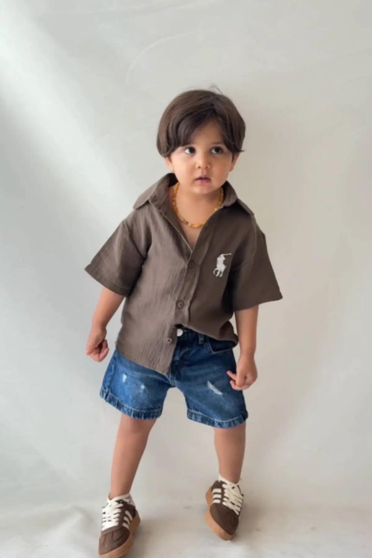 Erkek Çocuk Kahve Gömlek şortlu Takım