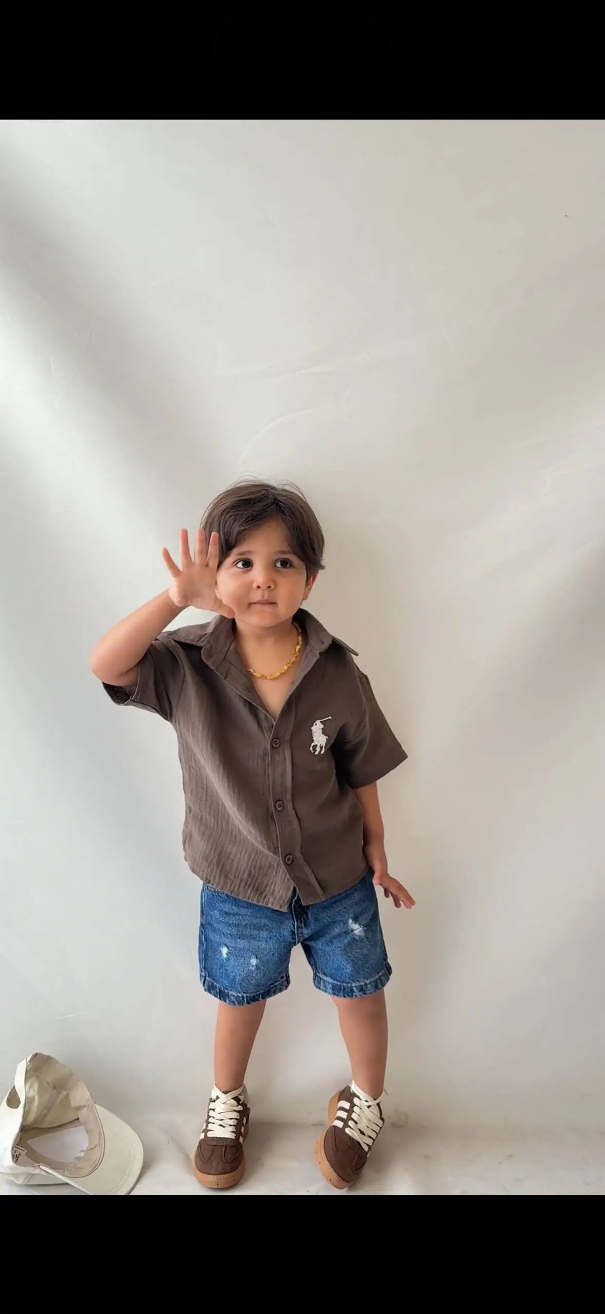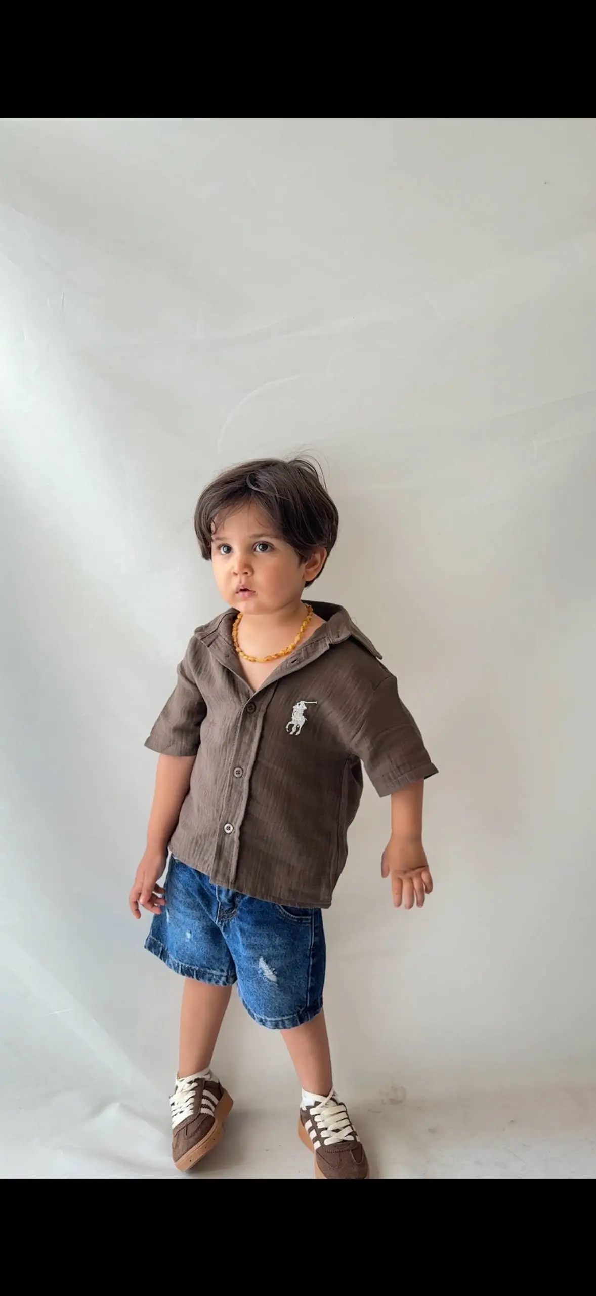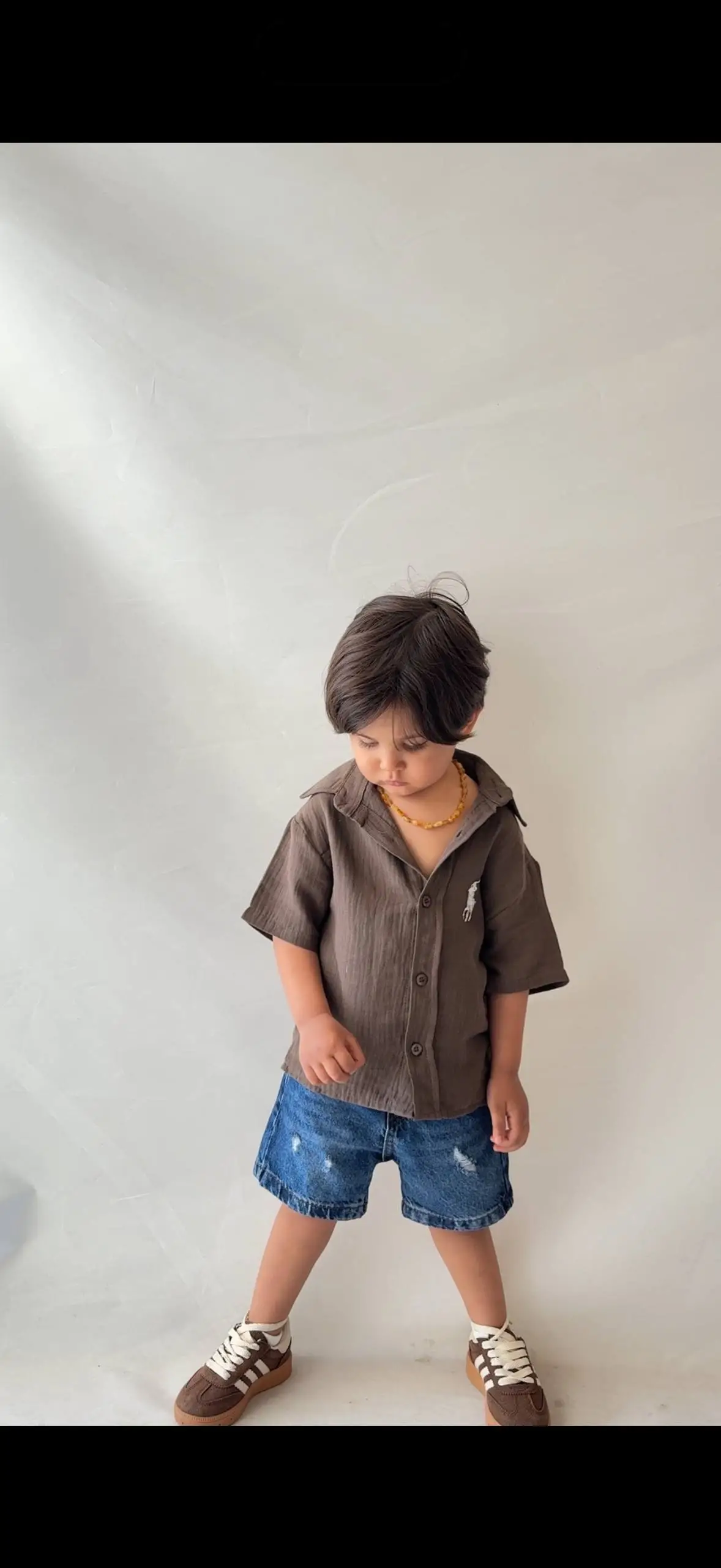 Erkek Çocuk Kahve Gömlek şortlu Takım