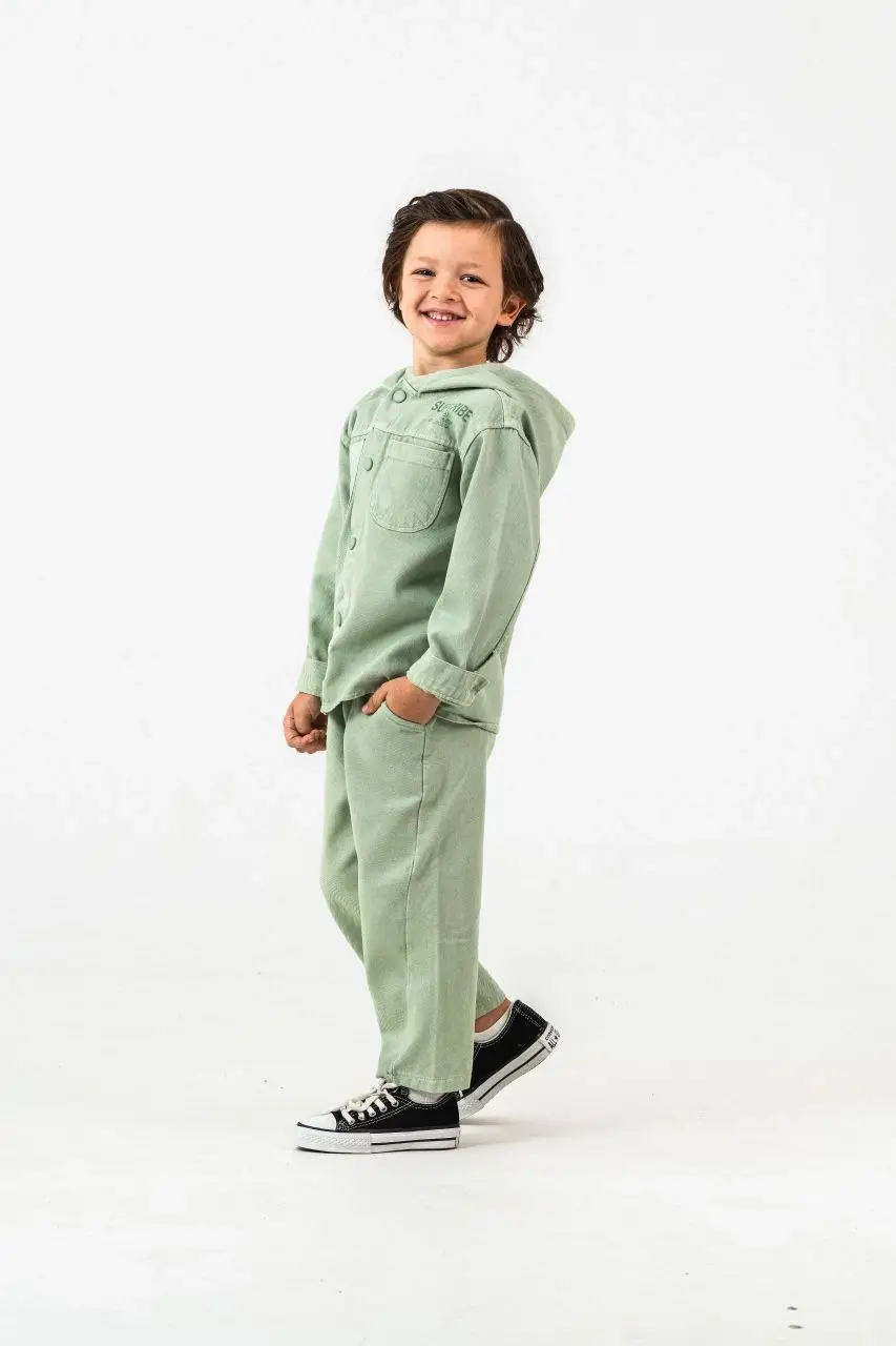 Erkek Çocuk Kapüşonlu Dokuma Yeşil Takım