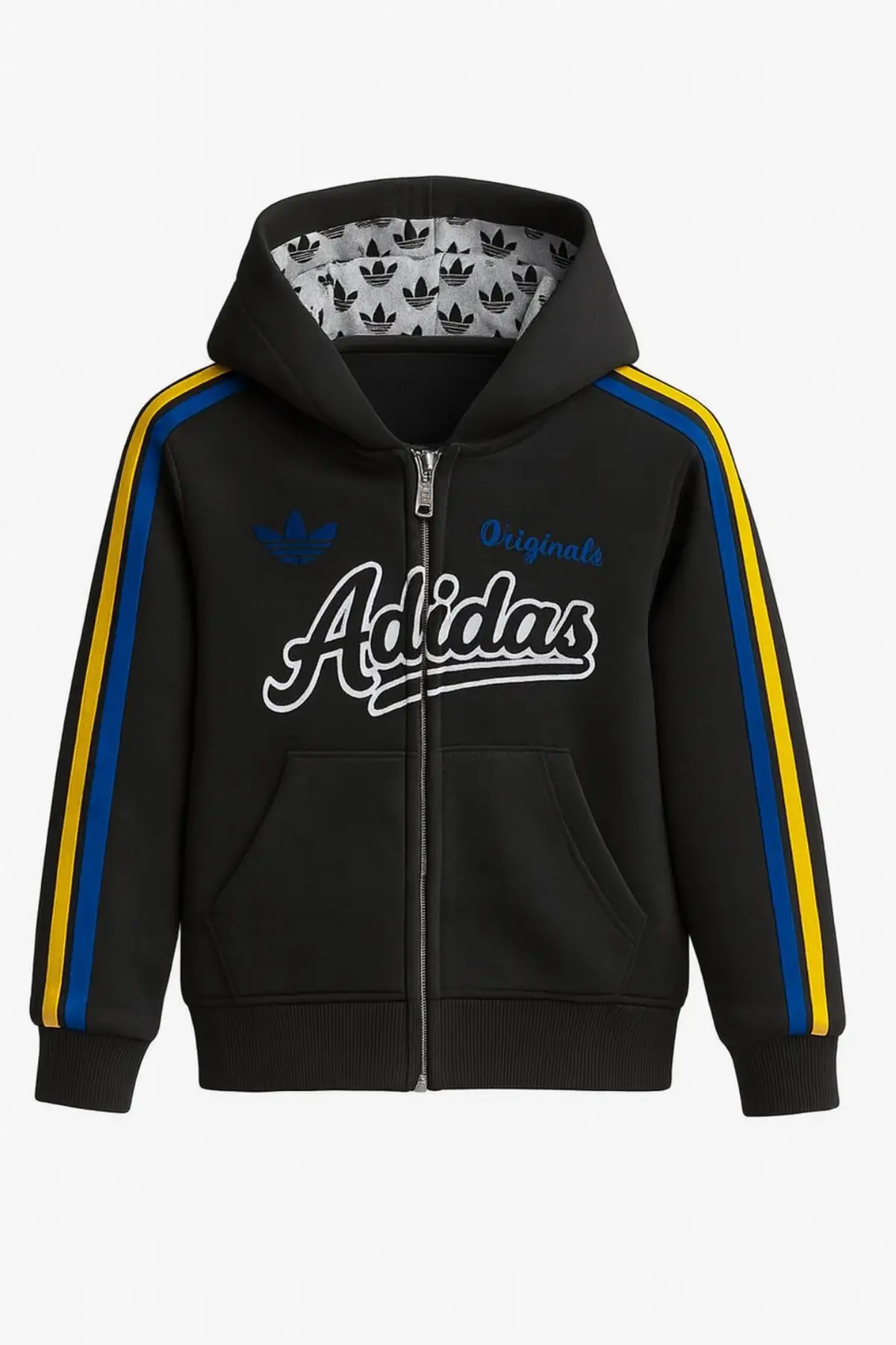 Erkek Çocuk Kapüşonlu Siyah Fermuarlı %100 Pamuk Sweatshirt