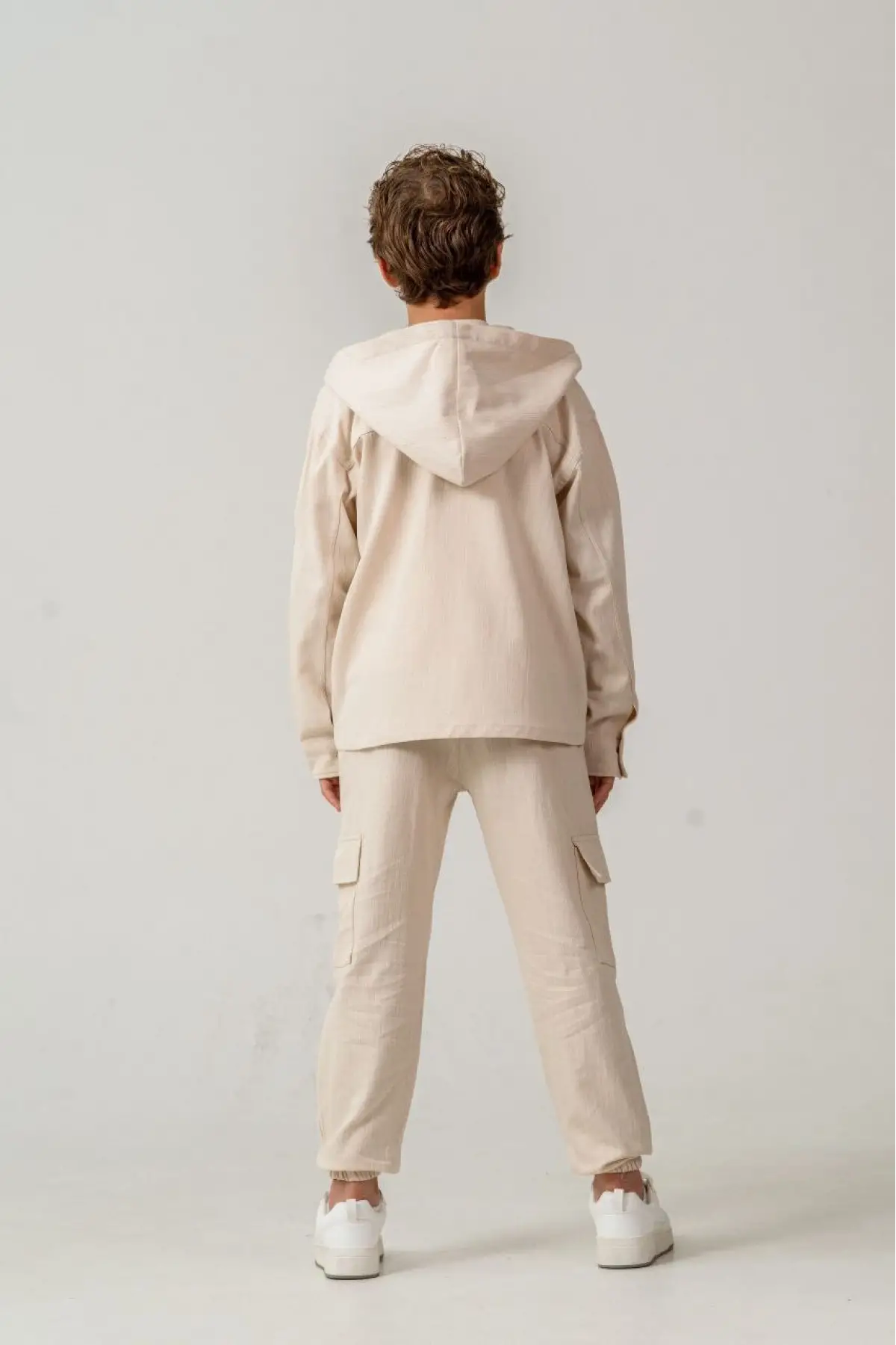 “Minik maceracılar için özgürlüğü ve rahatlığı bir araya getiren bu pamuk alt üst çocuk takımı, onların hareket özgürlüğünü desteklerken, sağlıklı ve doğal bir malzeme ile üretilmiştir. Pamuğun yumuşak dokusuyla çocukların cildine zarar vermezken, özgün tasarımıyla da göz doldurur. Oyun dolu günler için mükemmel bir seçim!"