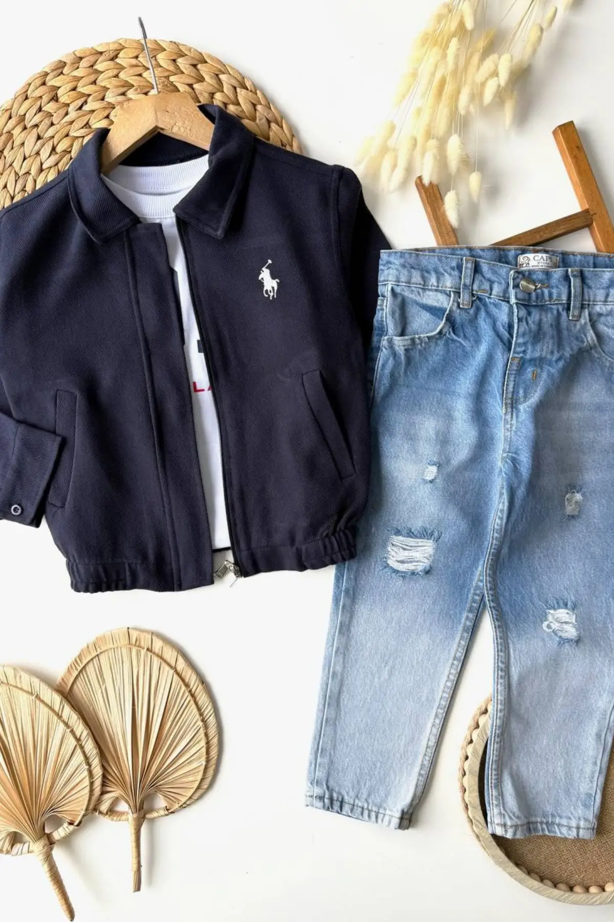 Erkek Çocuk Keten 3'lü Lacivert Takım