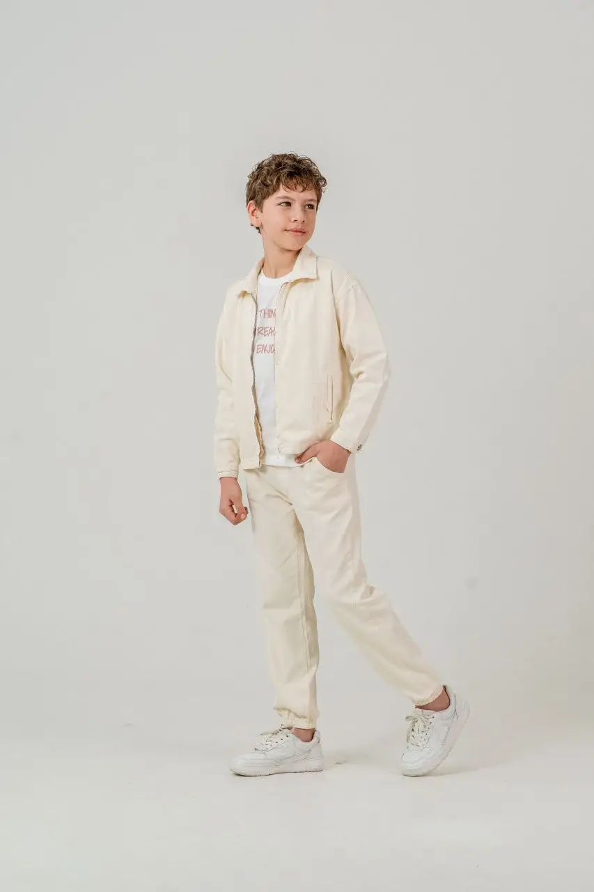 Erkek Çocuk Krem Dokuma 3 Lü Takım