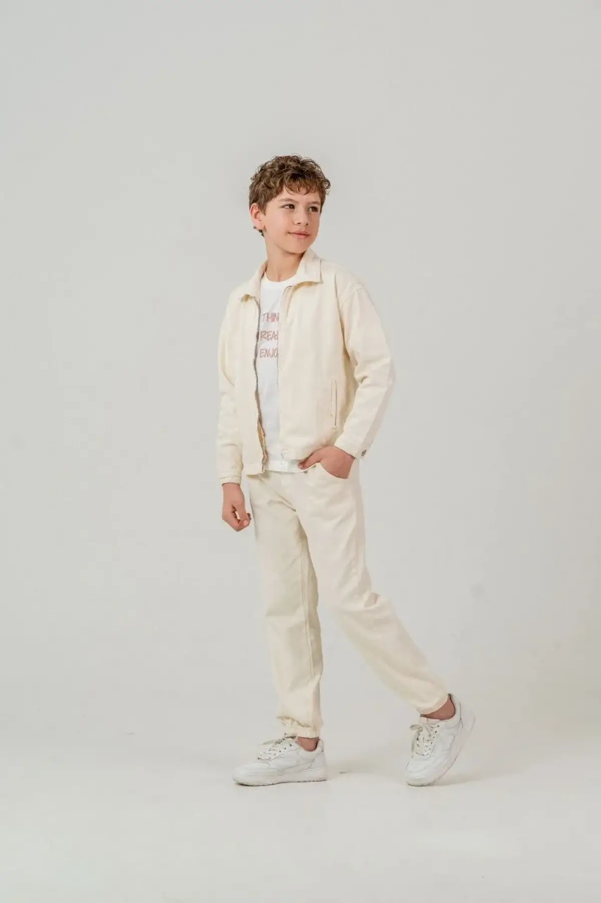 Erkek Çocuk Krem Dokuma 3'lü Takım