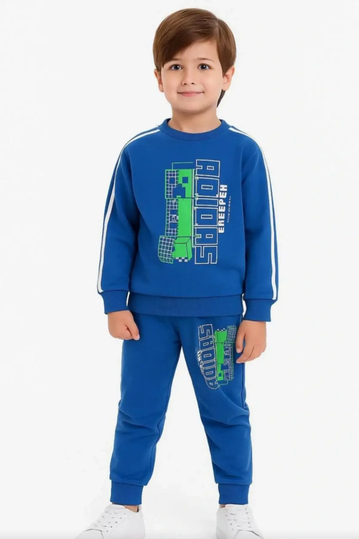 Erkek Çocuk Minecraft %100 Pamuk Mavi Takım