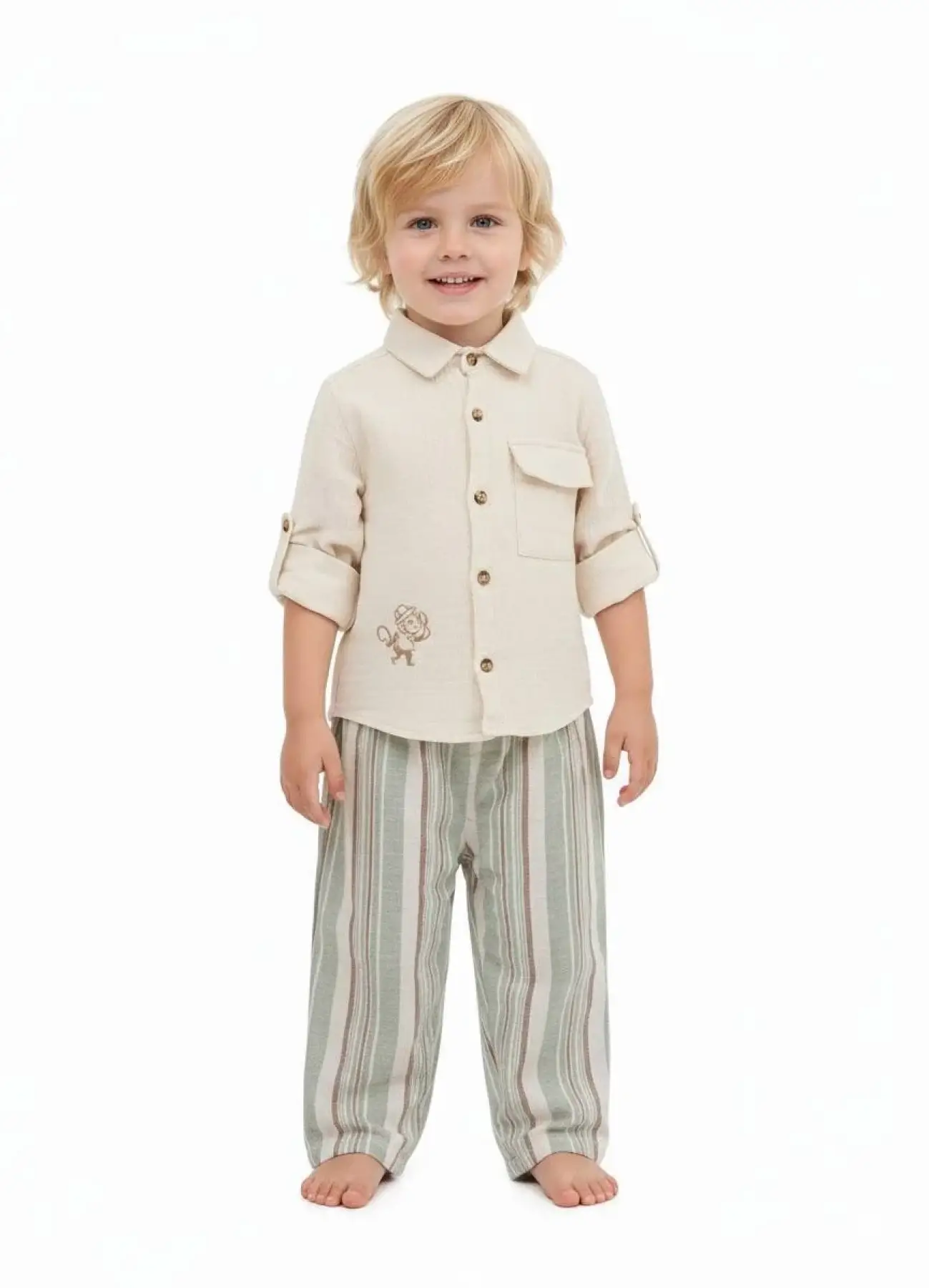 “Minik maceracılar için özgürlüğü ve rahatlığı bir araya getiren bu pamuk alt üst çocuk takımı, onların hareket özgürlüğünü desteklerken, sağlıklı ve doğal bir malzeme ile üretilmiştir. Pamuğun yumuşak dokusuyla çocukların cildine zarar vermezken, özgün tasarımıyla da göz doldurur. Oyun dolu günler için mükemmel bir seçim!"