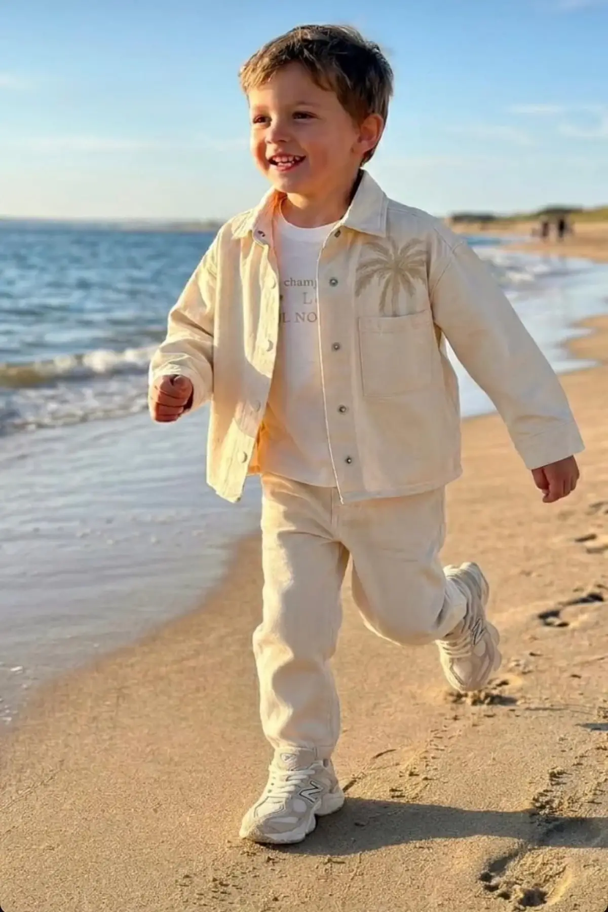 Erkek Çocuk Nakış Detaylı Krem 3'lü Takım