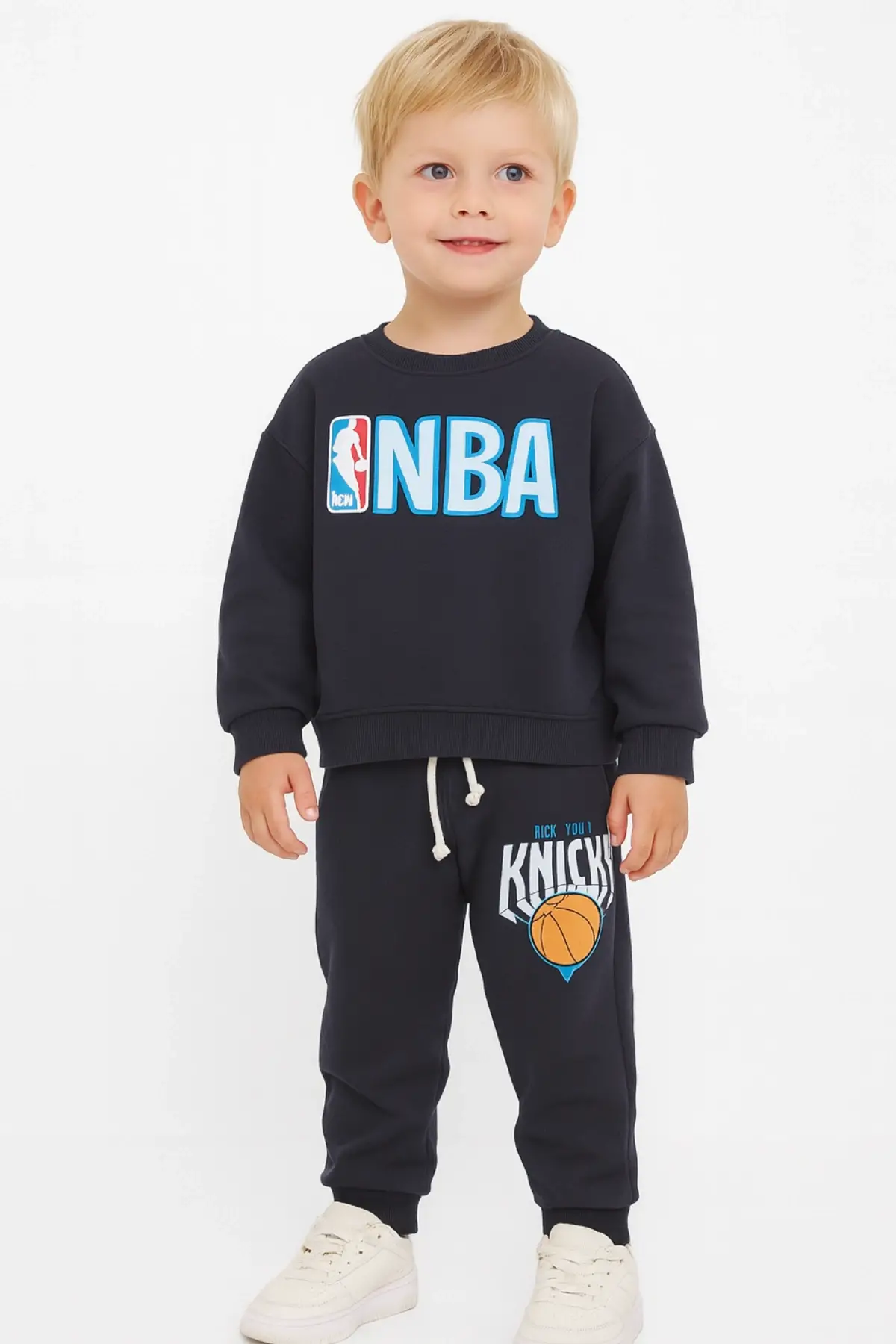 Erkek Çocuk NBA Knicks Baskılı %100 Pamuk Antrasit Takım