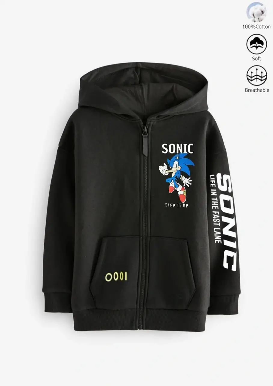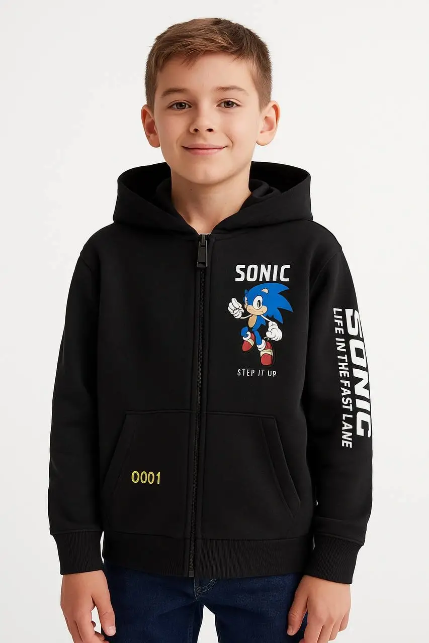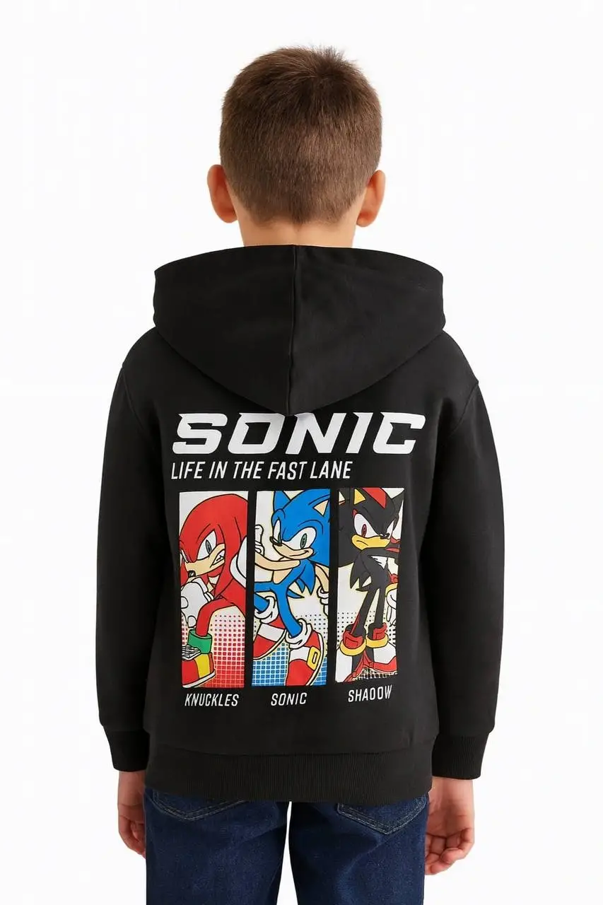 Erkek Çocuk Sonic Baskılı Kapüşonlu Ceket