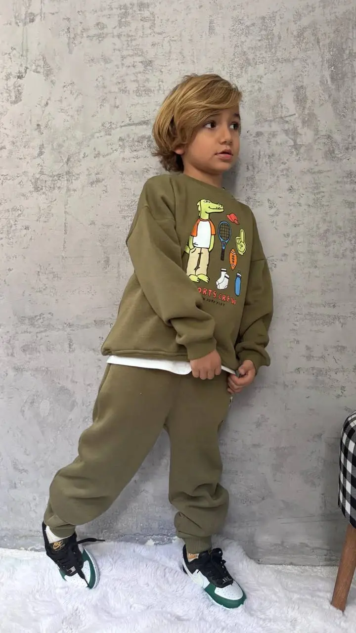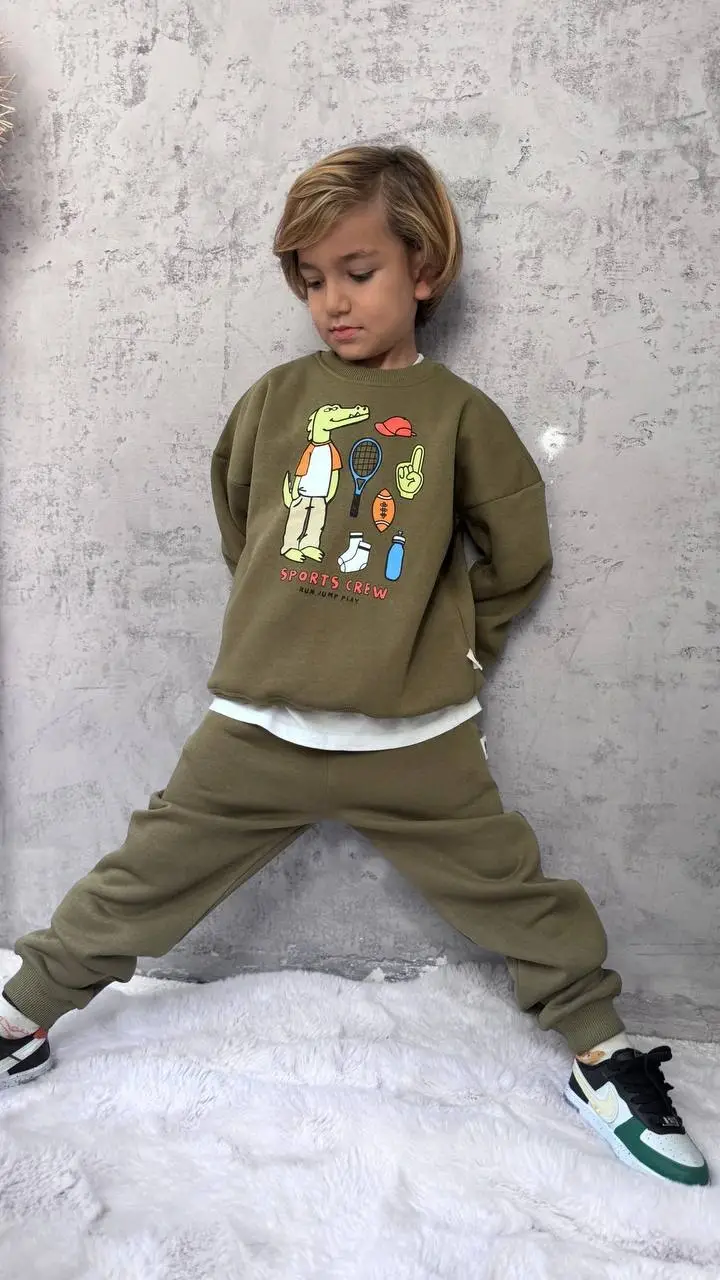 Erkek Çocuk Sports Crew Baskılı Yeşil Alt Üst Takım