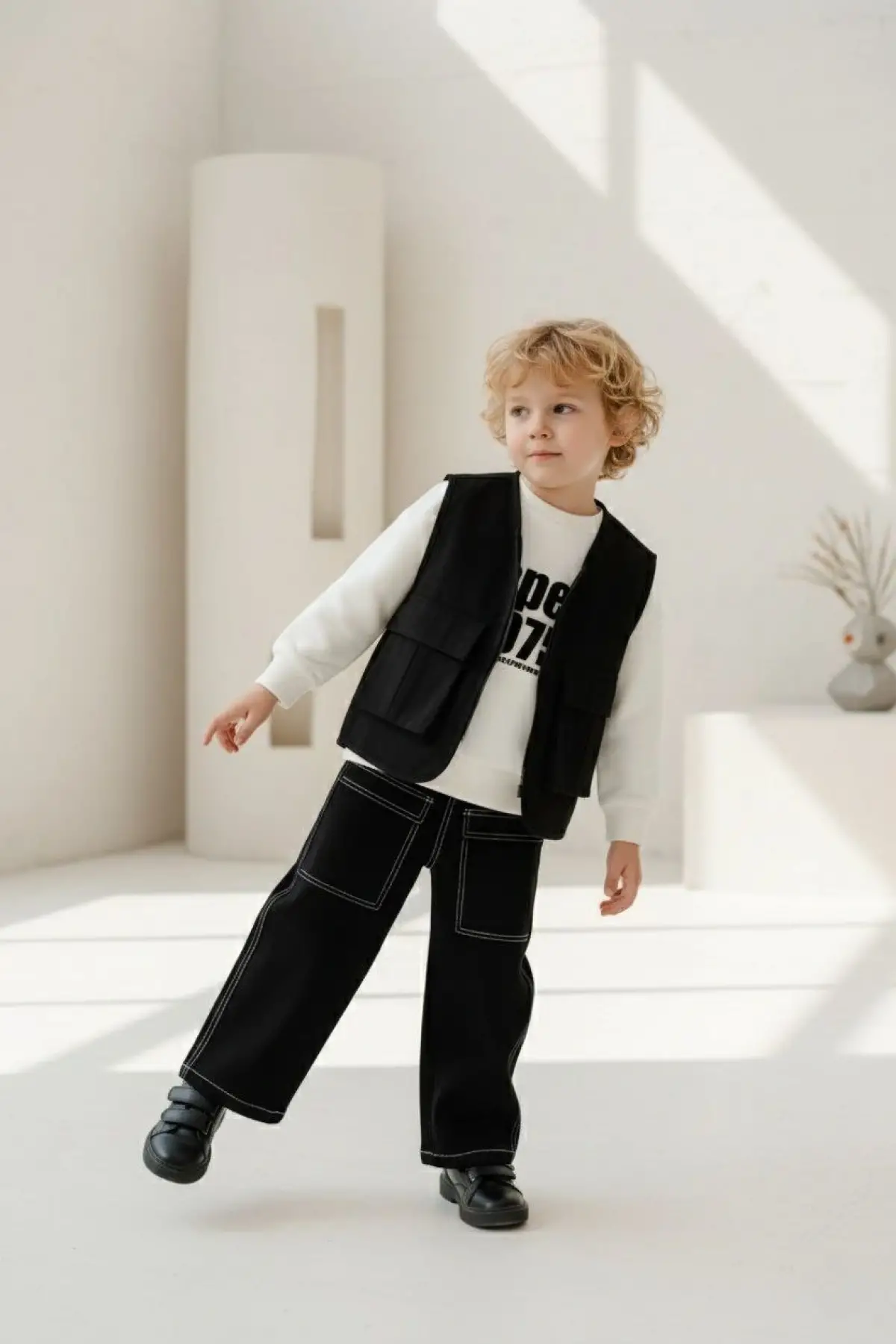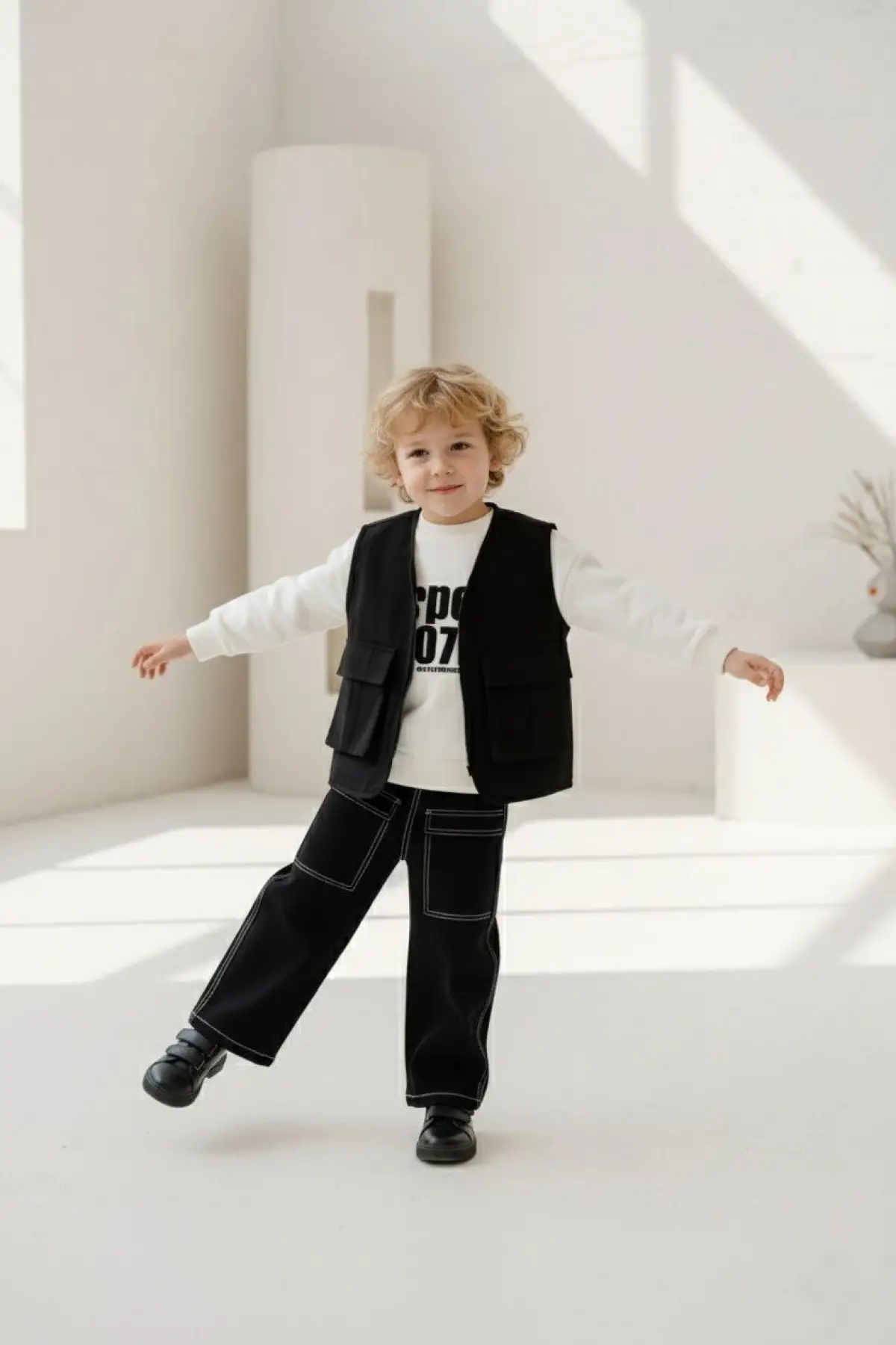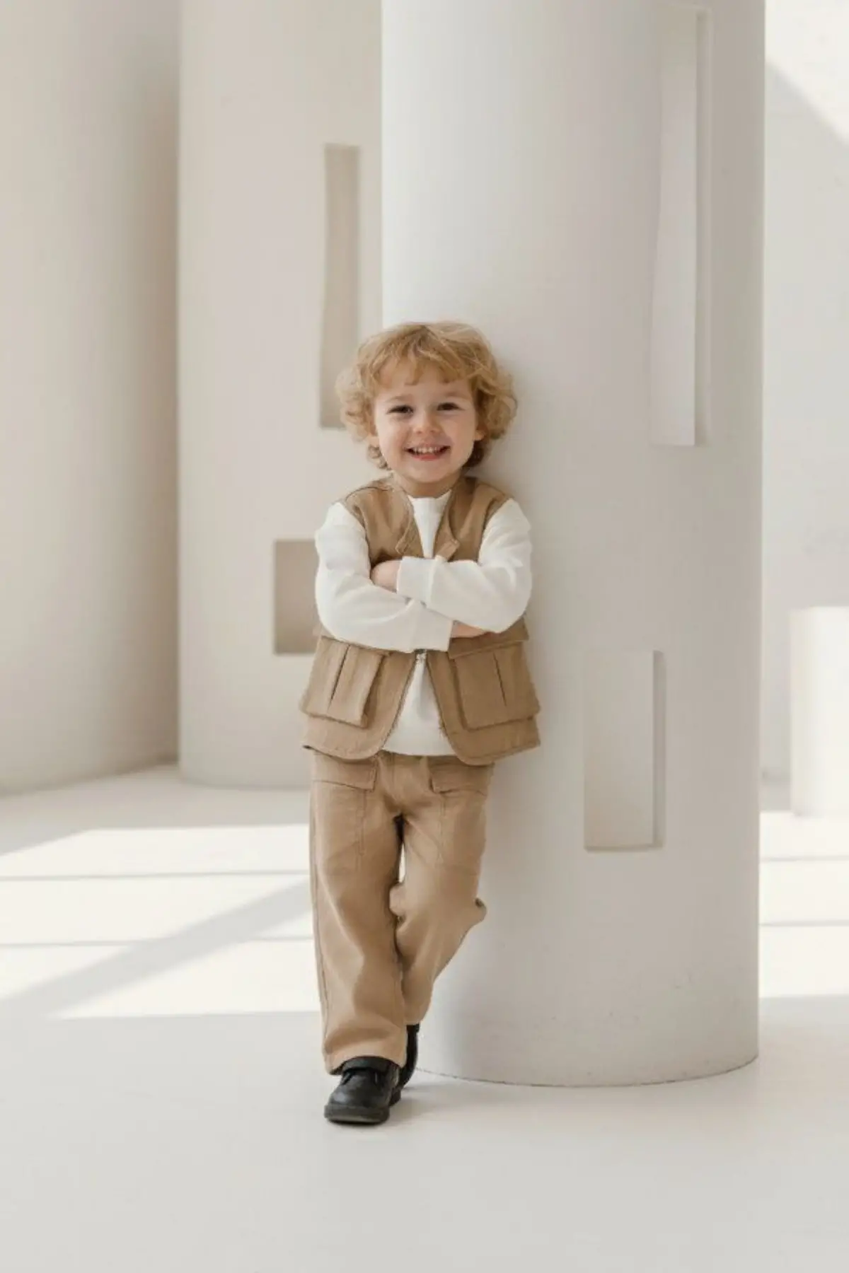 Erkek Çocuk Yelekli Taba 3'lü Alt Üst Takım