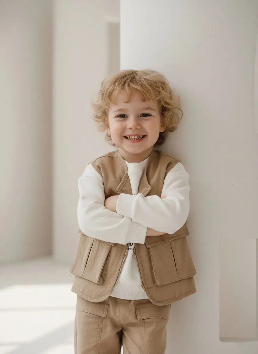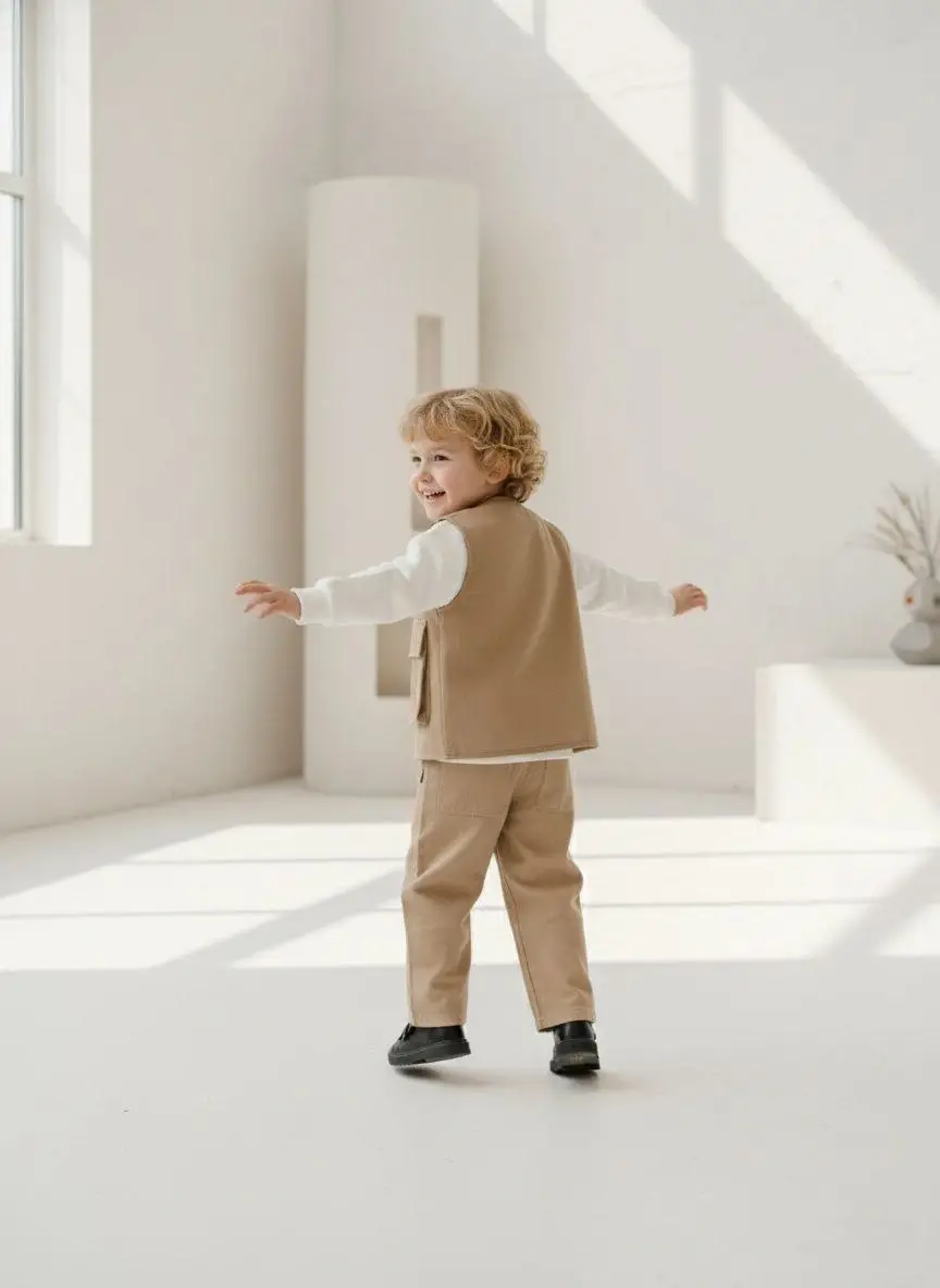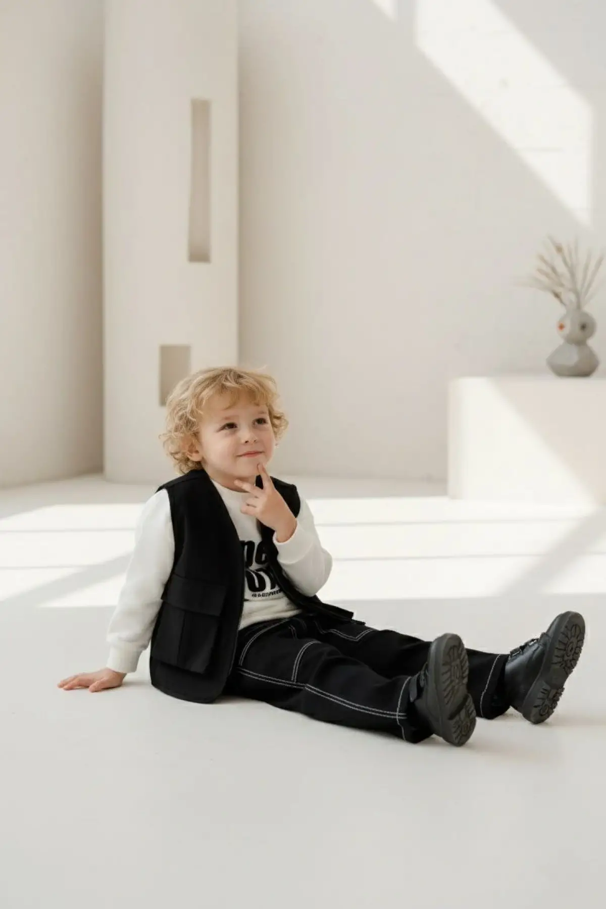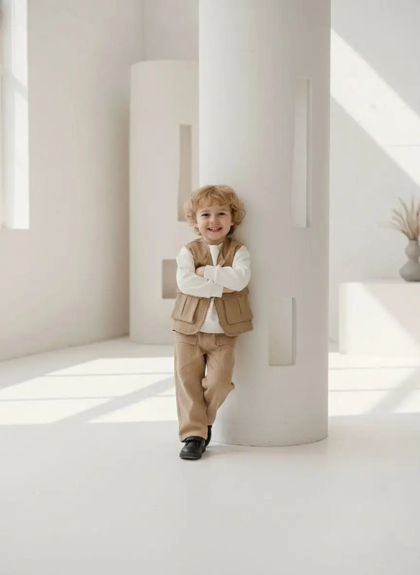 Erkek Çocuk Yelekli Taba 3'lü Alt Üst Takım
