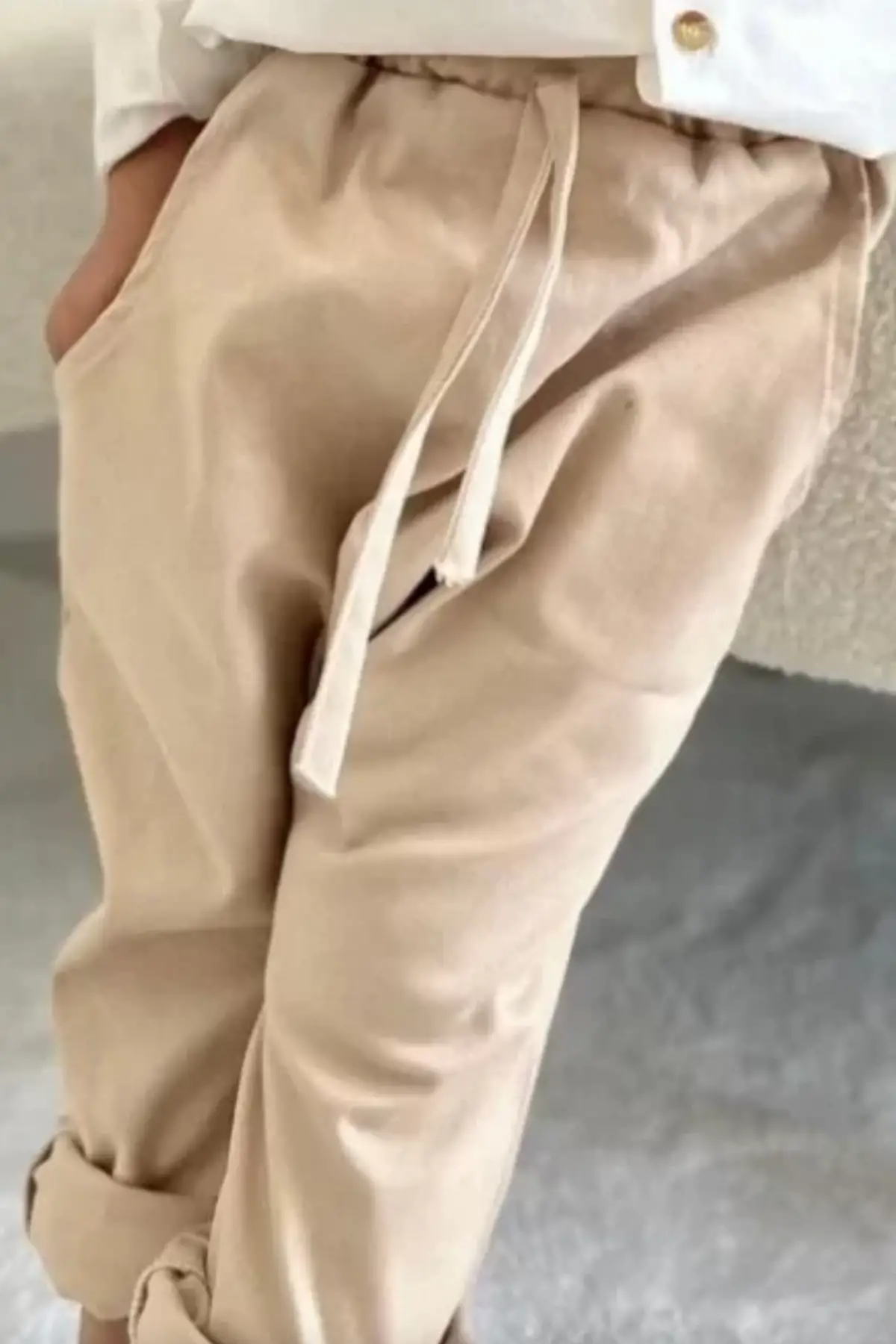 Erkek Çocuk Beli Lastikli Krem Pantolon