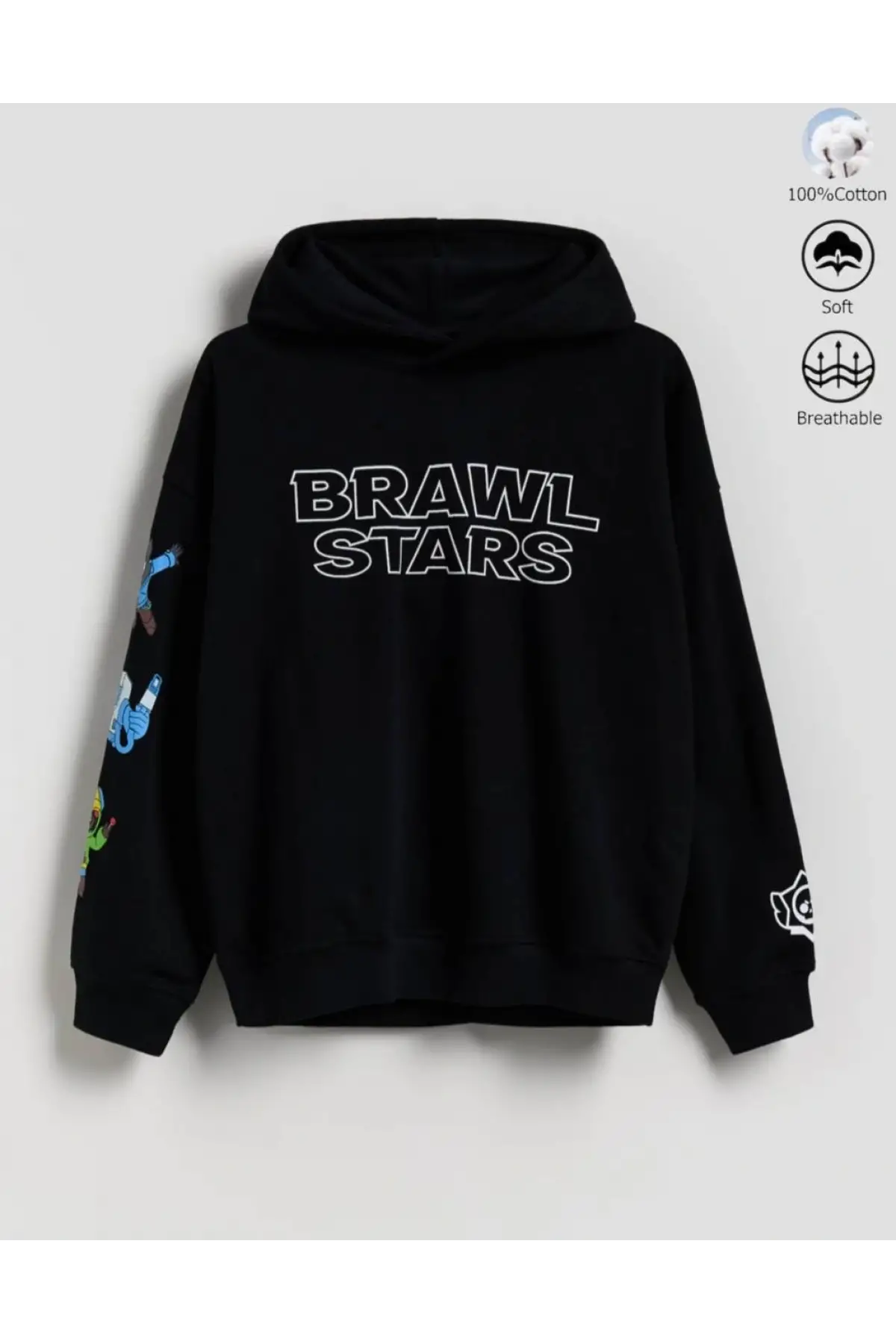 Erkek Çocuk Brawl Stars Baskılı %100 Pamuk Sweatshirt