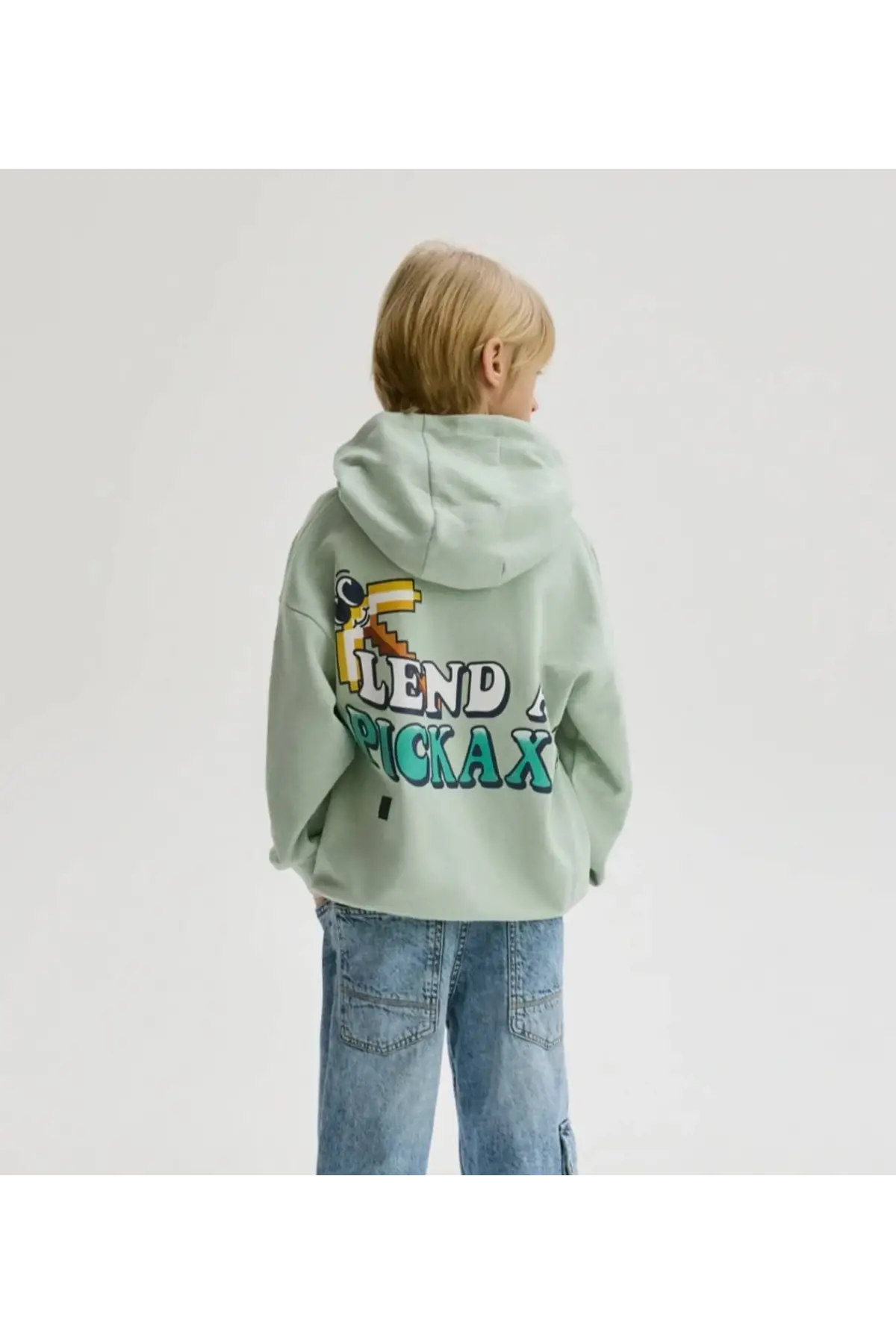 Erkek Çocuk Minecraft Baskılı Kapüşonlu %100 Pamuk Hırka