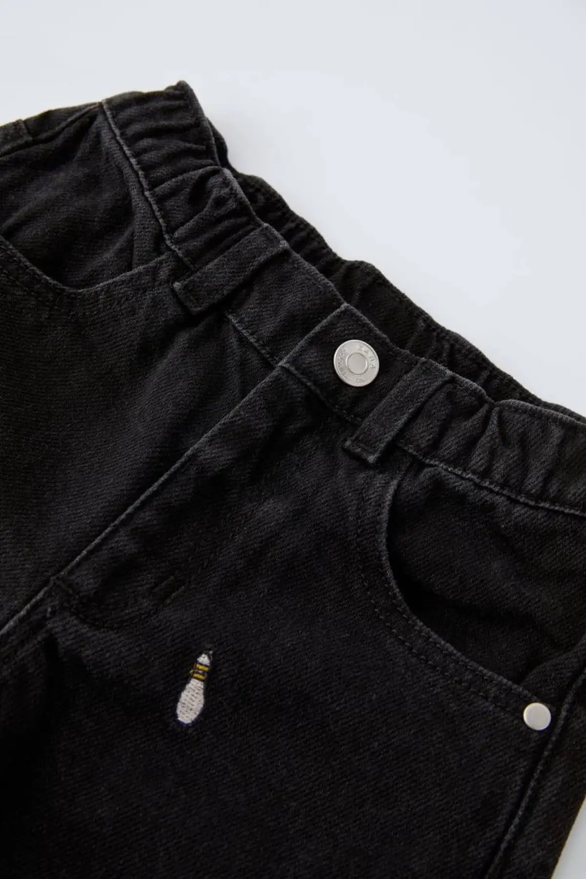 Erkek Çocuk Siyah Taşlanmış Kot Pantolon