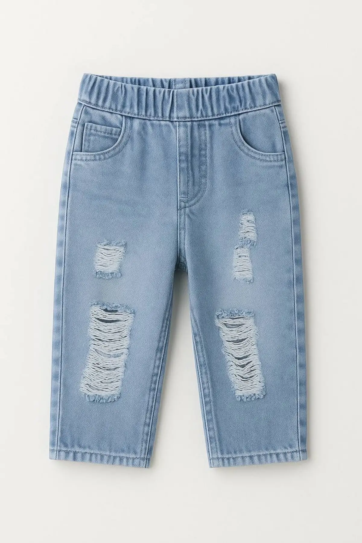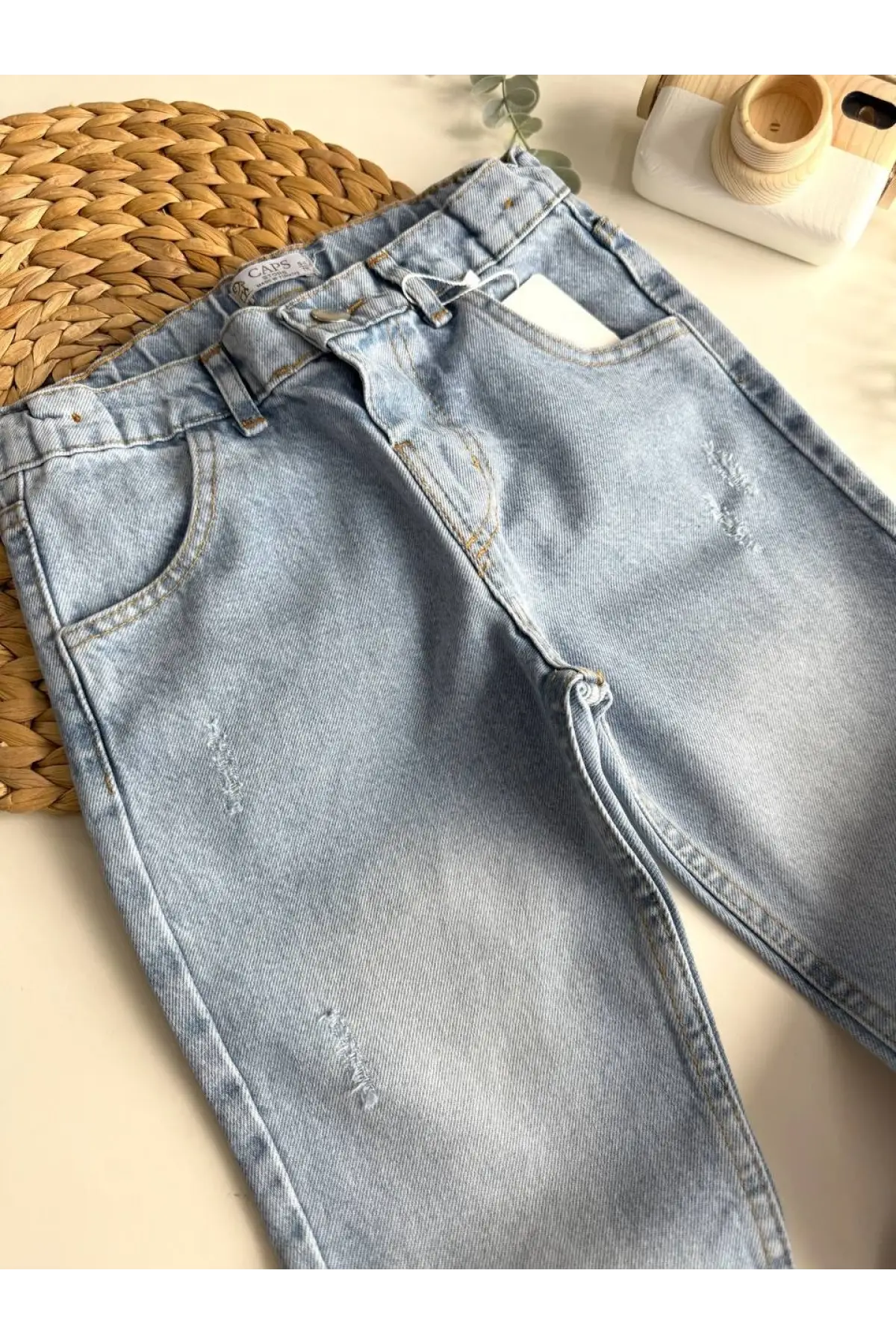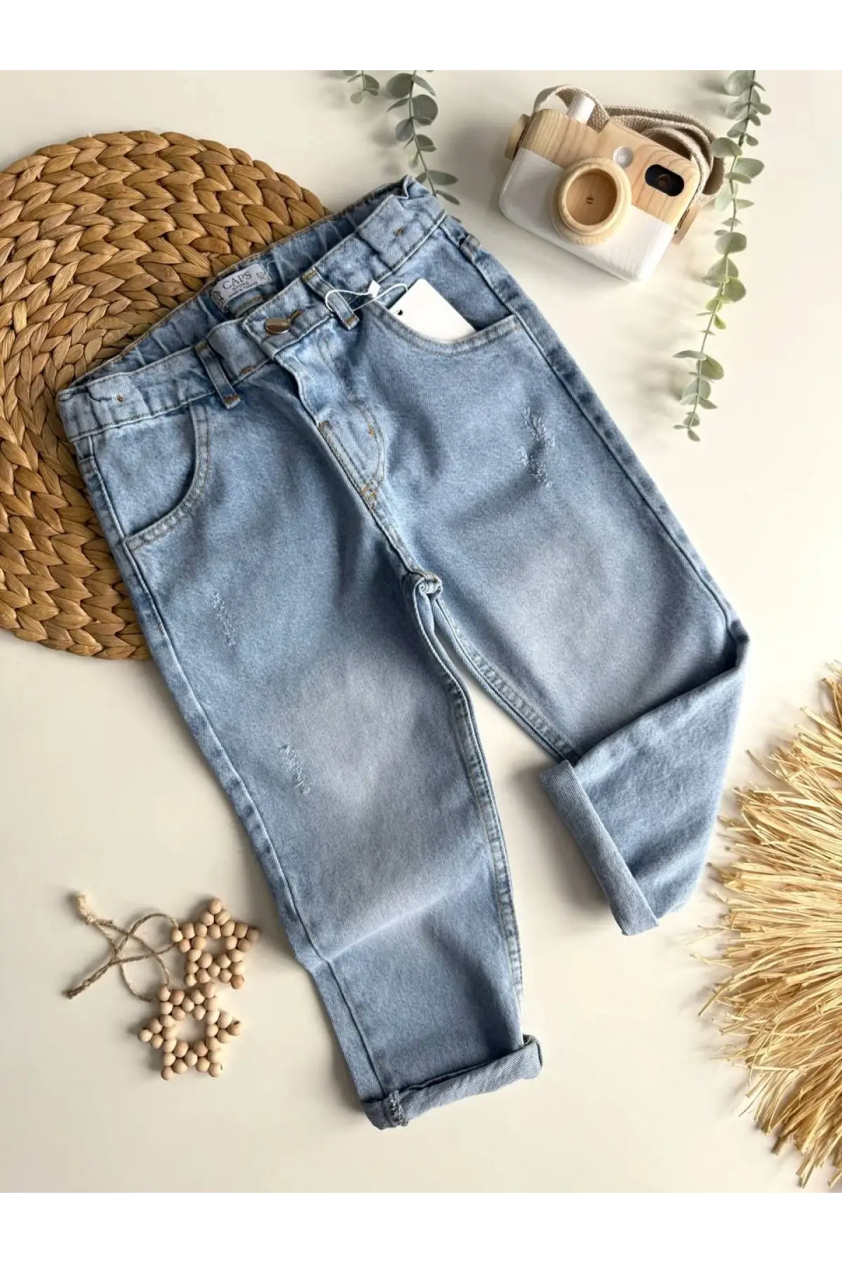 Çocuk Unisex Yırtık Detaylı Beli Lastikli Kot Pantollon
