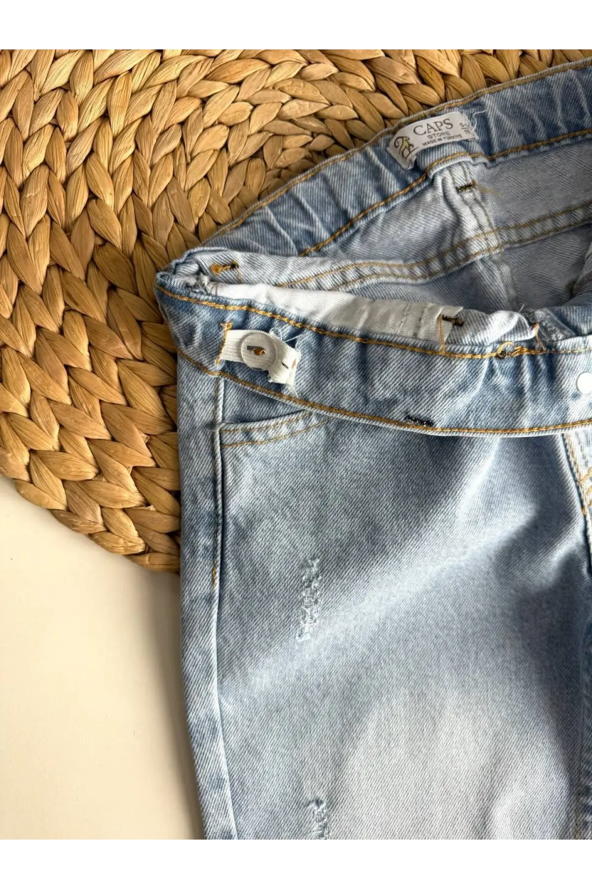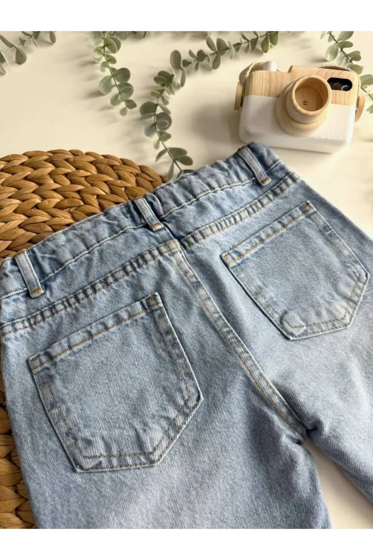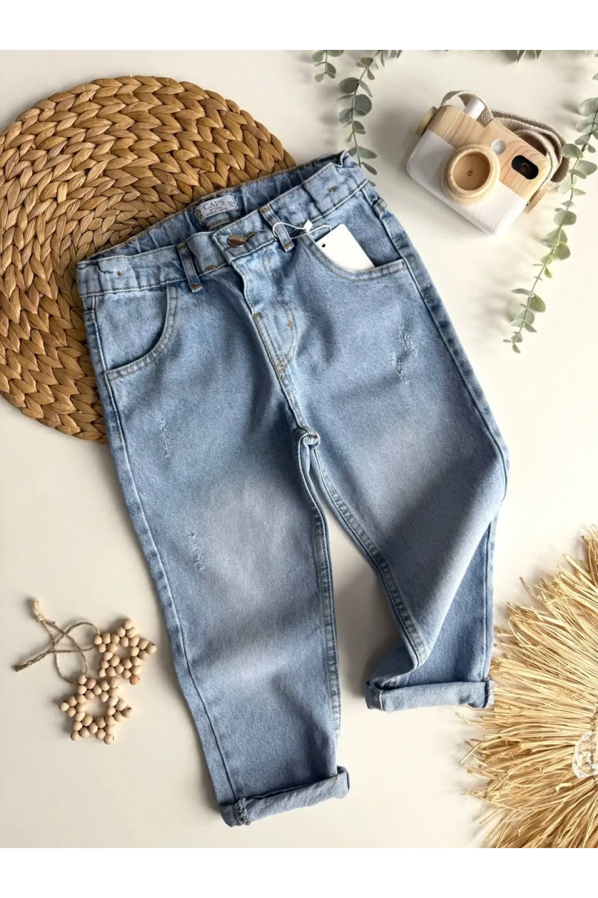 Çocuk Unisex Yırtık Detaylı Beli Lastikli Kot Pantollon