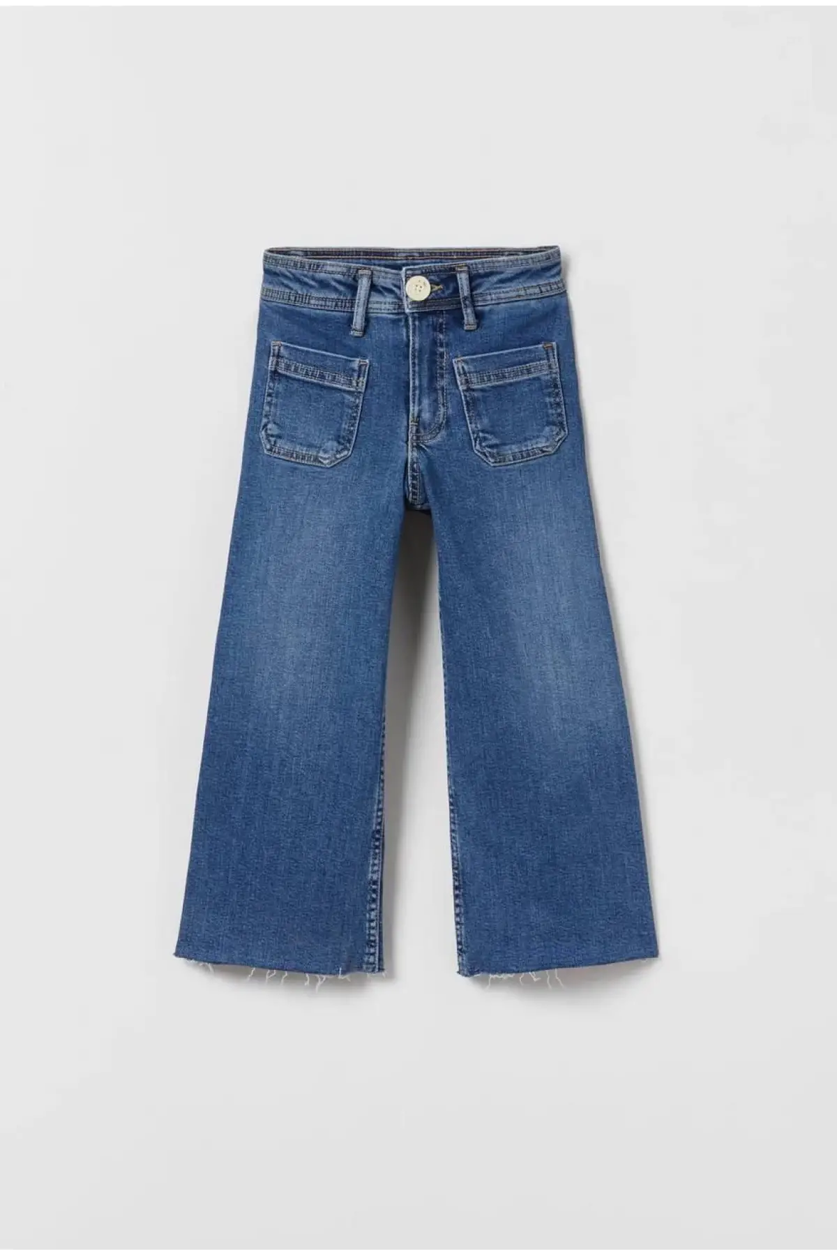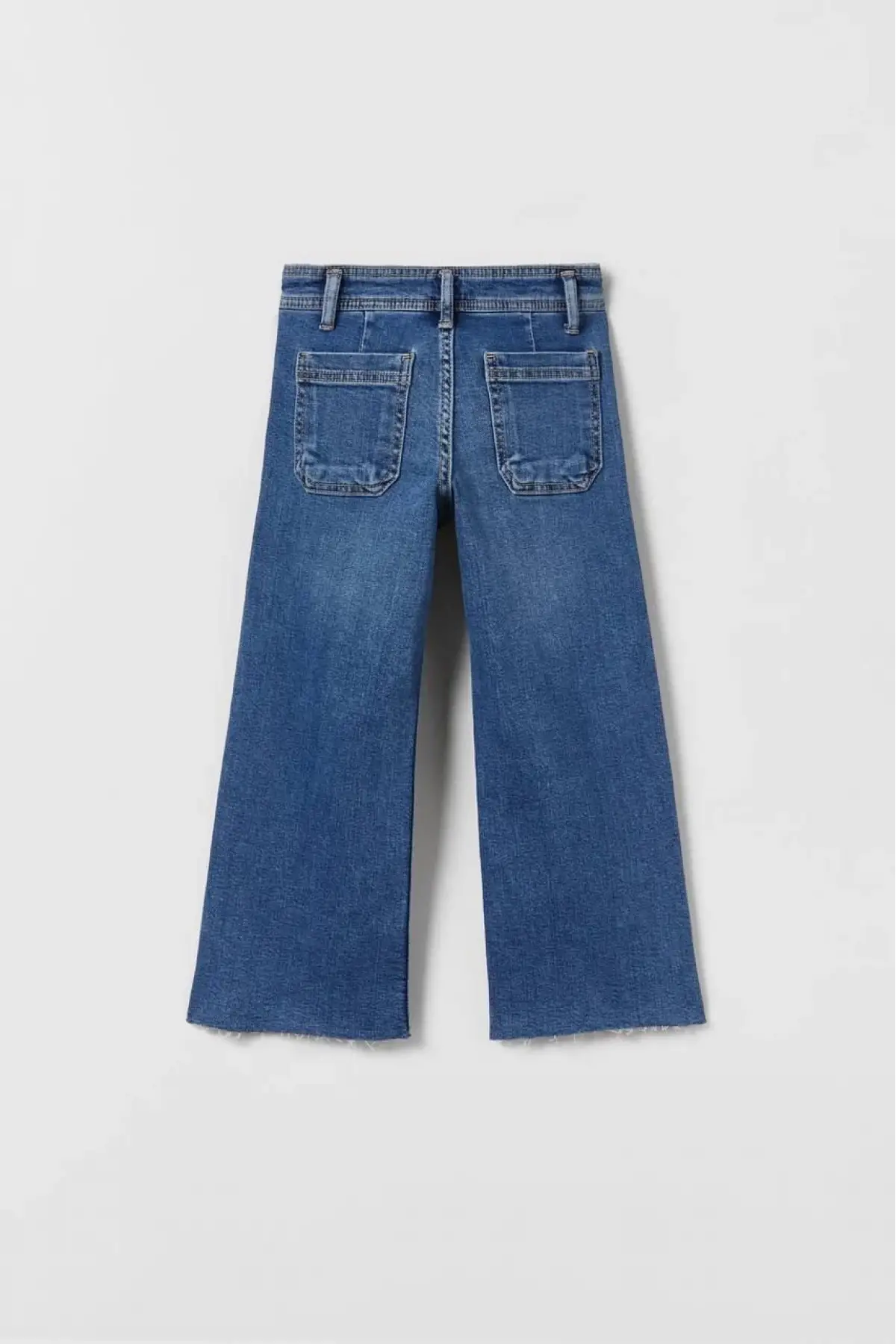Kız Çocuk Fiyonk Detaylı Bol Paça Kot Pantolon