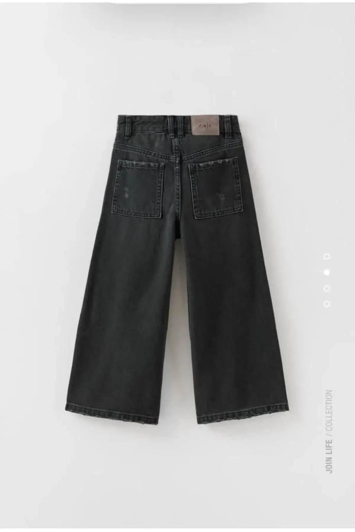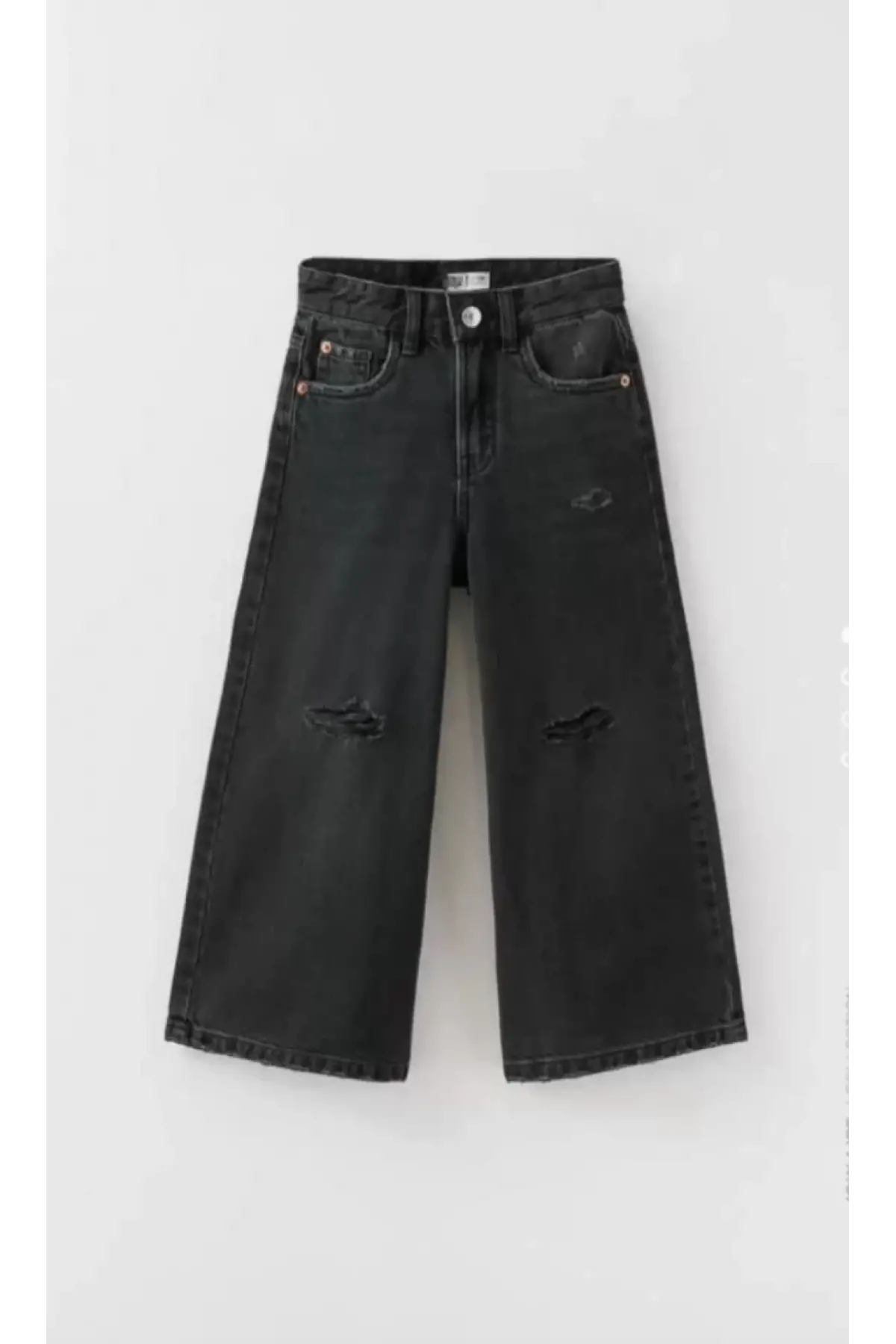 Kız Çocuk Siyah Bol Paça Kot Pantolon