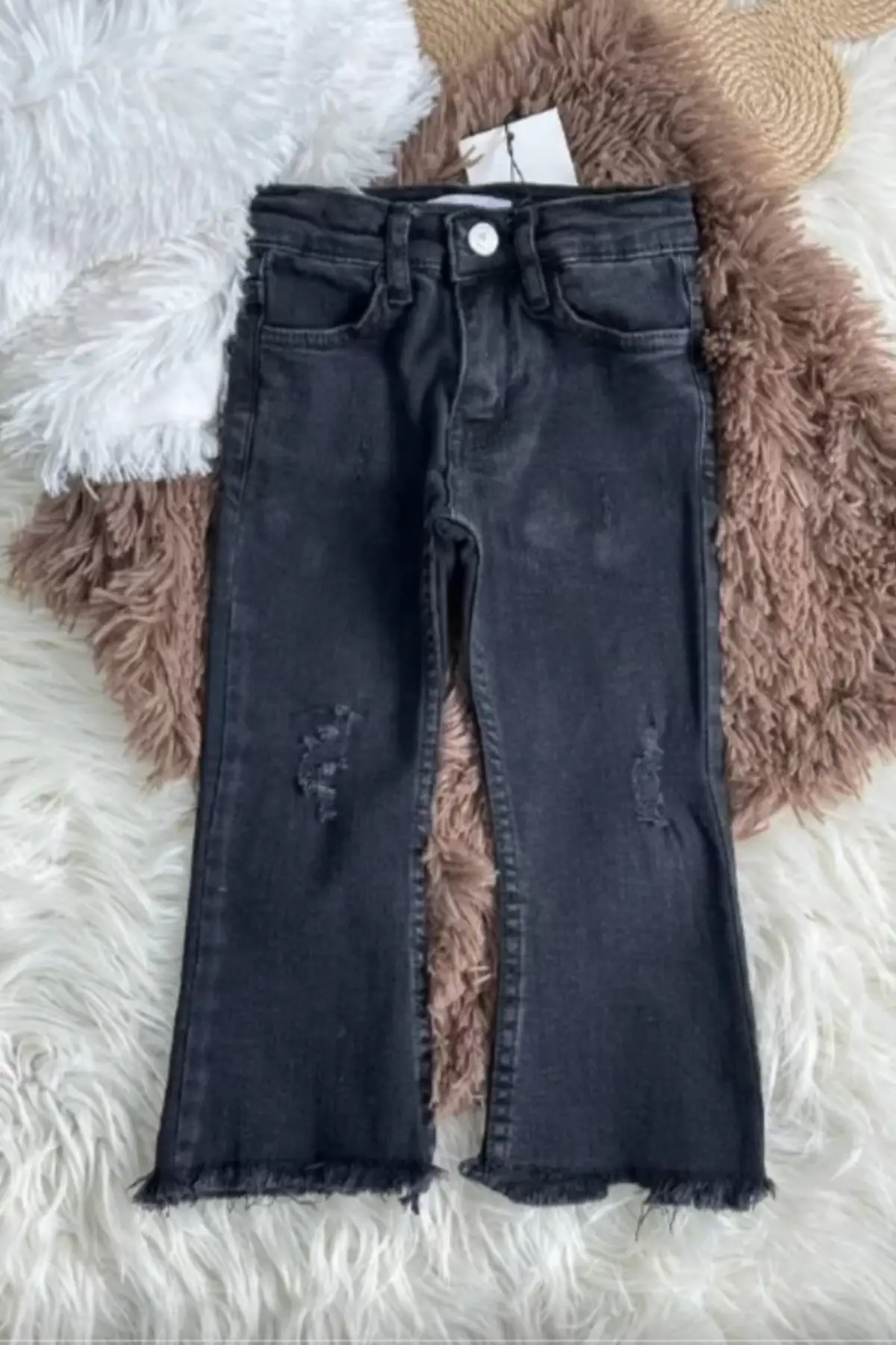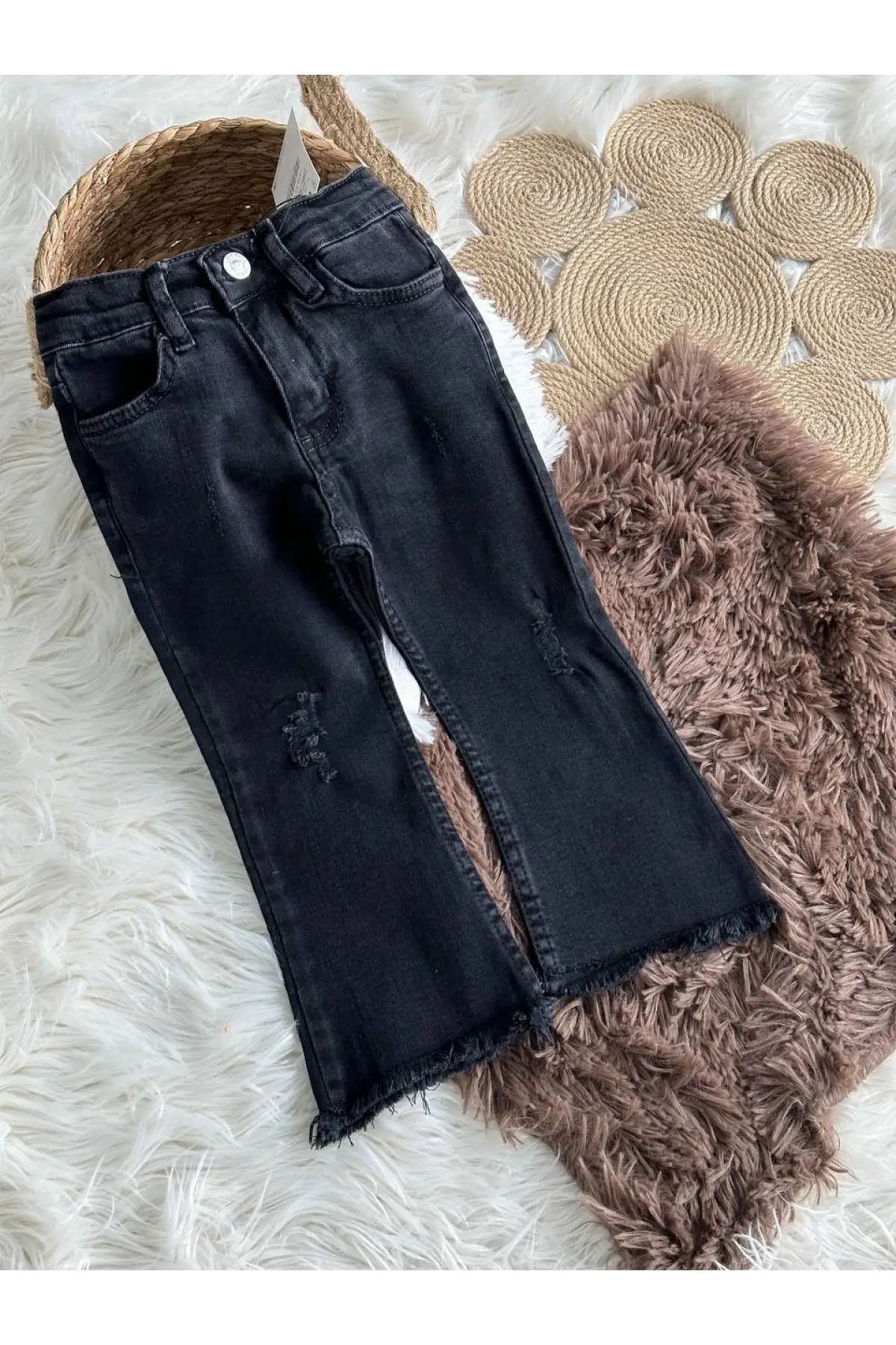 Kız Çocuk Siyah İspanyol Paça Kot Pantolon